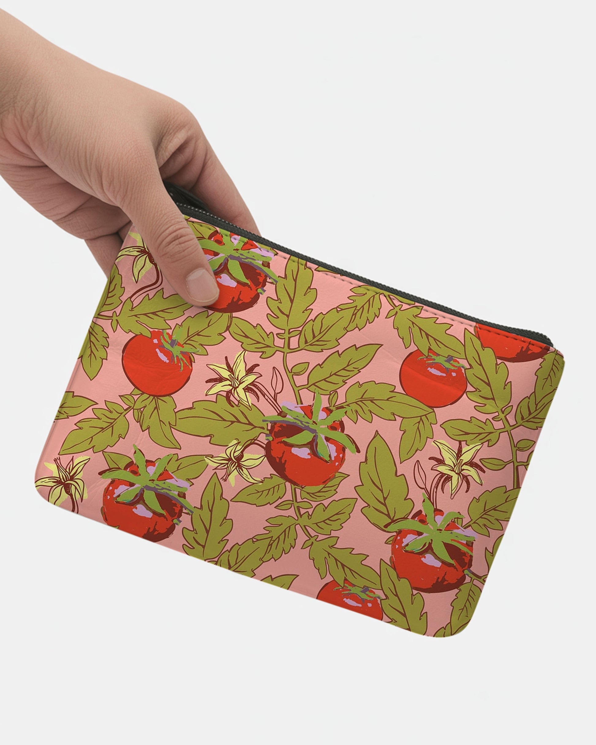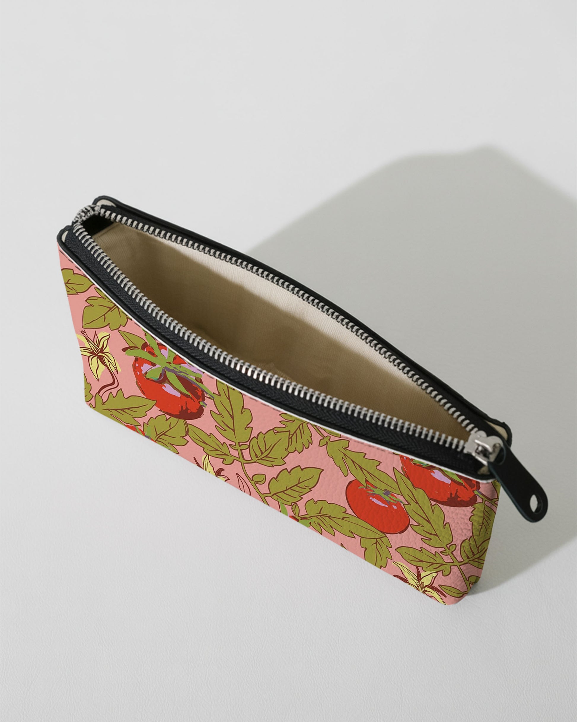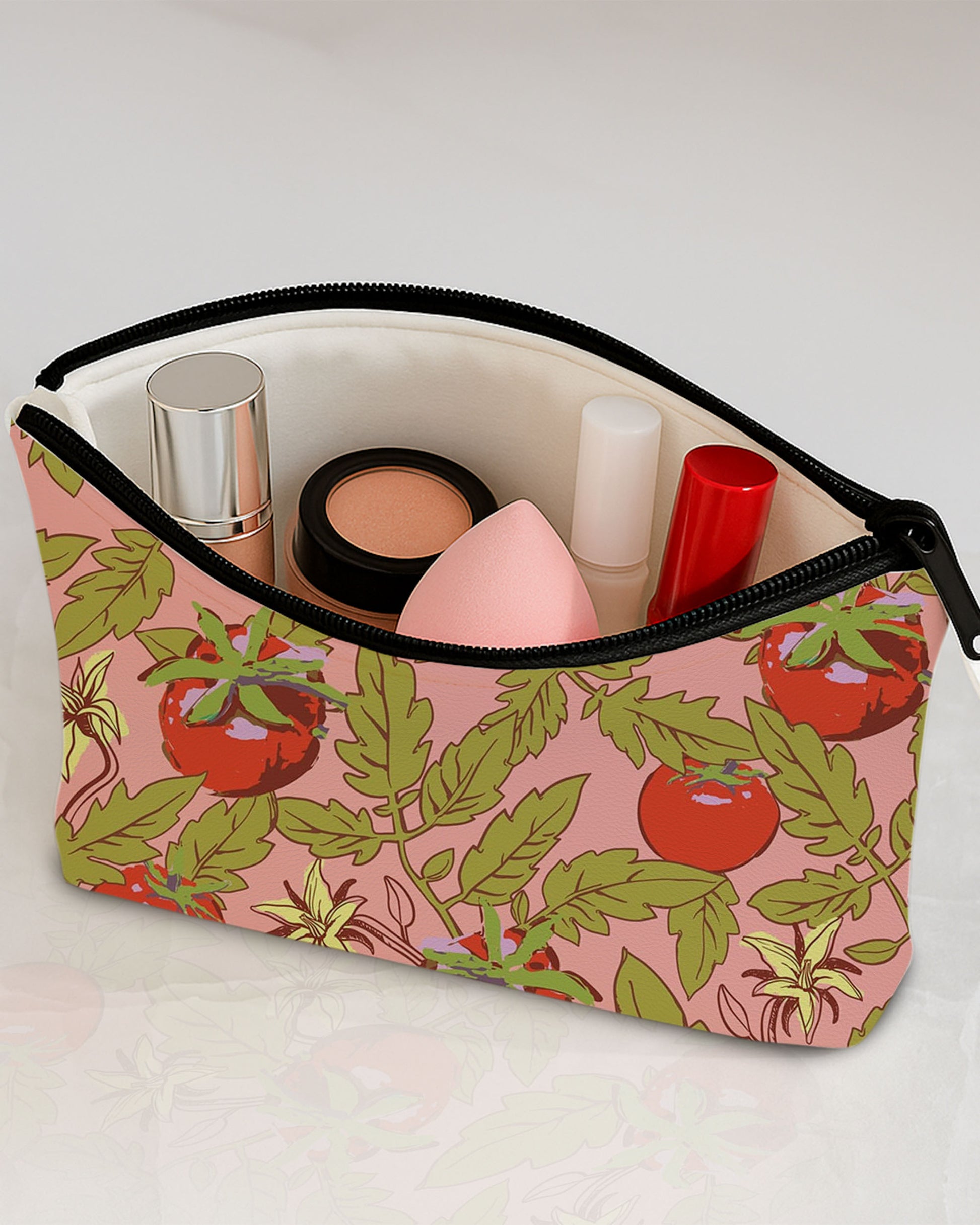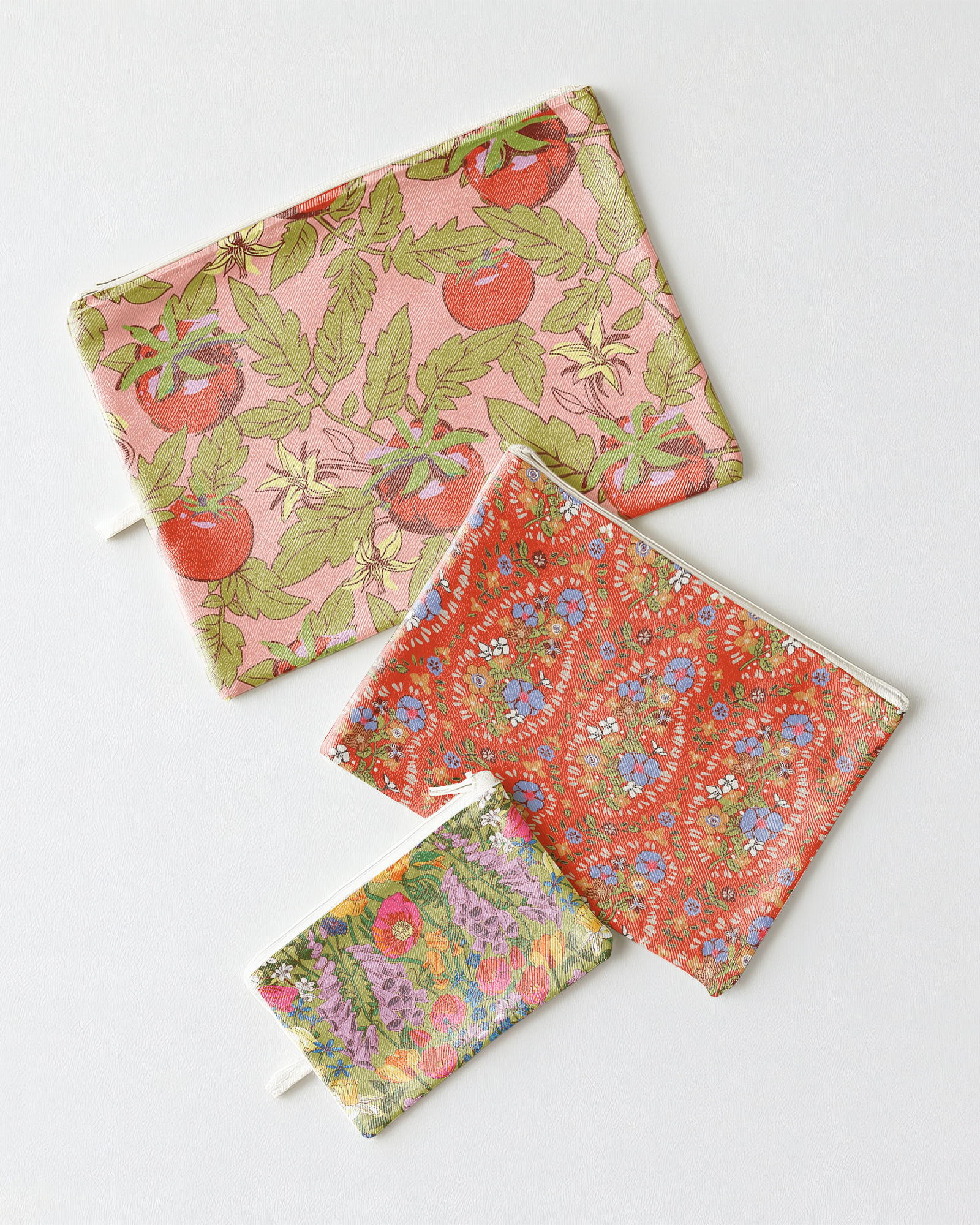 Set of 3 - RE:POUCH Flat Zipper Pouch for Makeup Bag in Vintage Flower and Fruit on Red