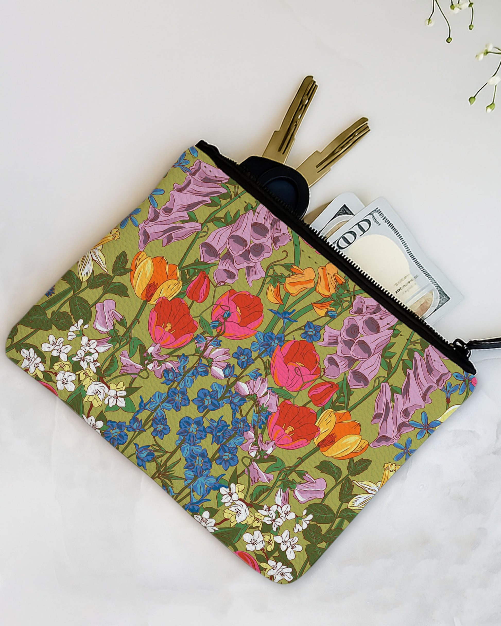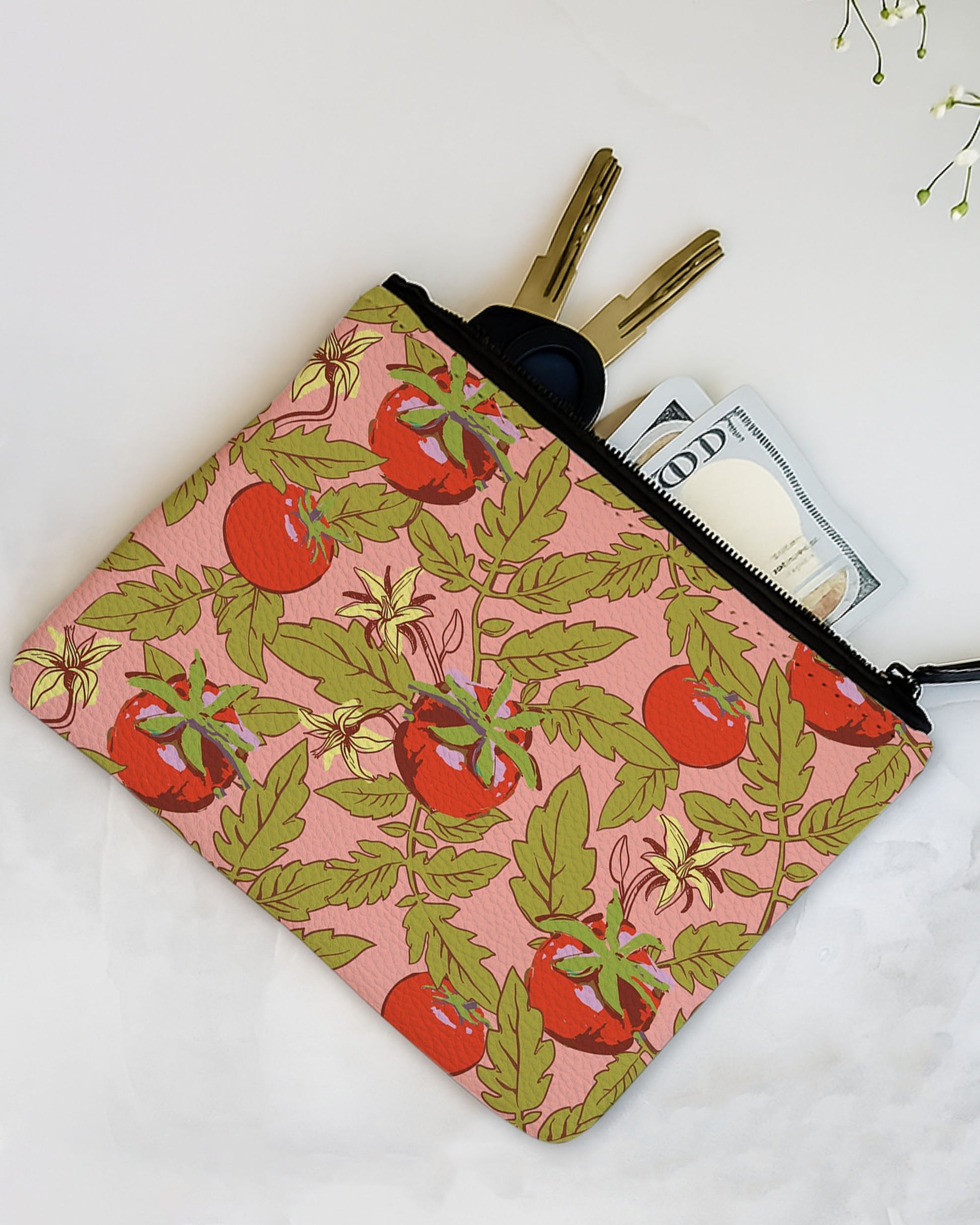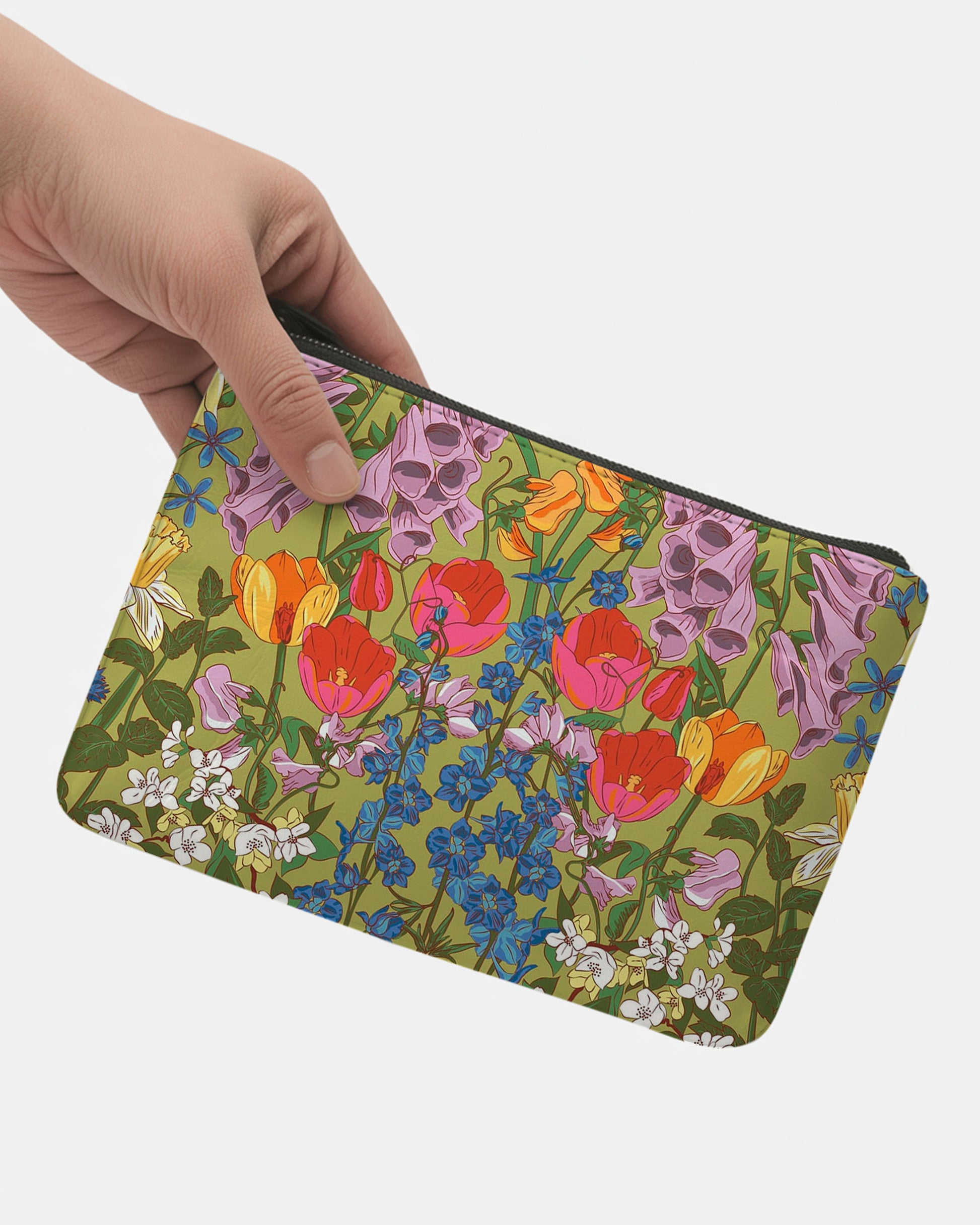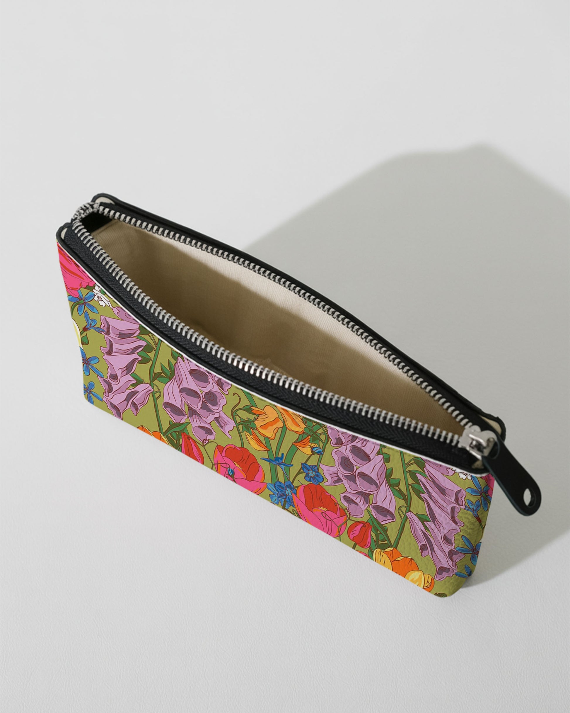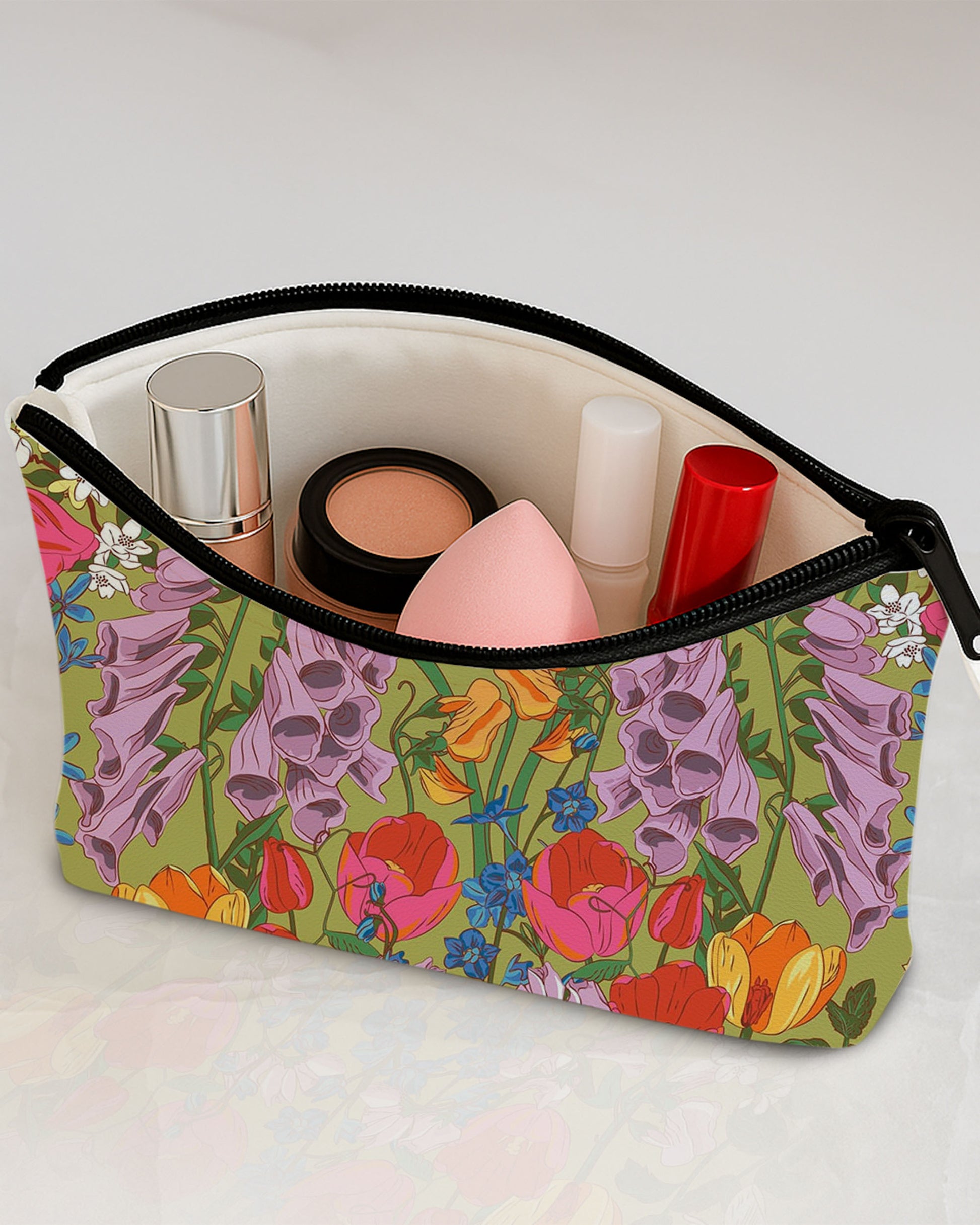 Set of 3 - RE:POUCH Flat Zipper Pouch for Makeup Bag in Vintage Flower and Fruit on Red