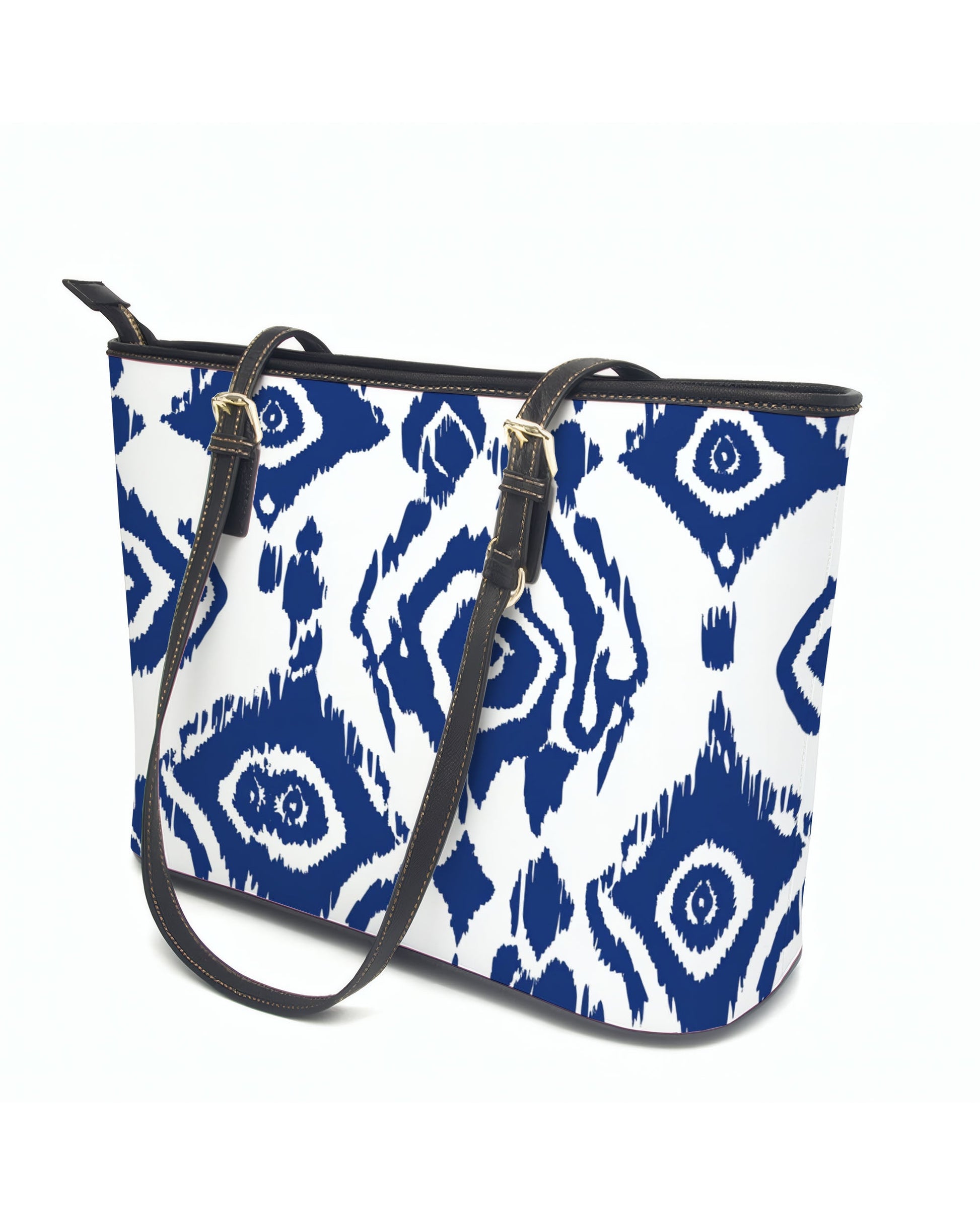Crafted from eco-friendly water-based PU leather, this spacious tote features a beige-lined interior with slip pockets, a smooth zipper closure, and adjustable black leather handles—perfect for daily errands, work, or shopping in style.
