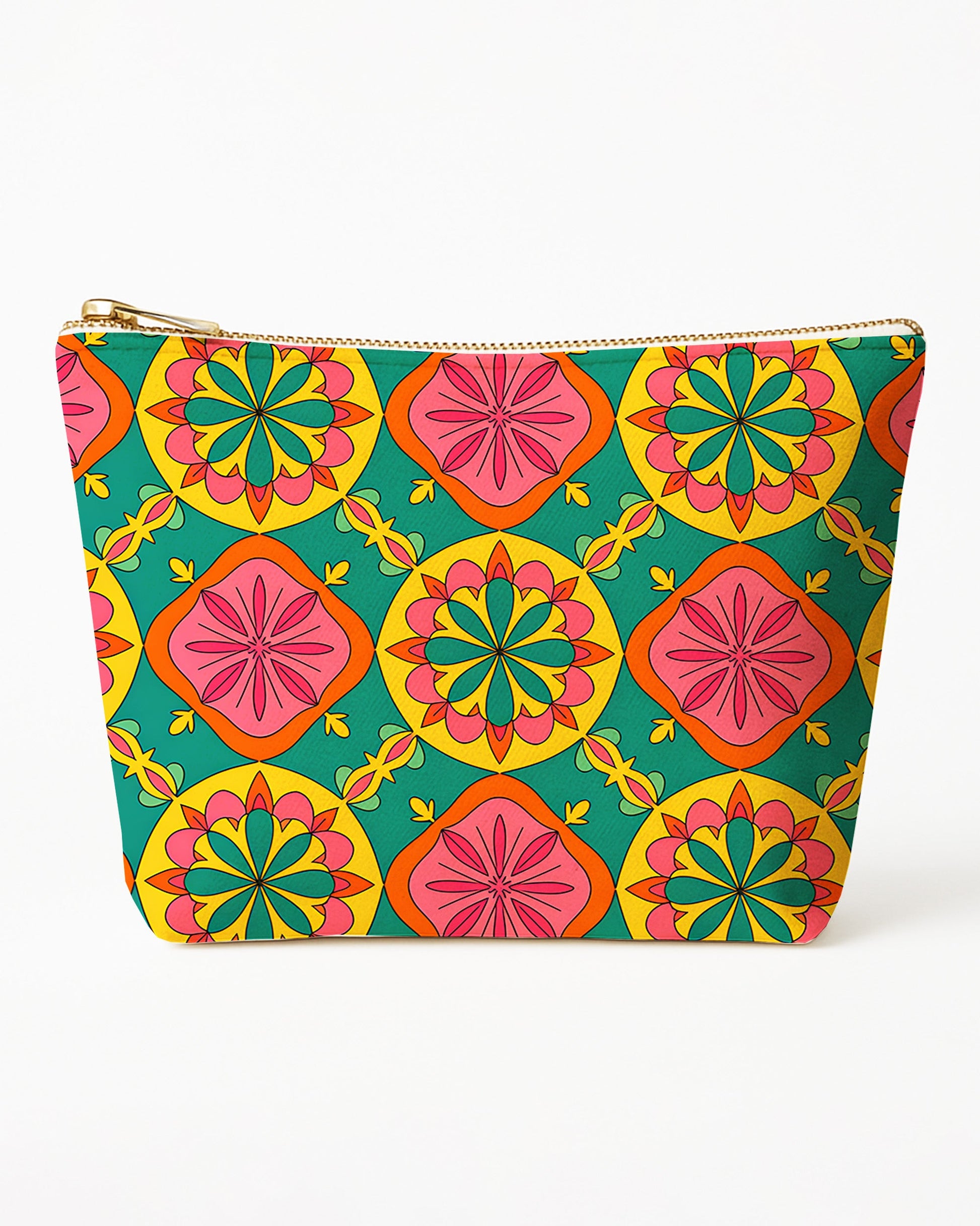 Set of 3 - REPOUCH Essential Zipper Pouch for Makeup Bag in Bohemian Mandala Vintage Colorful Flower 14