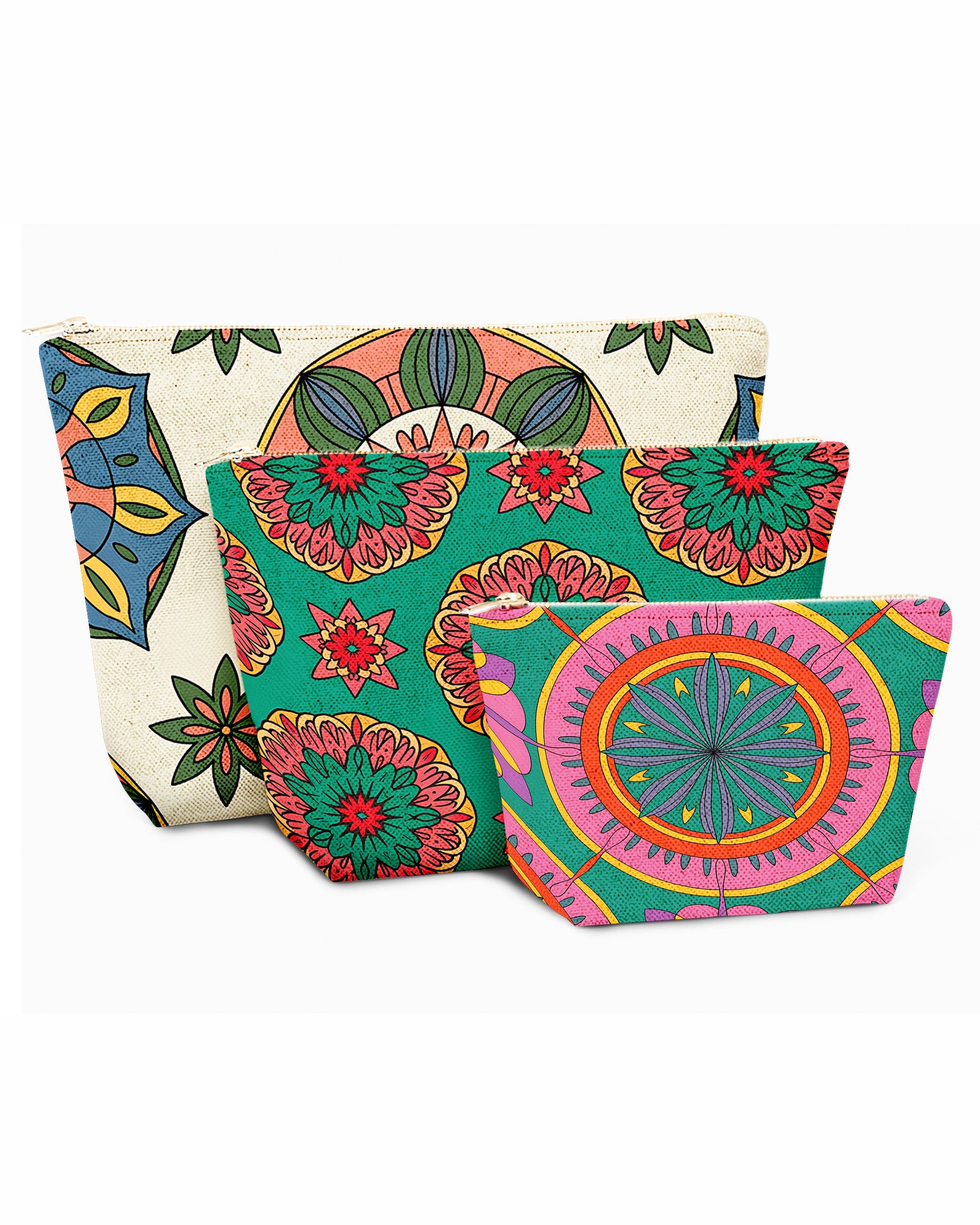 Set of 3 - REPOUCH Essential Zipper Pouch for Makeup Bag in Bohemian Mandala Vintage Colorful Flower 22