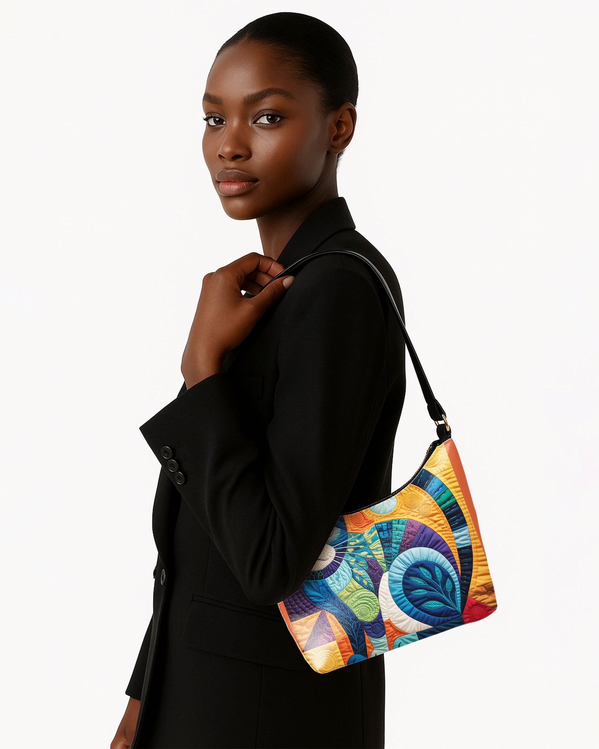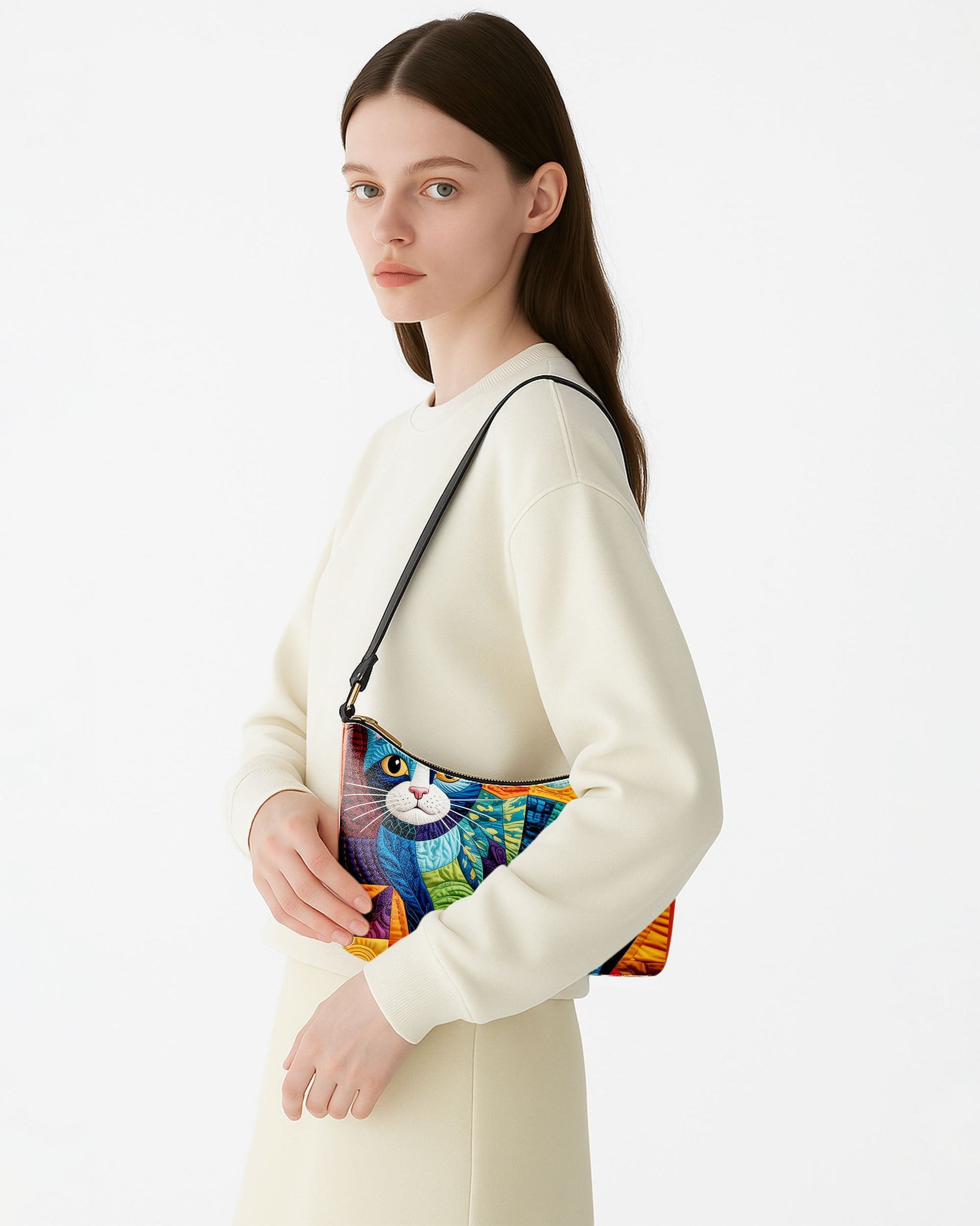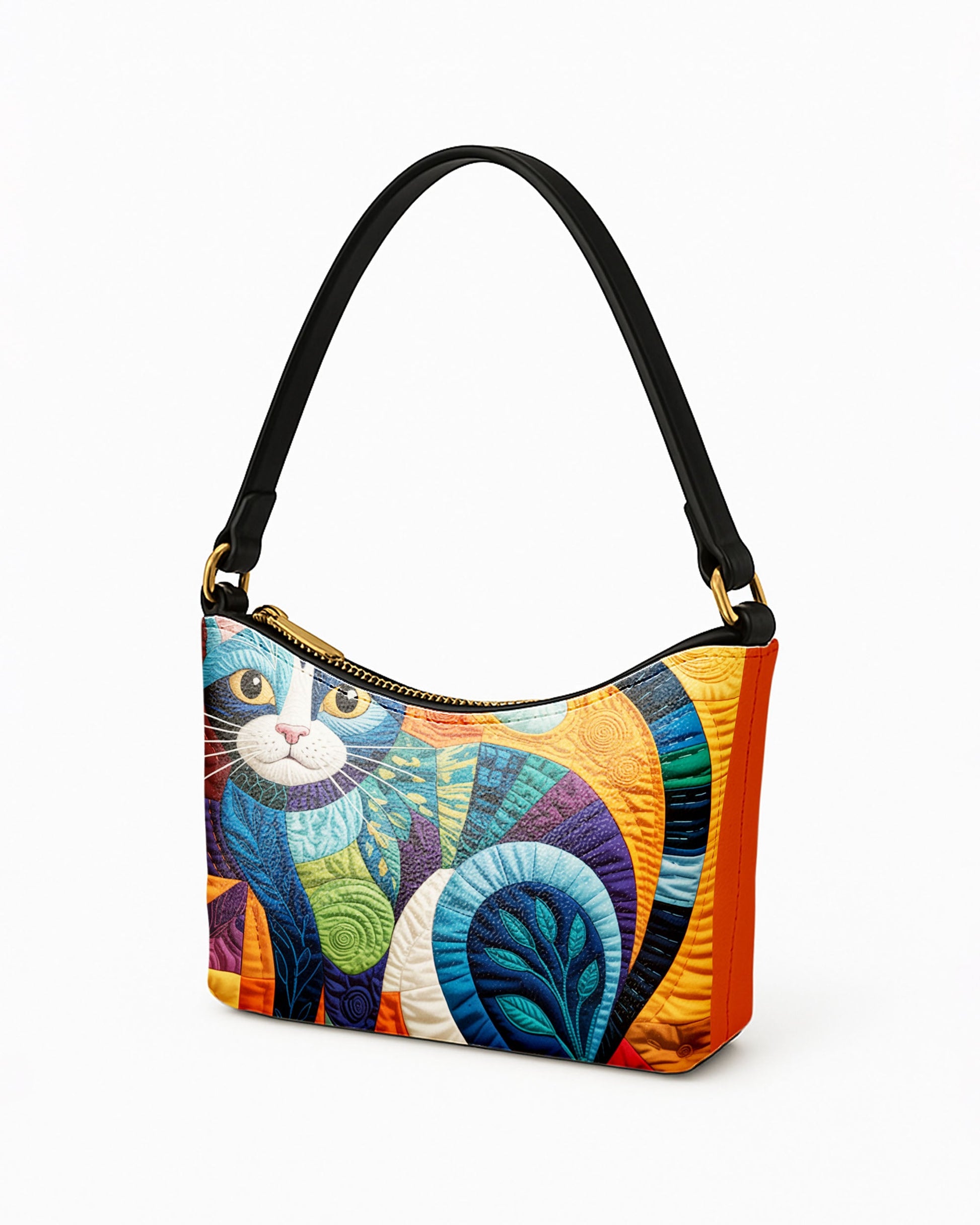 RE:LEATHER Leather Baguette Bag Underarm Shoulder Bag in Starry Night With Colorful Cat 03