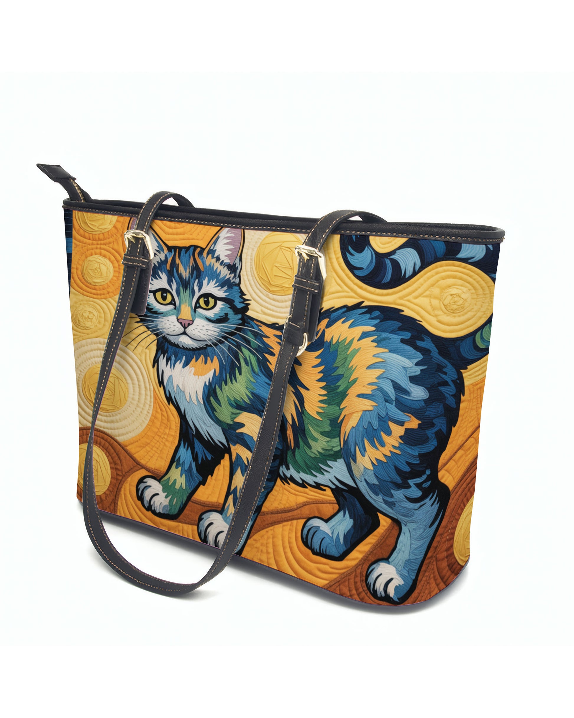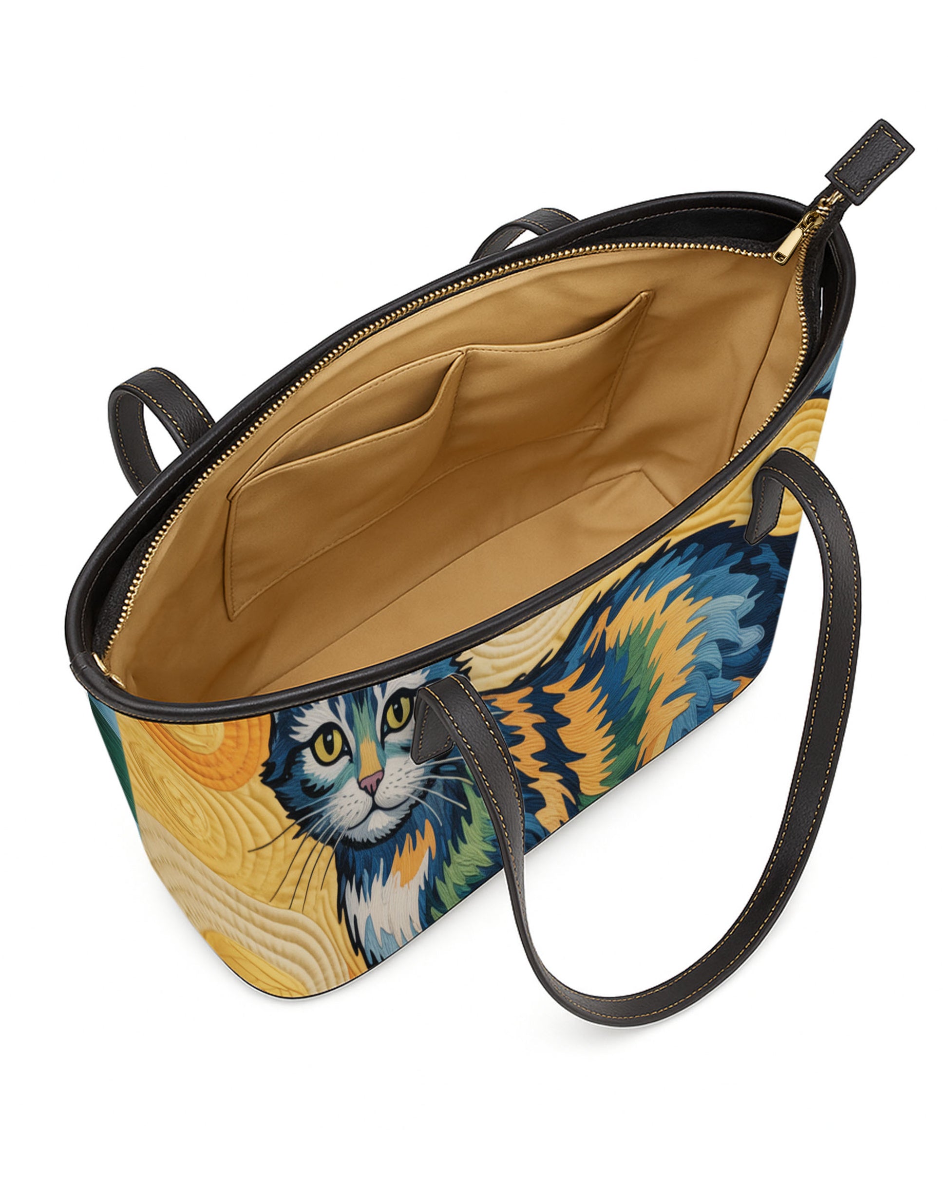 The bag is designed for daily convenience. A spacious, beige-lined interior features slip pockets and ample storage, ideal for organizing your essentials neatly. Secured by a smooth zipper closure, and complemented by adjustable black leather handles, it combines personalized flair with functional design—perfect for everyday outings, shopping trips, or work essentials.