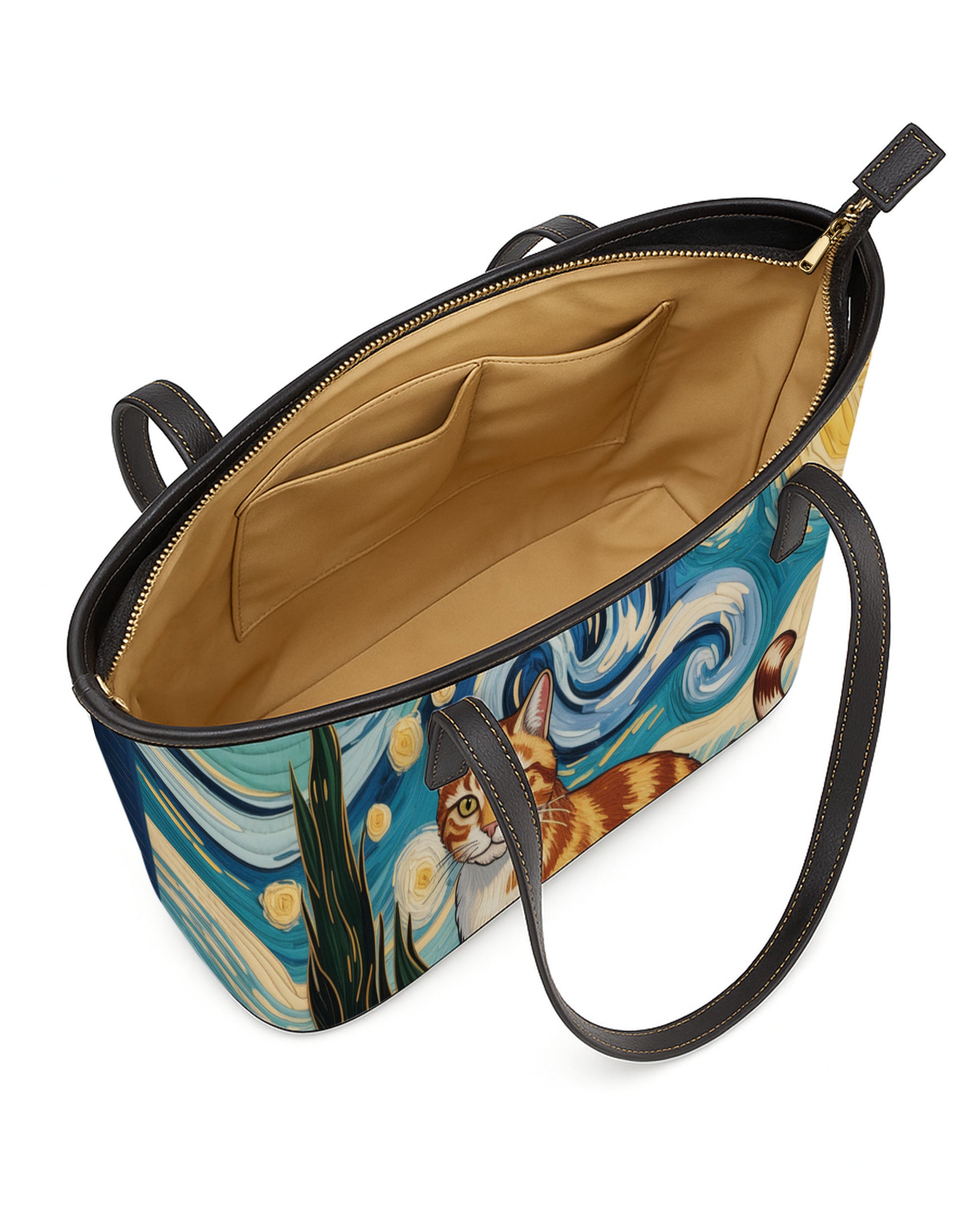 The bag is designed for daily convenience. A spacious, beige-lined interior features slip pockets and ample storage, ideal for organizing your essentials neatly. Secured by a smooth zipper closure, and complemented by adjustable black leather handles, it combines personalized flair with functional design—perfect for everyday outings, shopping trips, or work essentials.
