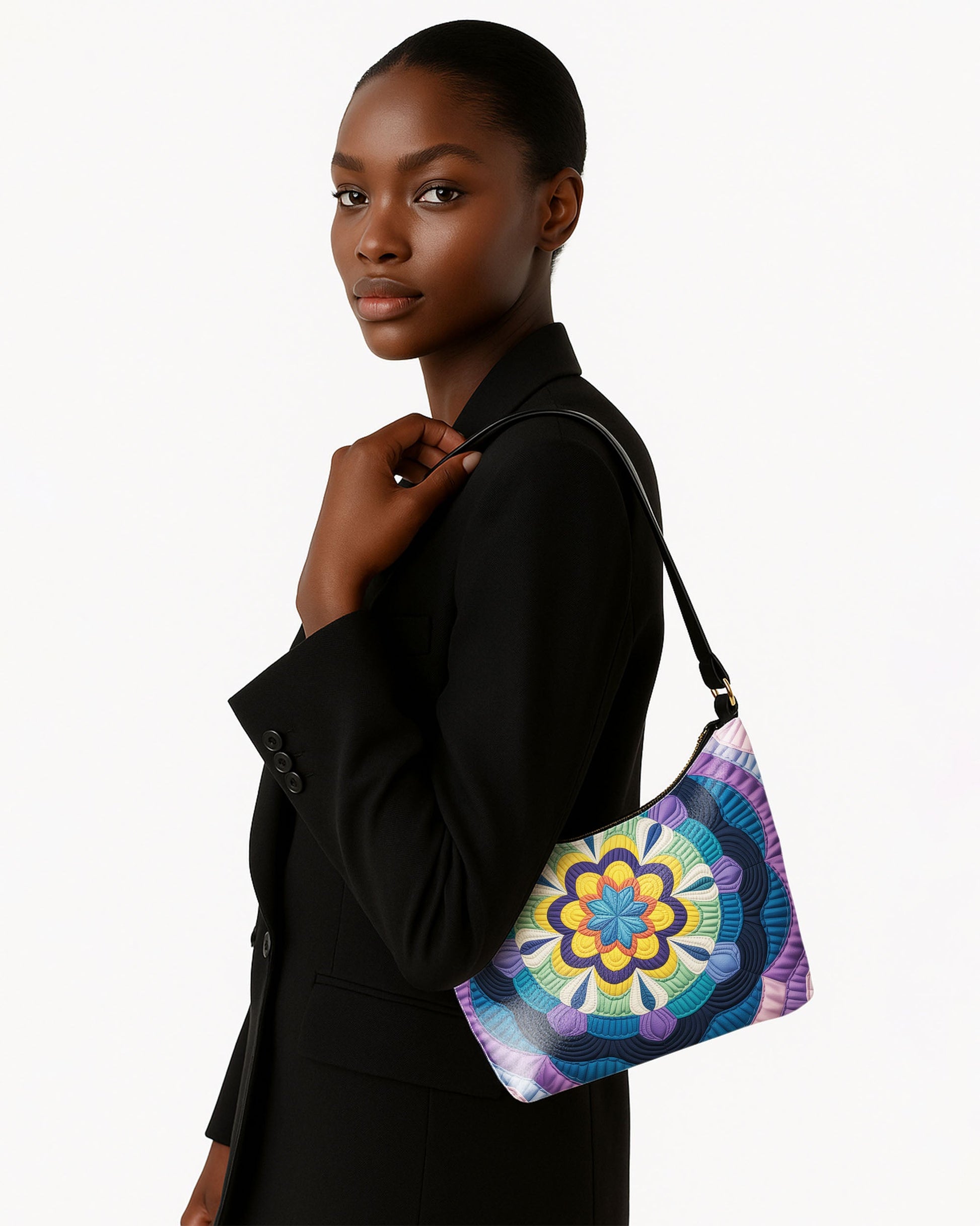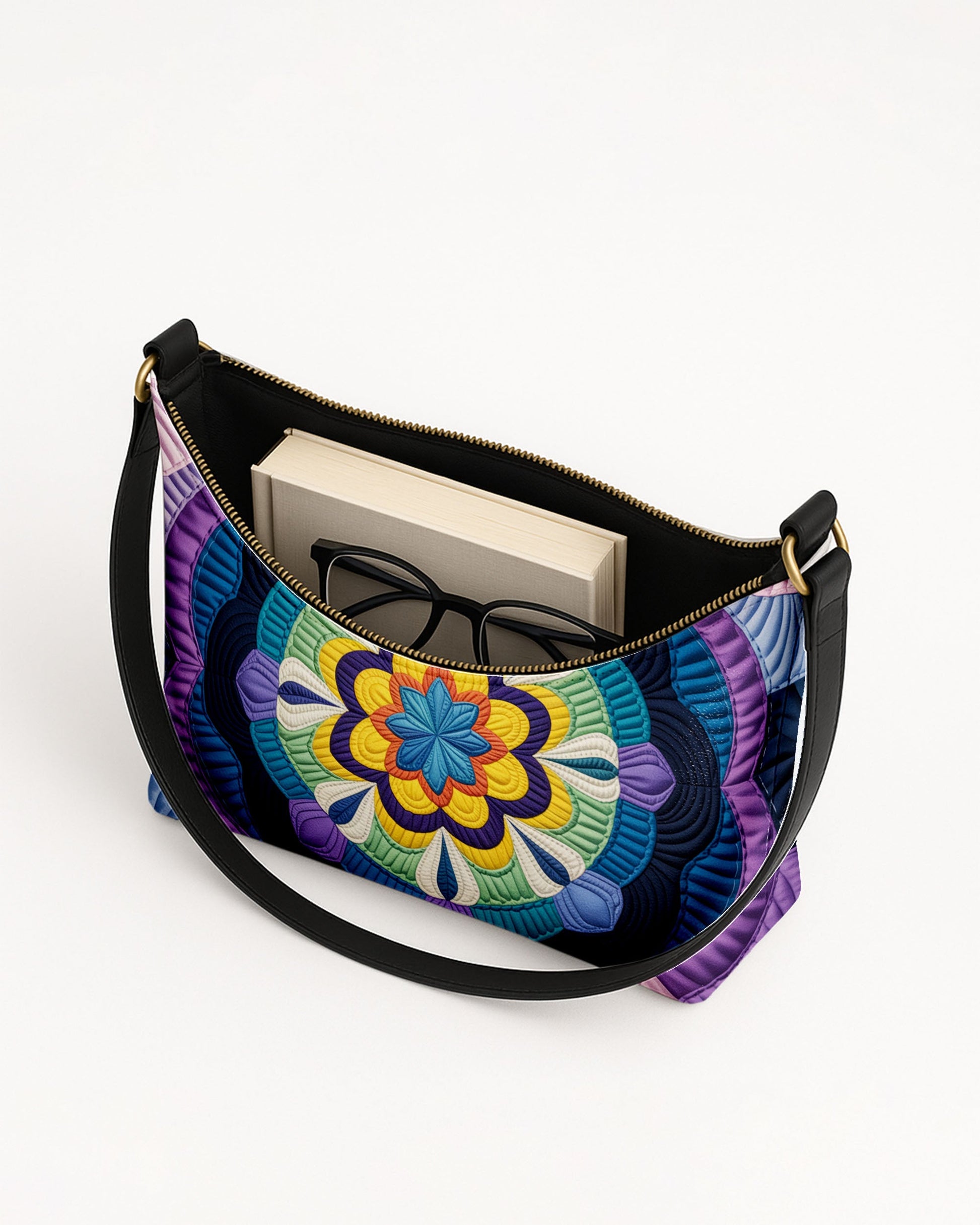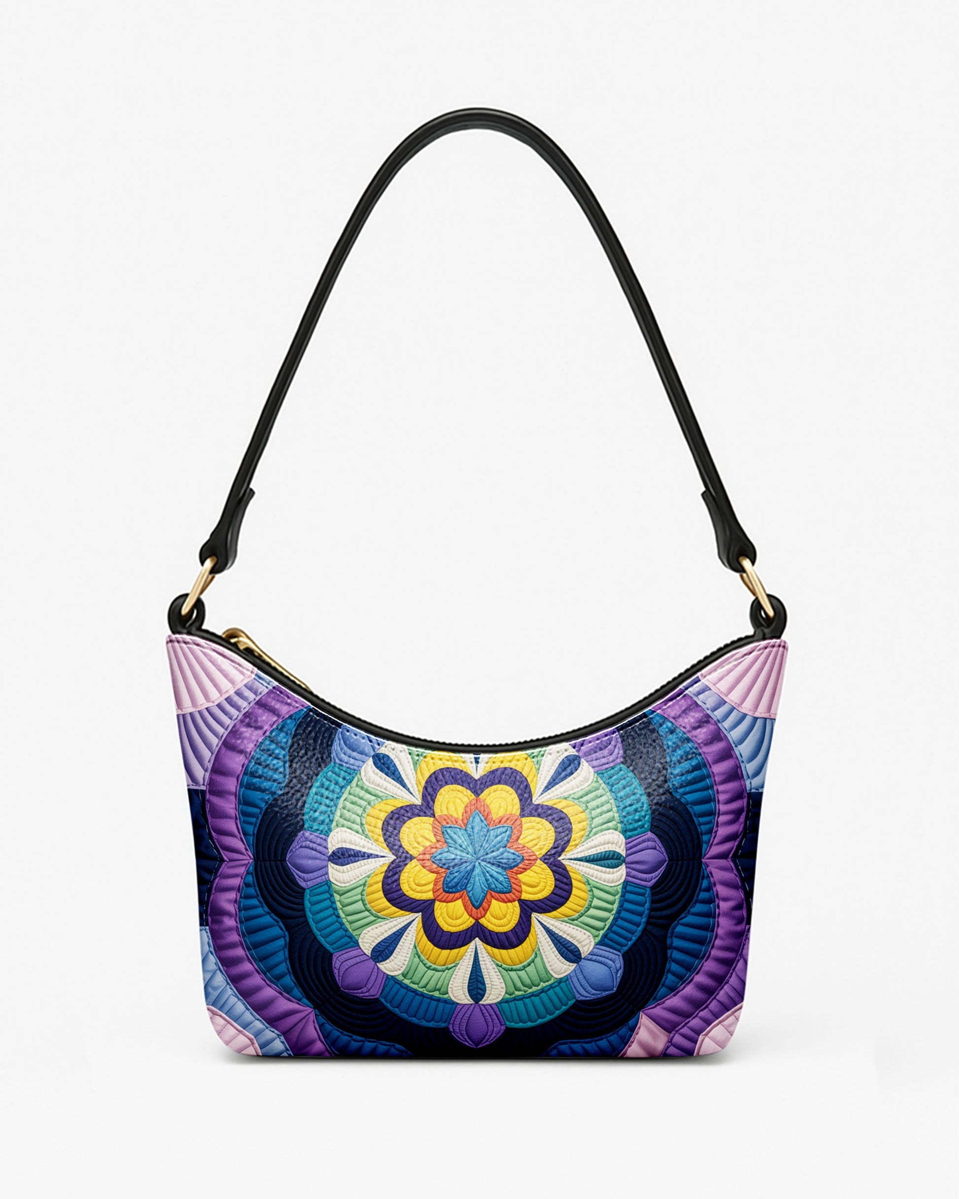 RE:LEATHER Leather Baguette Bag Underarm Shoulder Bag in Purple Flower Mandala