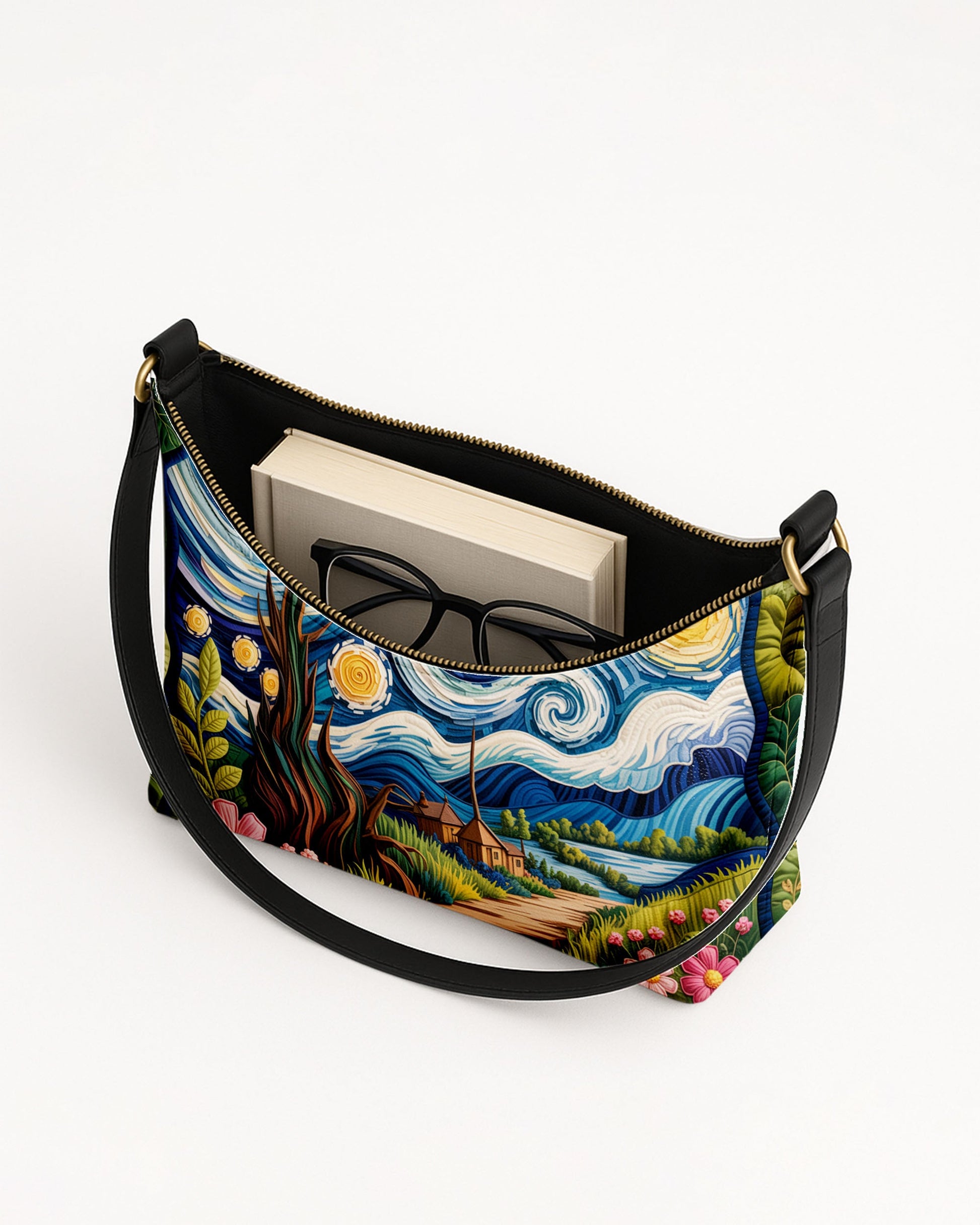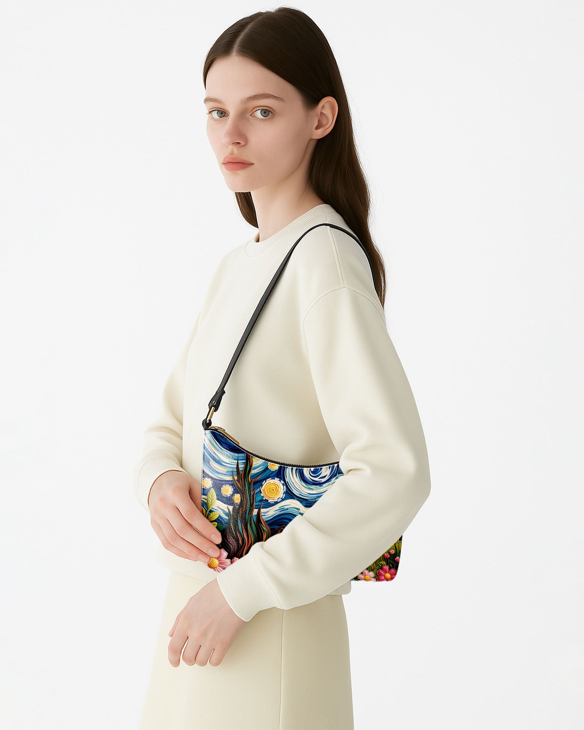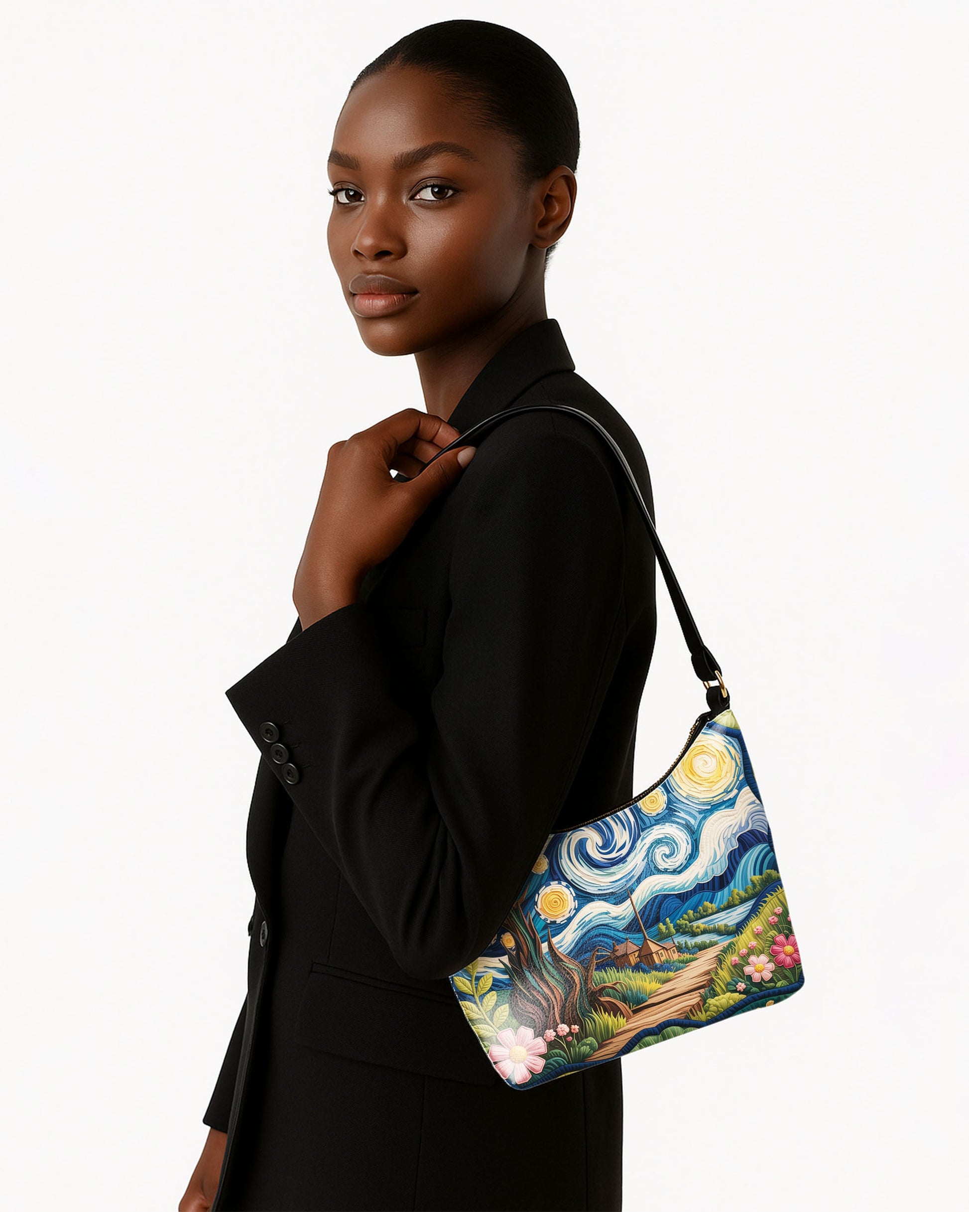 RE:LEATHER Leather Baguette Bag Underarm Shoulder Bag in Starry Night With Forest Flower Home