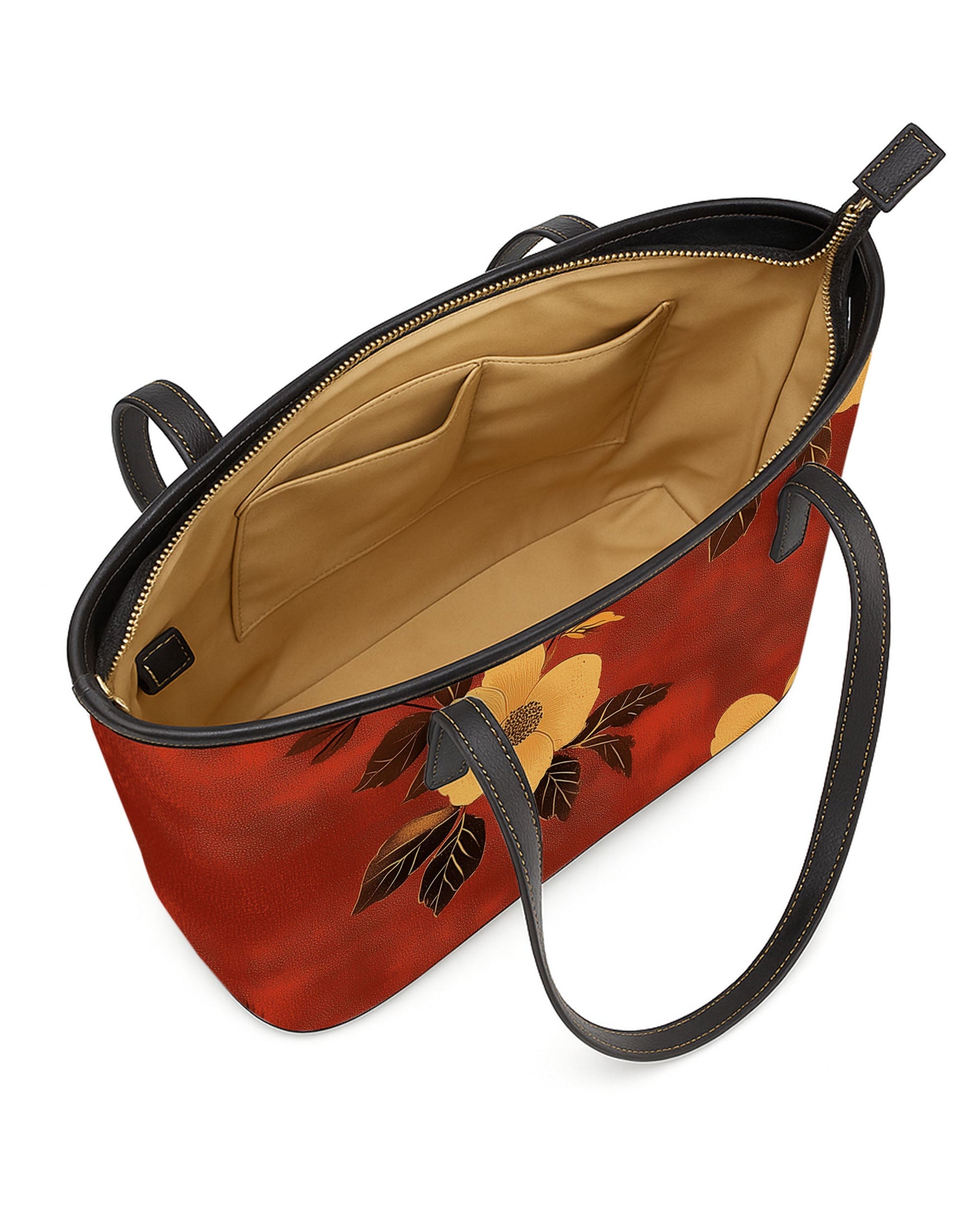 Crafted from eco-friendly water-based PU leather, this spacious tote features a beige-lined interior with slip pockets, a smooth zipper closure, and adjustable black leather handles—perfect for daily errands, work, or shopping in style.