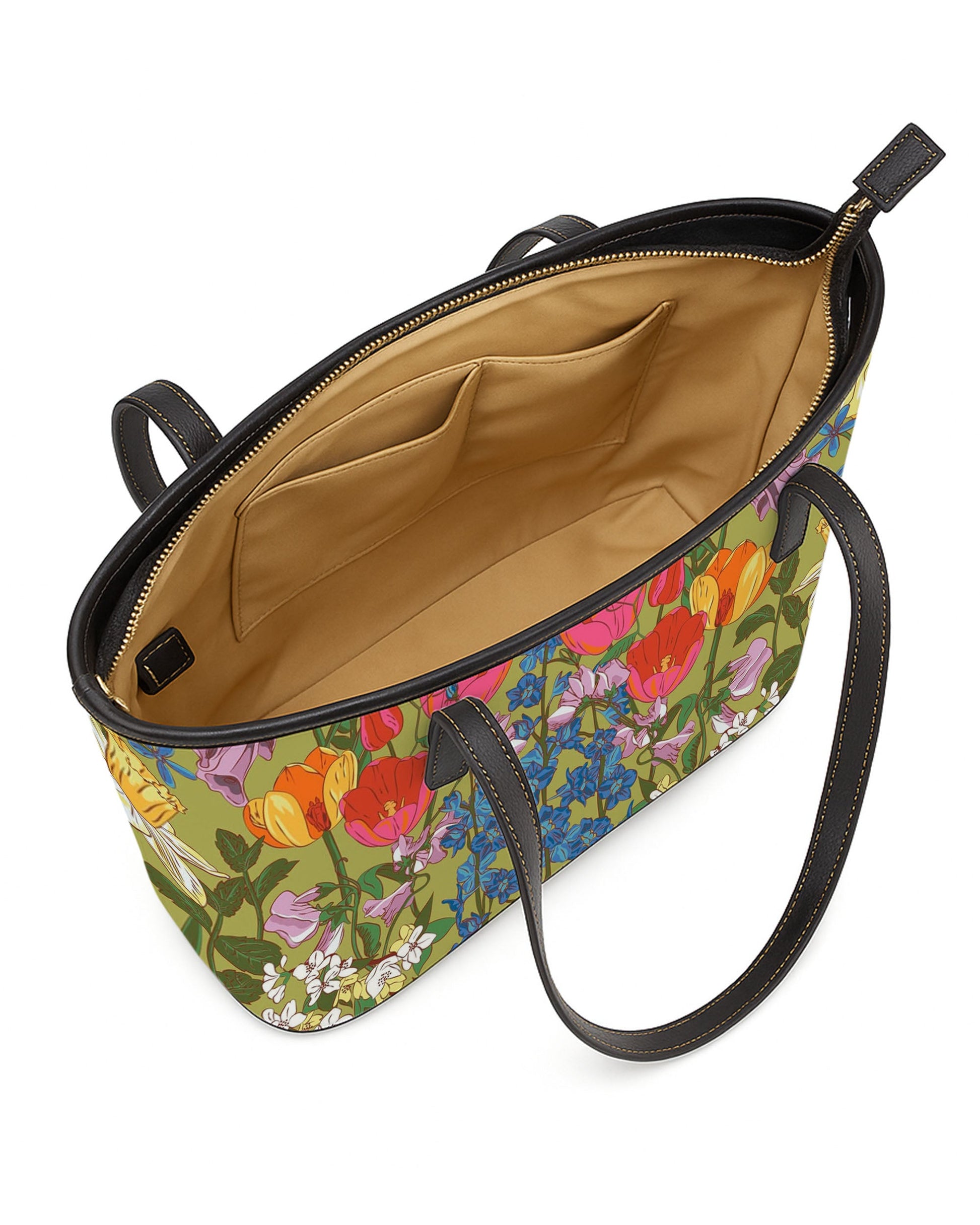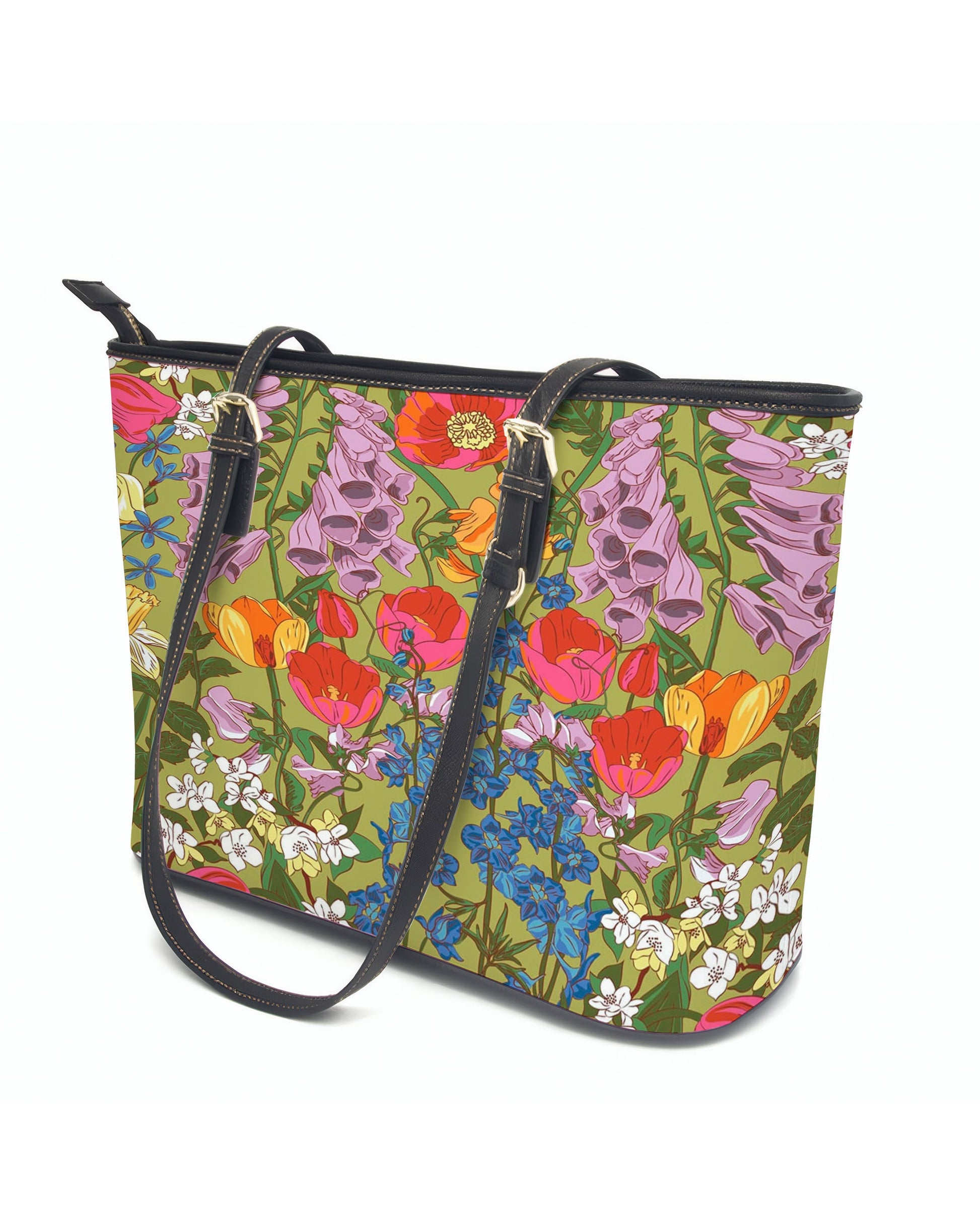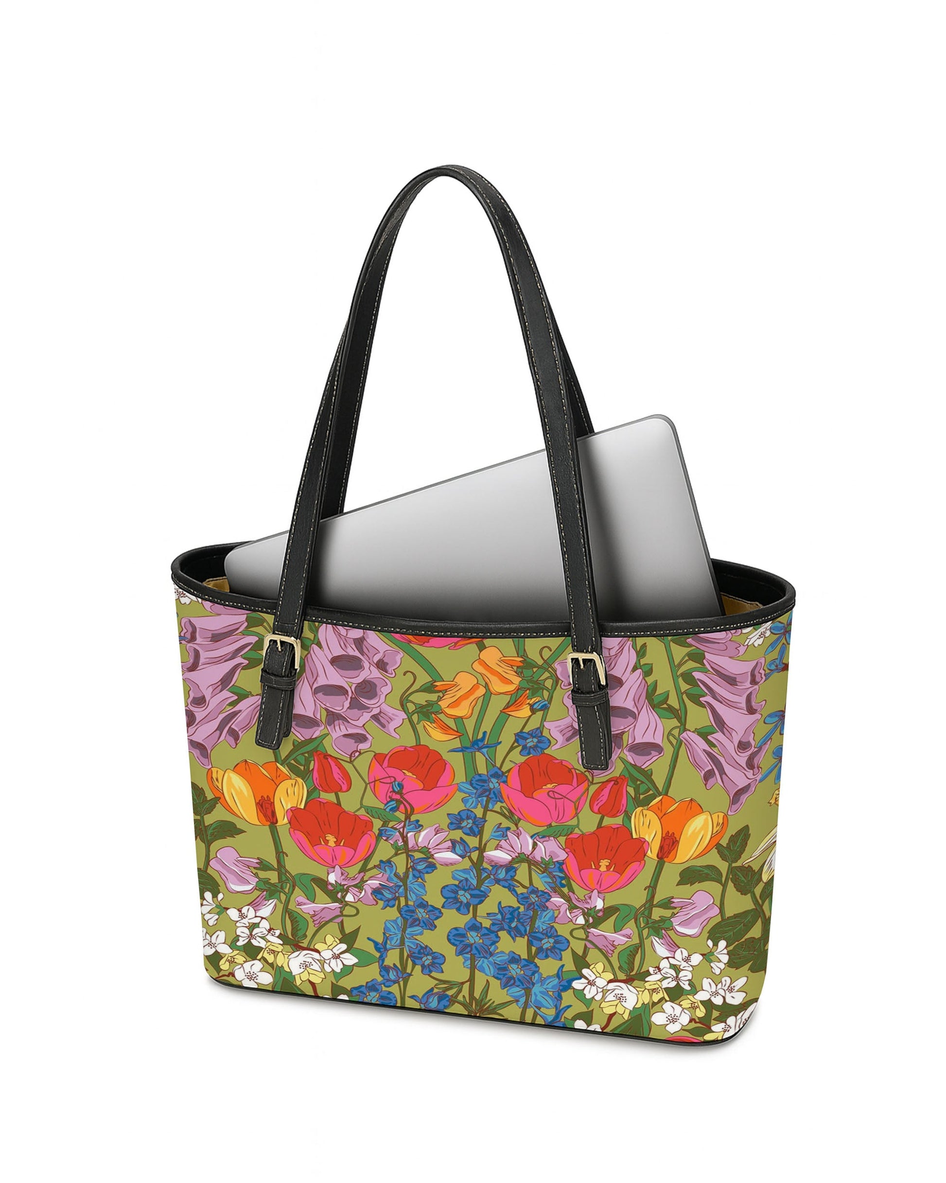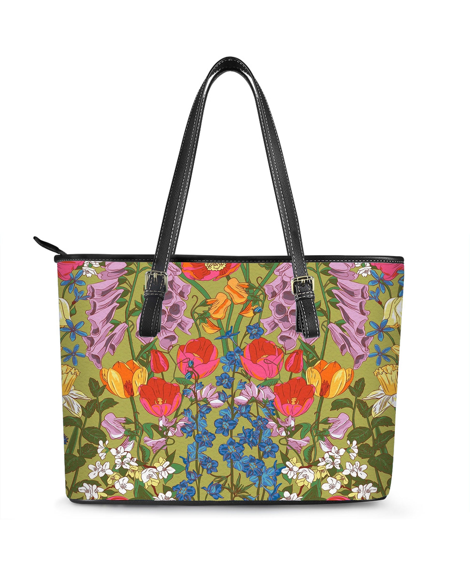 RE:LEATHER Leather Saddle Shoulder Bag with Top Handle Casual Tote Bag in Flower Garden Tulip Colorful