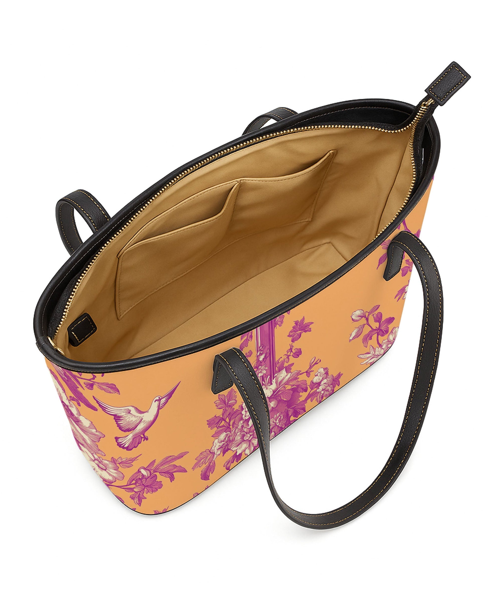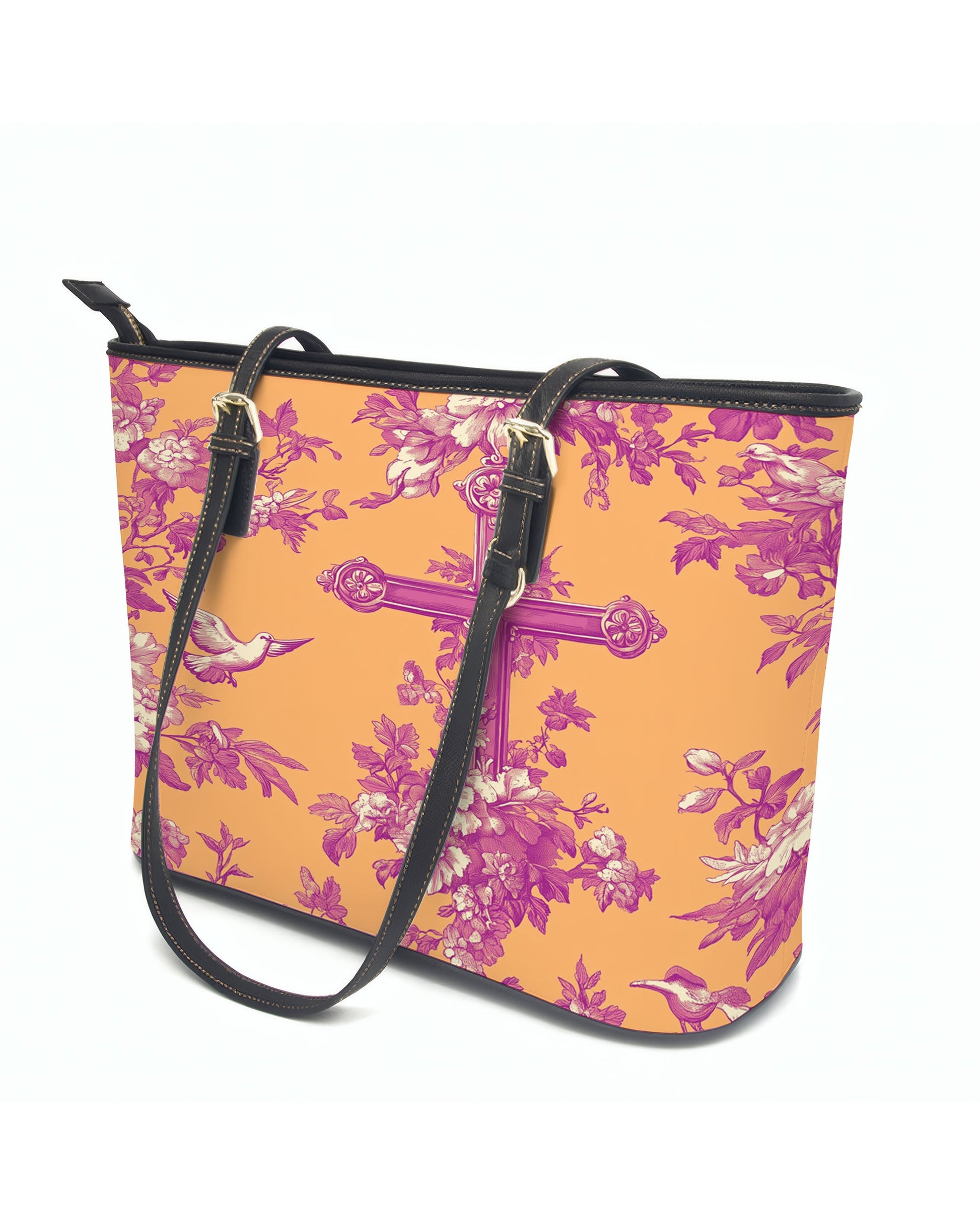 RE:LEATHER Leather Saddle Shoulder Bag with Top Handle Casual Tote Bag in French Toile Style Flowers