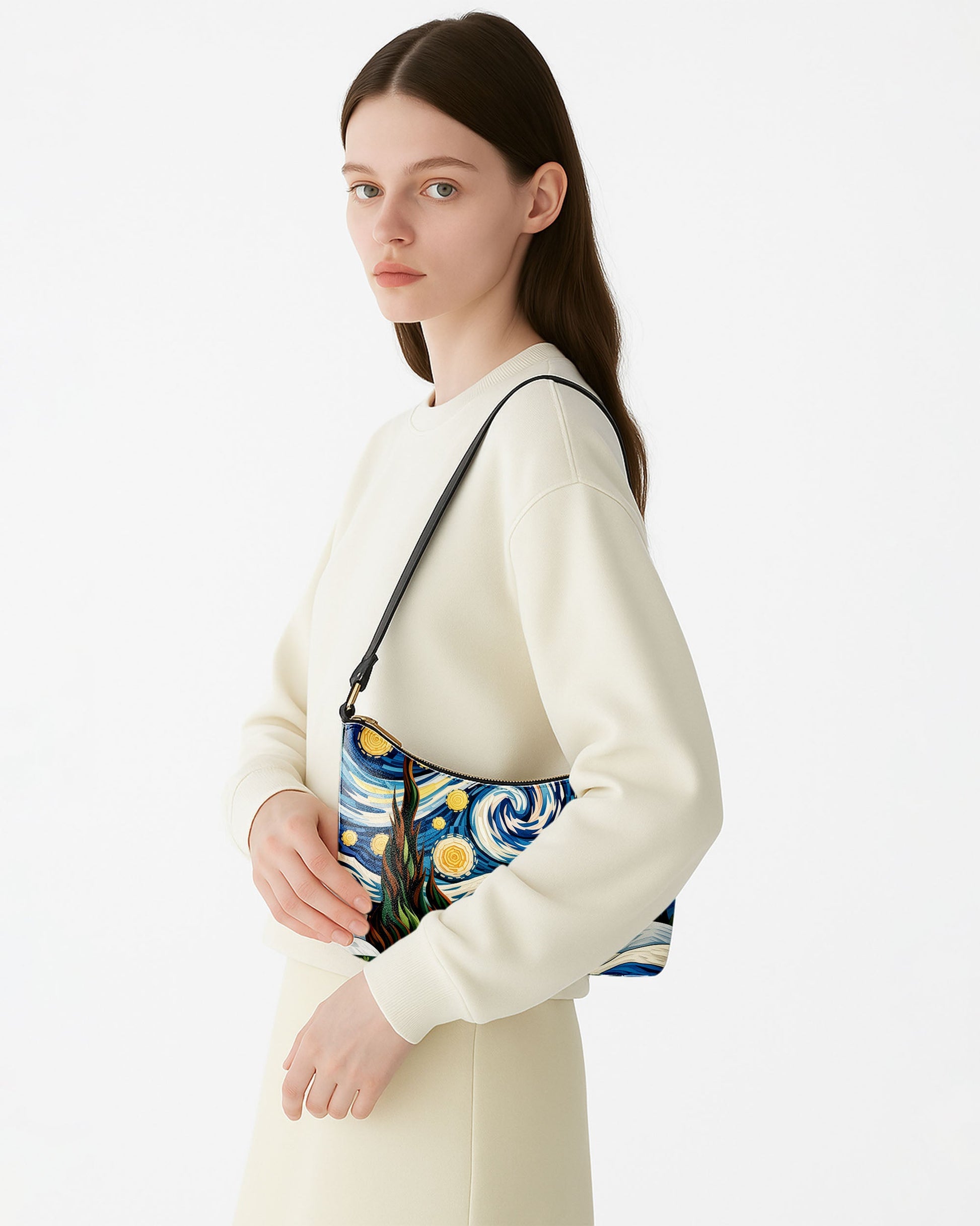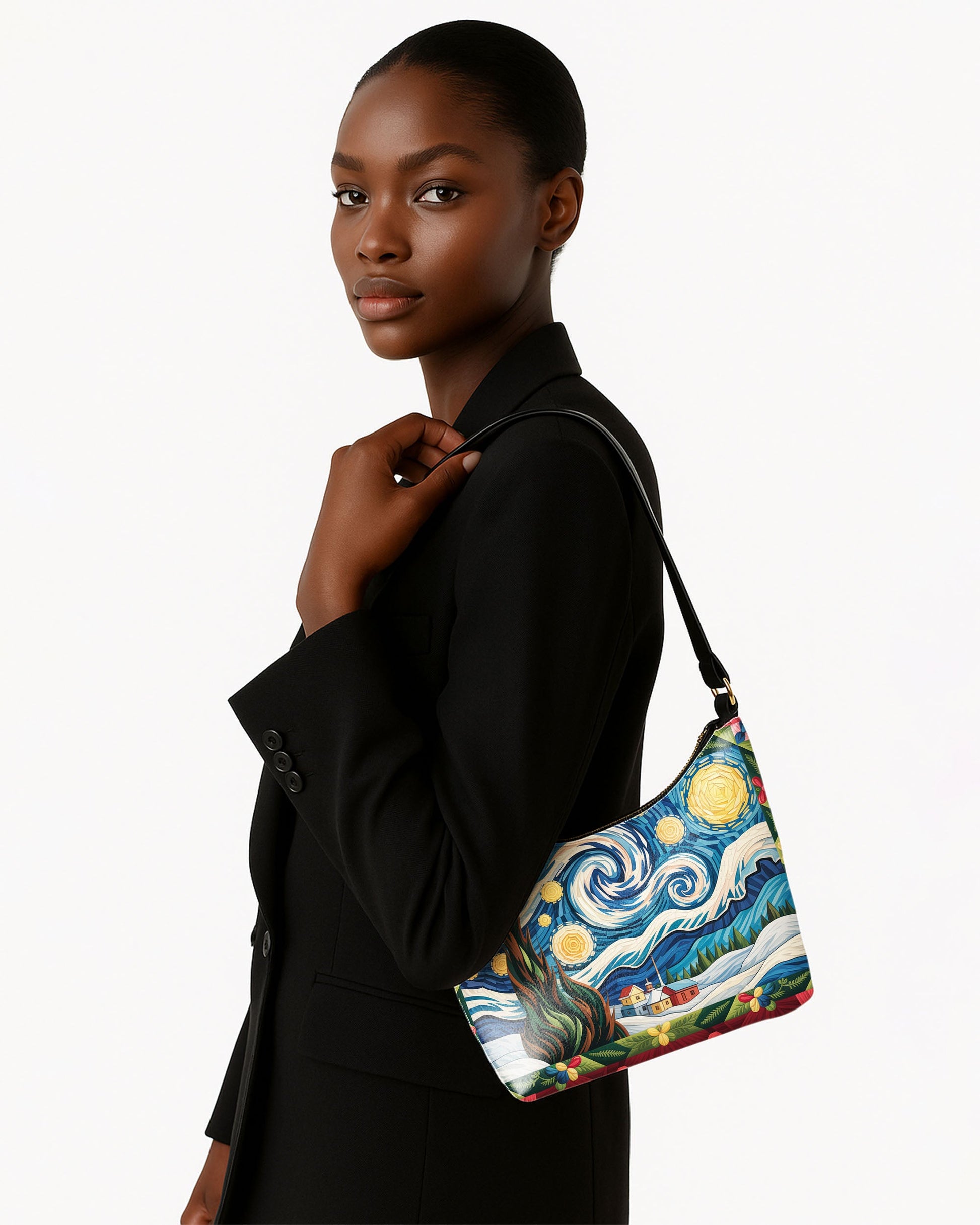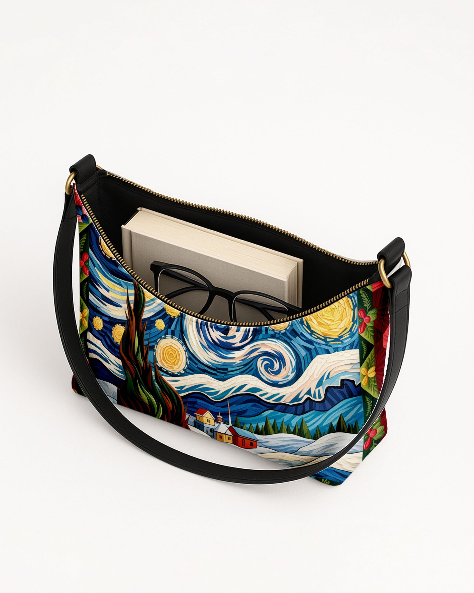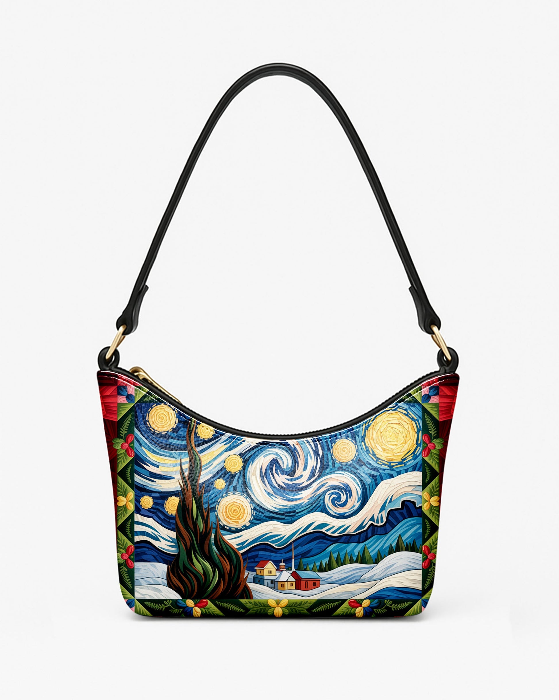 RE:LEATHER Leather Baguette Bag Underarm Shoulder Bag in Starry Night With Snow Home 02
