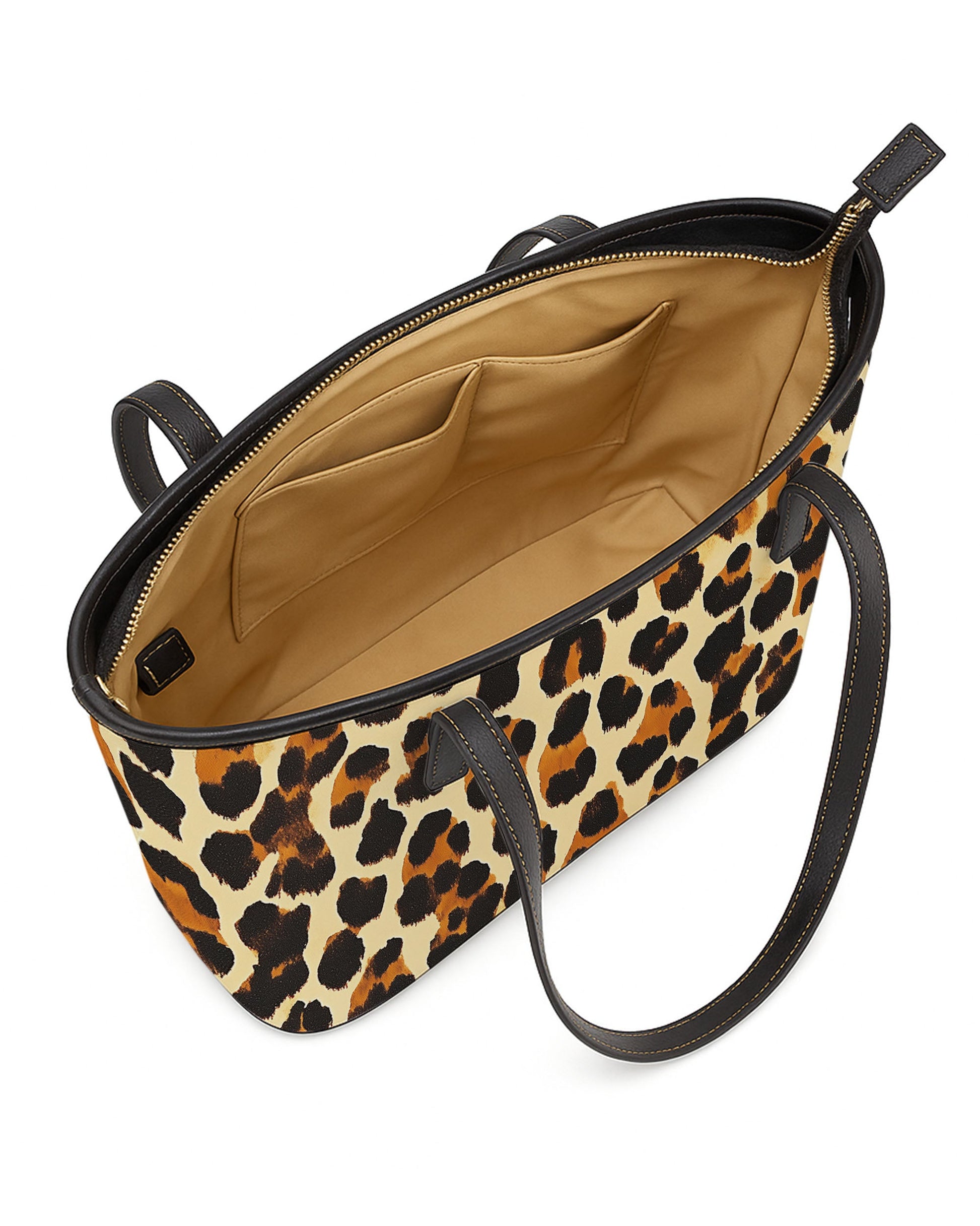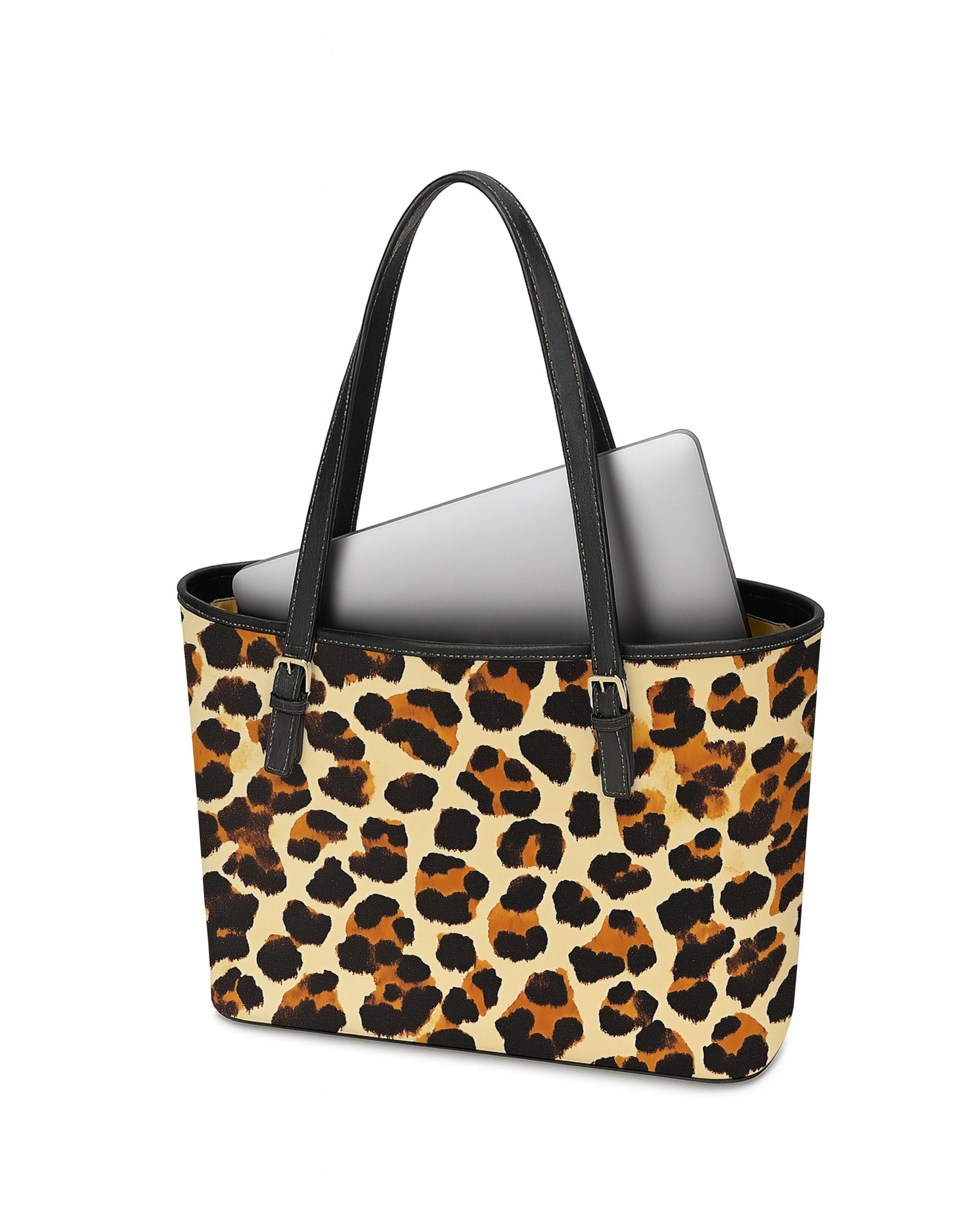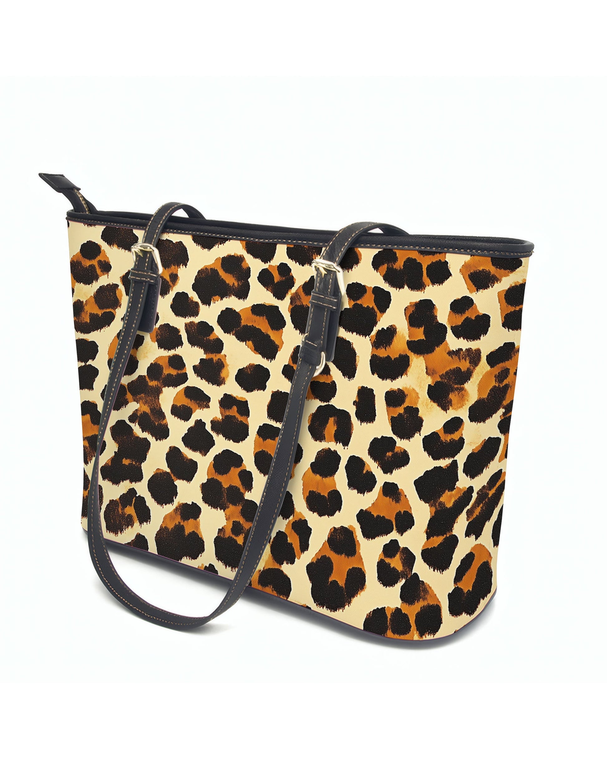 RE:LEATHER Leather Saddle Shoulder Bag with Top Handle Casual Tote Bag in Orange and Brown Leopard Print