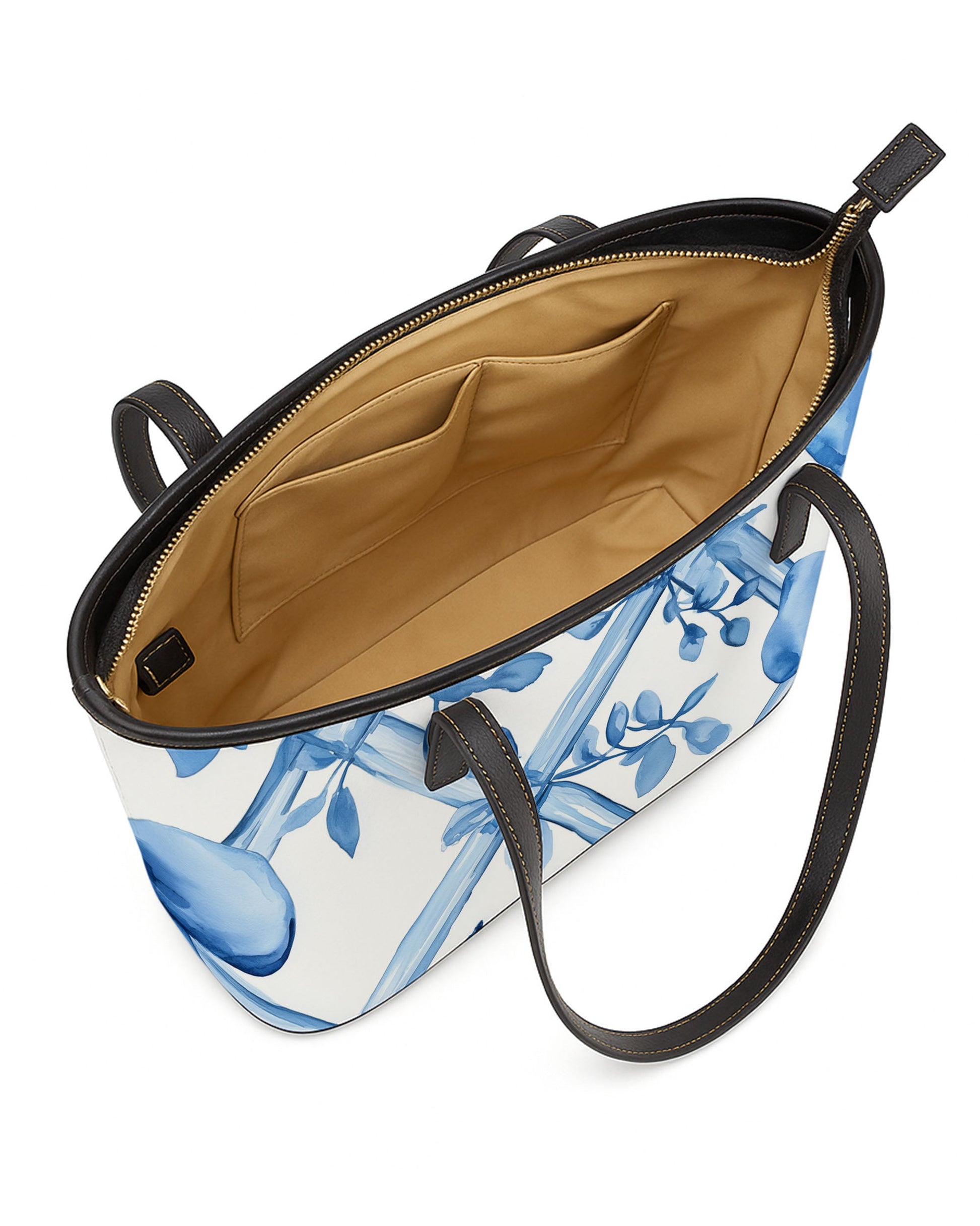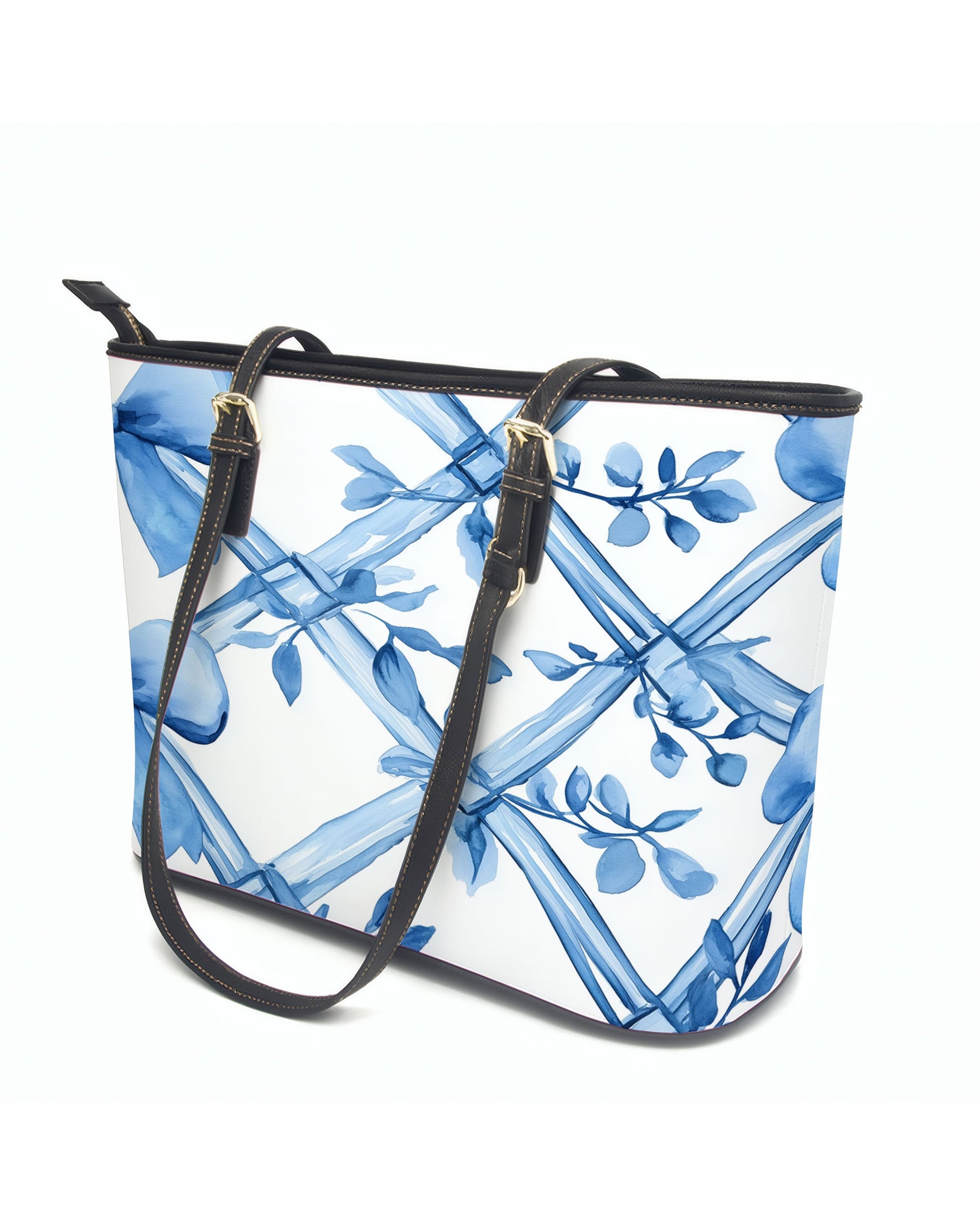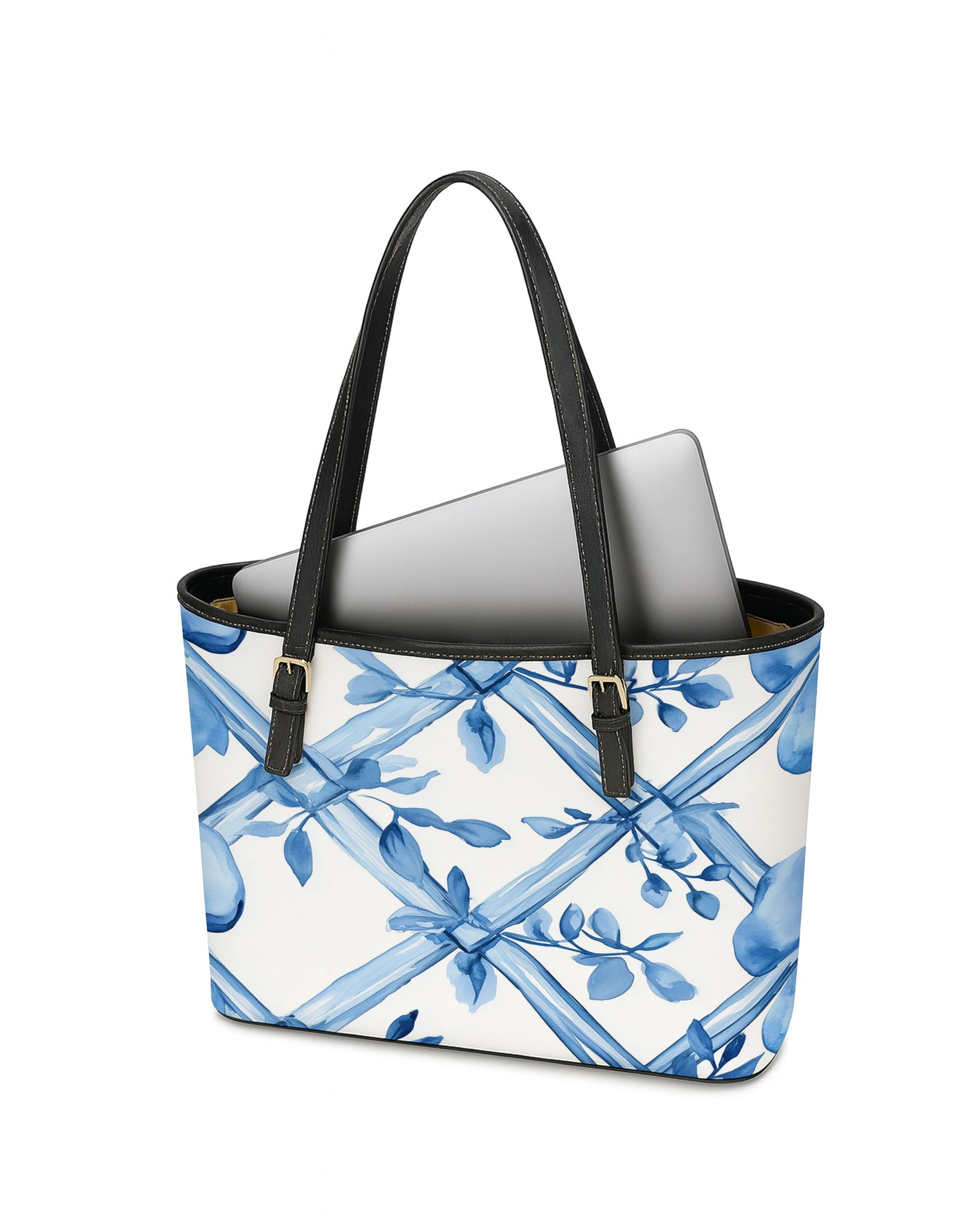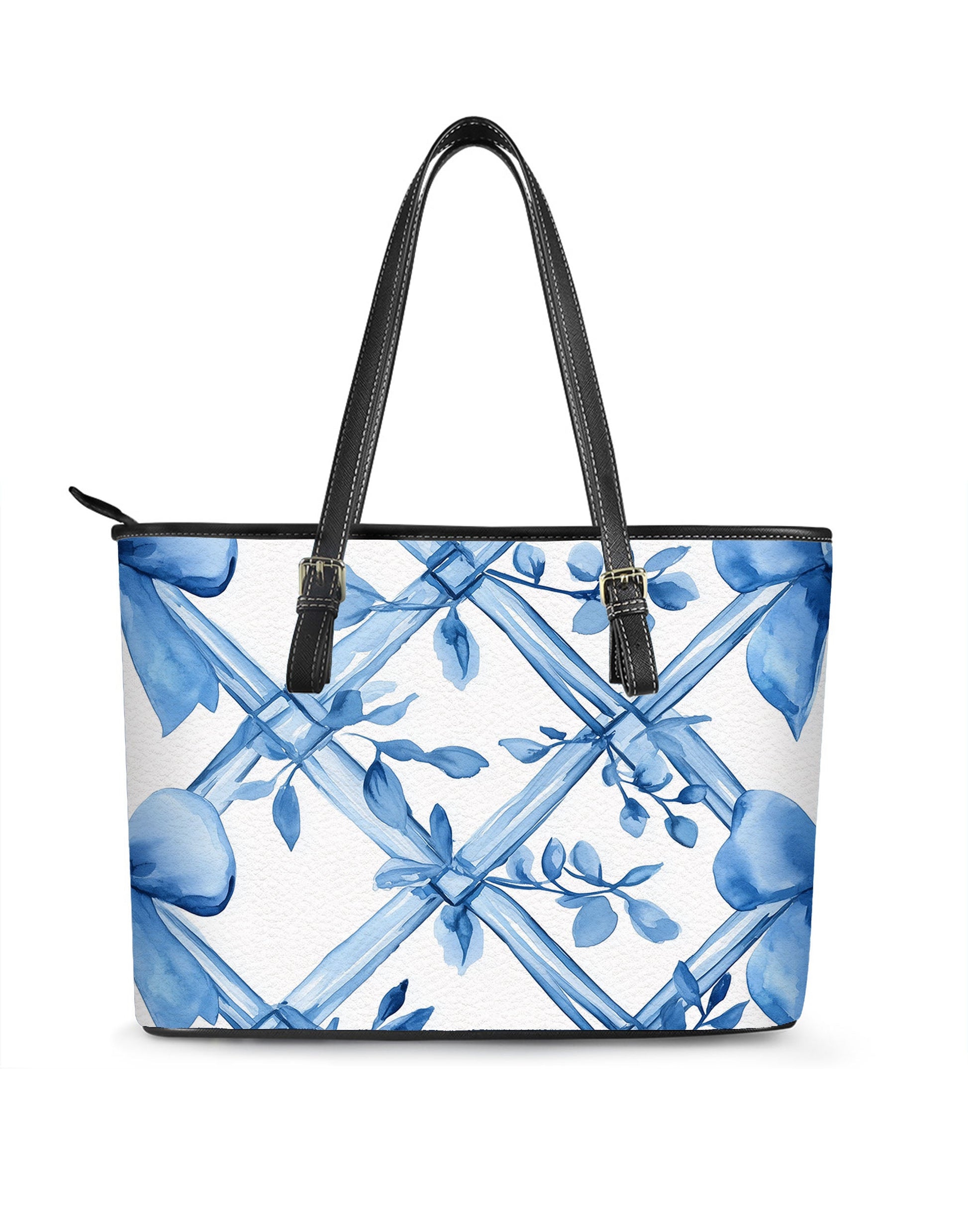 RE:LEATHER Leather Saddle Shoulder Bag with Top Handle Casual Tote Bag in Watercolor Blue and Bow