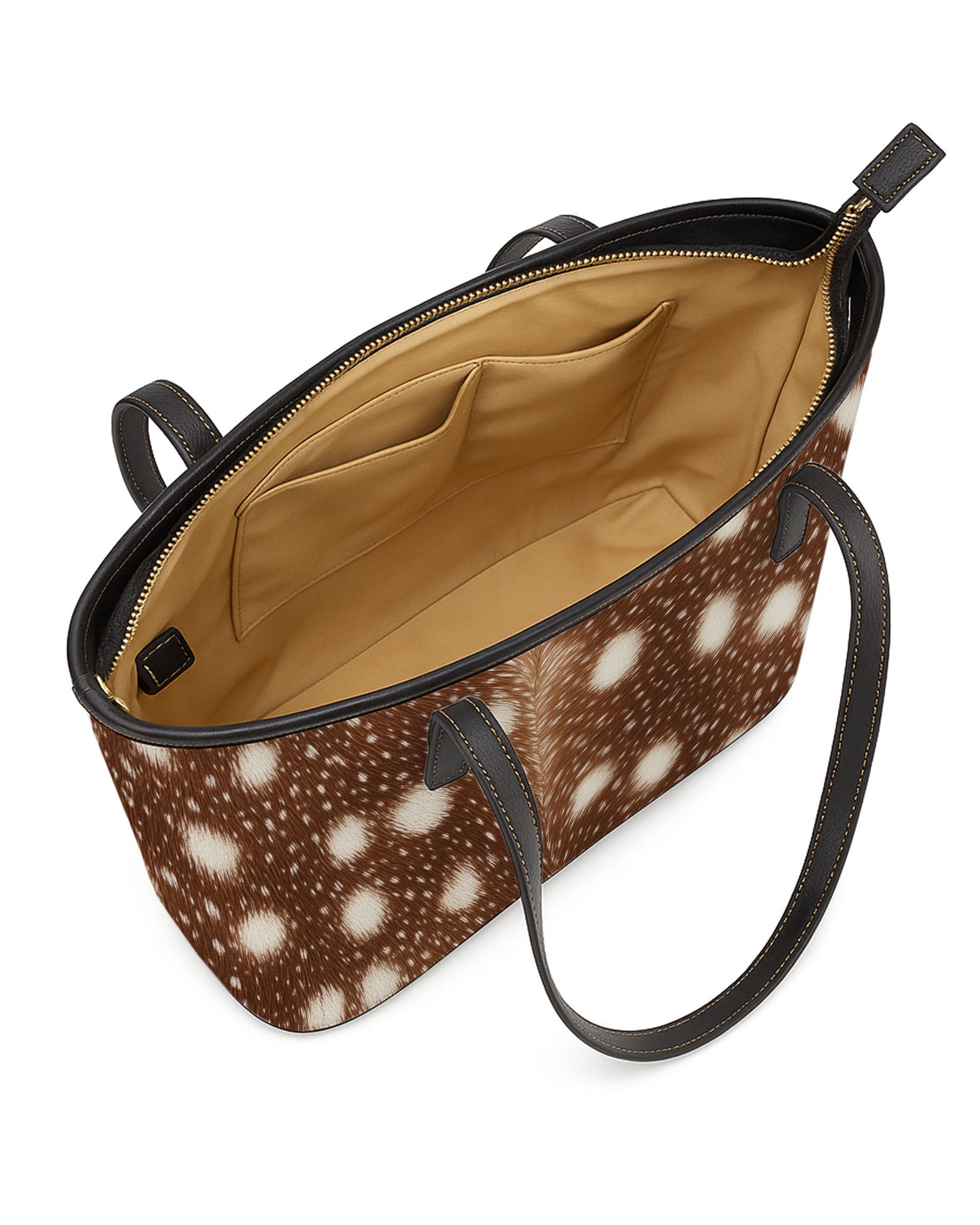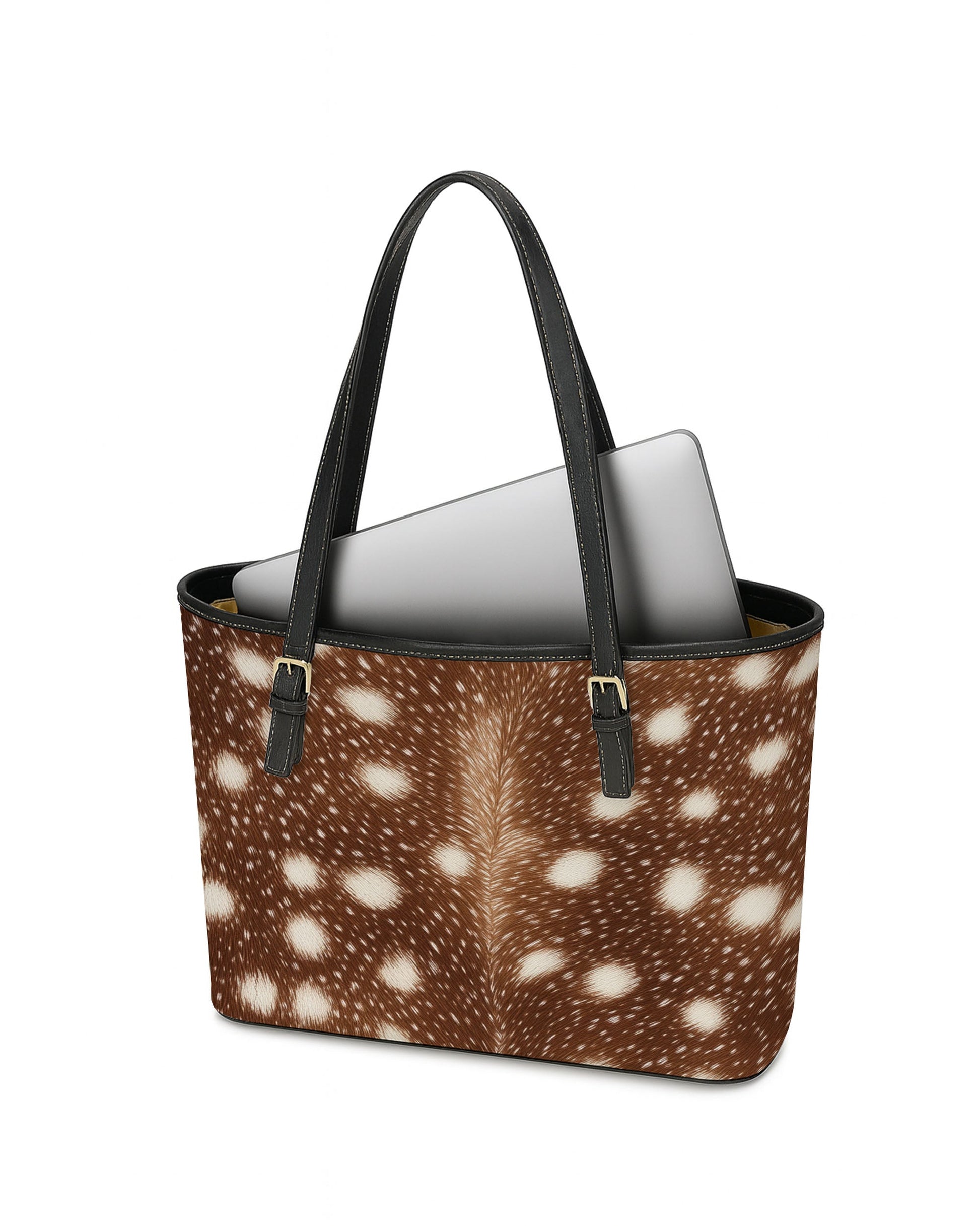 Crafted from eco-friendly water-based PU leather, this spacious tote features a beige-lined interior with slip pockets, a smooth zipper closure, and adjustable black leather handles—perfect for daily errands, work, or shopping in style.