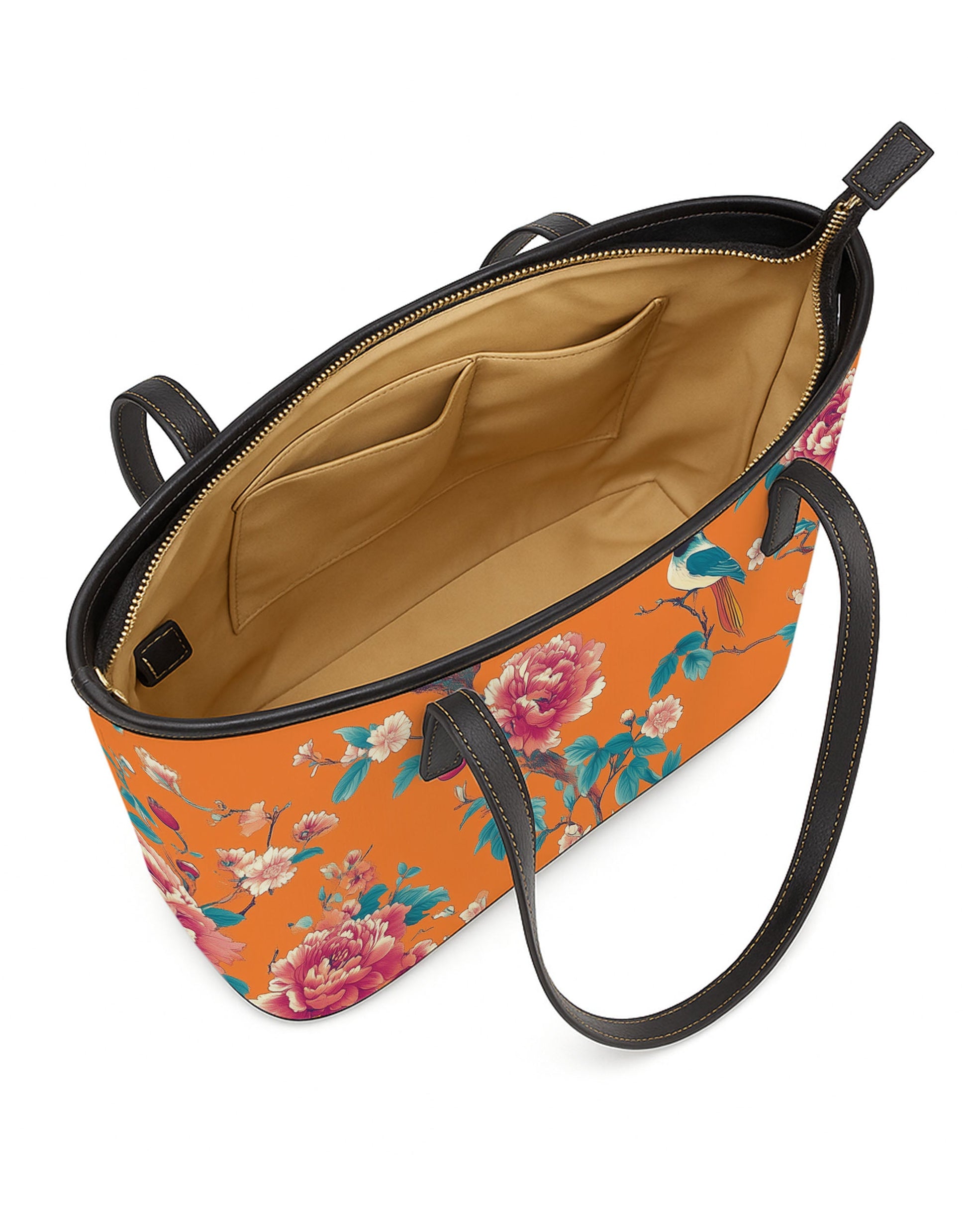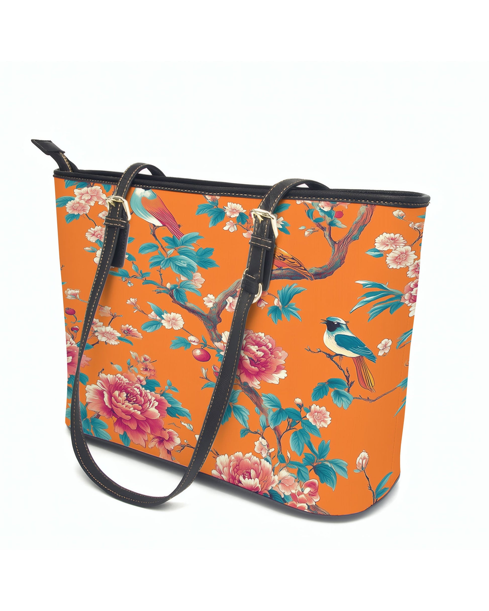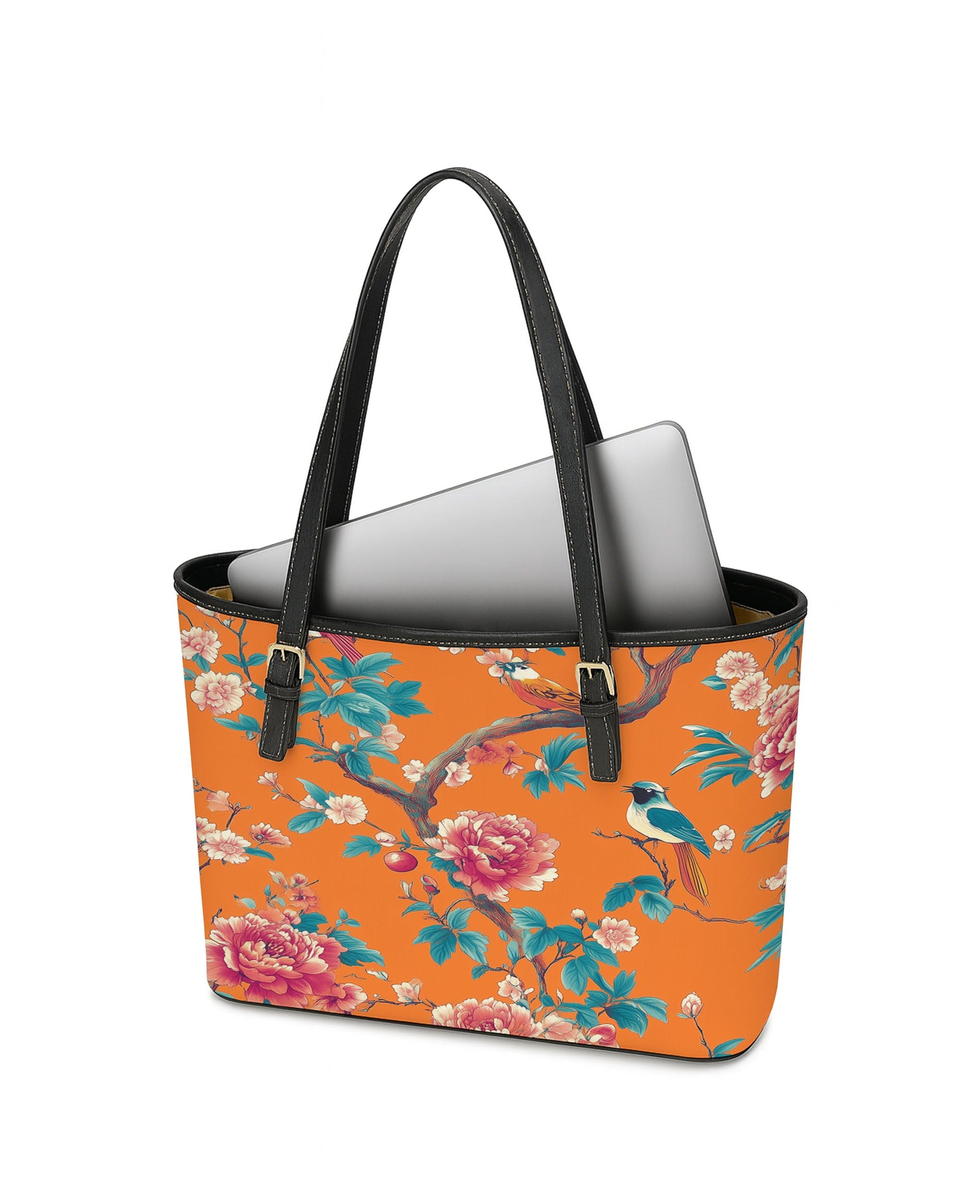 RE:LEATHER Leather Saddle Shoulder Bag with Top Handle Casual Tote Bag in Orange Bloom