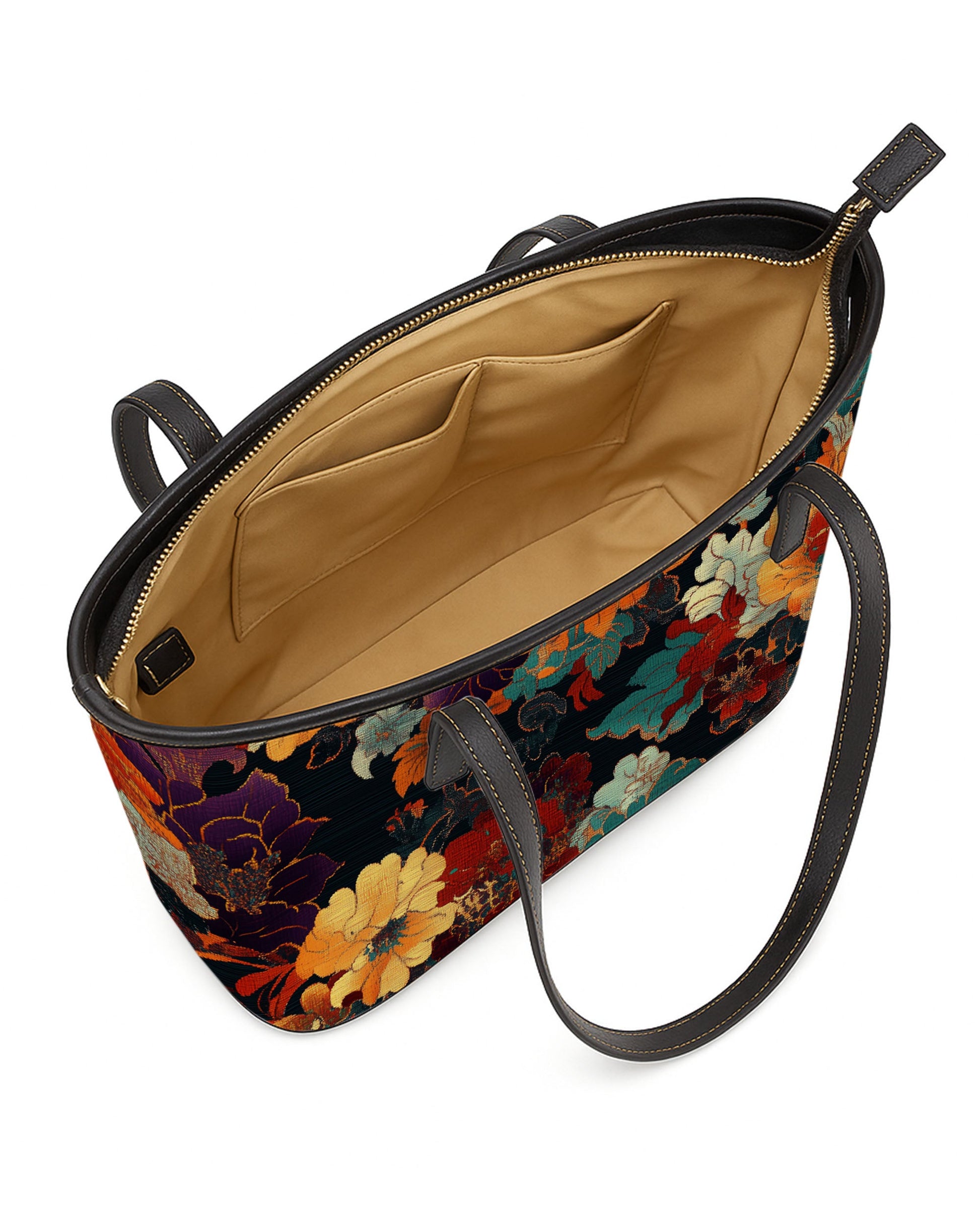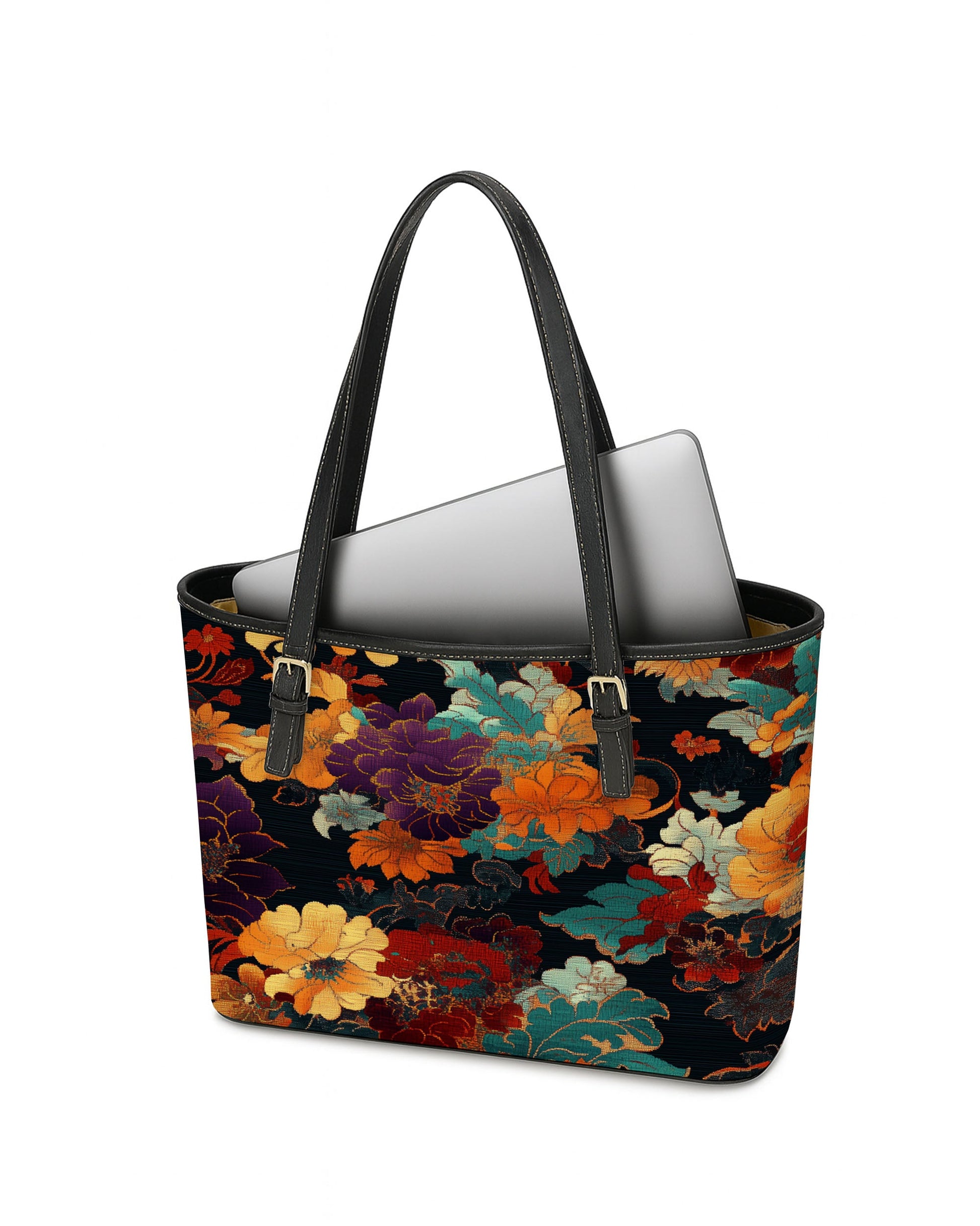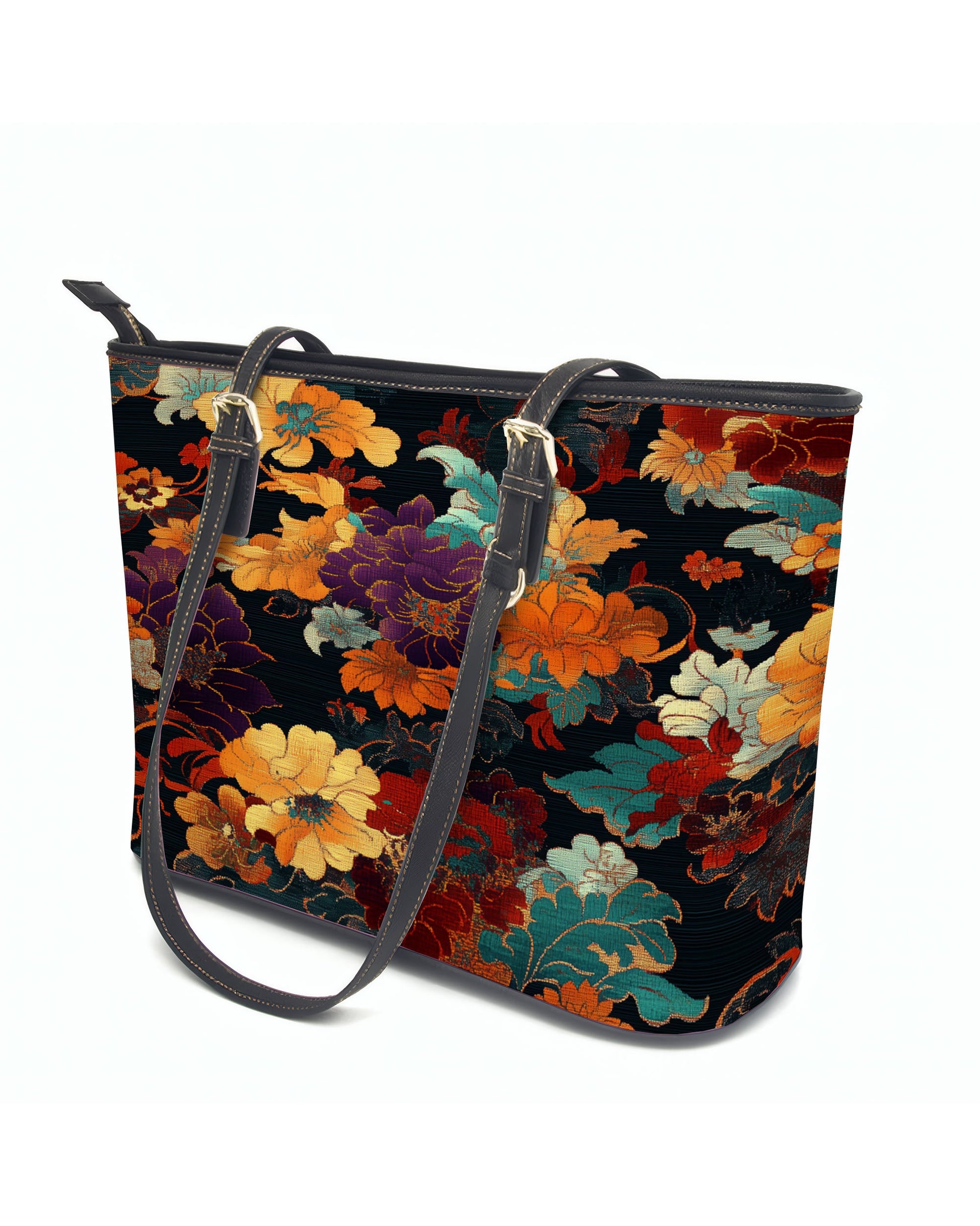 RE:LEATHER Leather Saddle Shoulder Bag with Top Handle Casual Tote Bag in Oriental Brocade Floral
