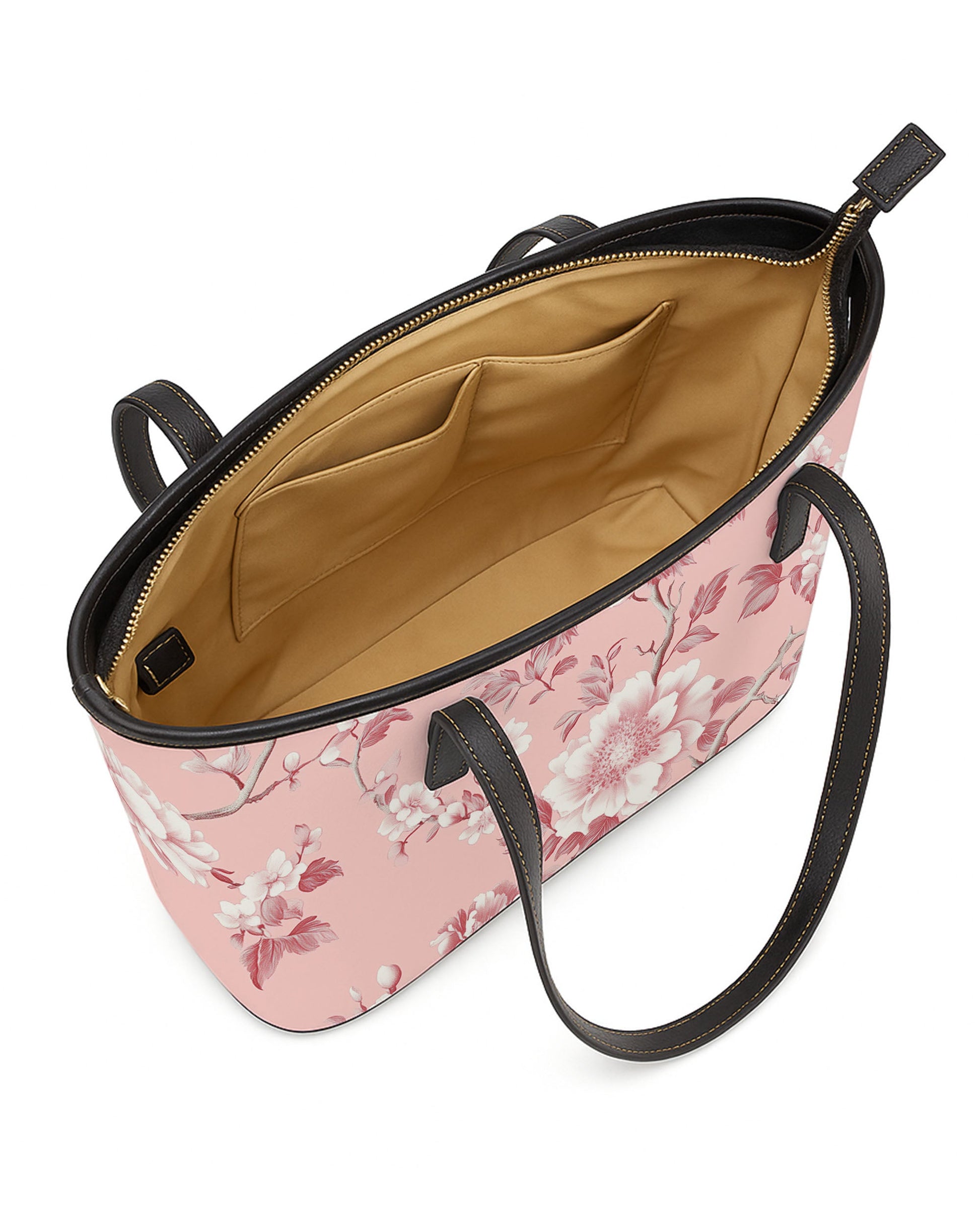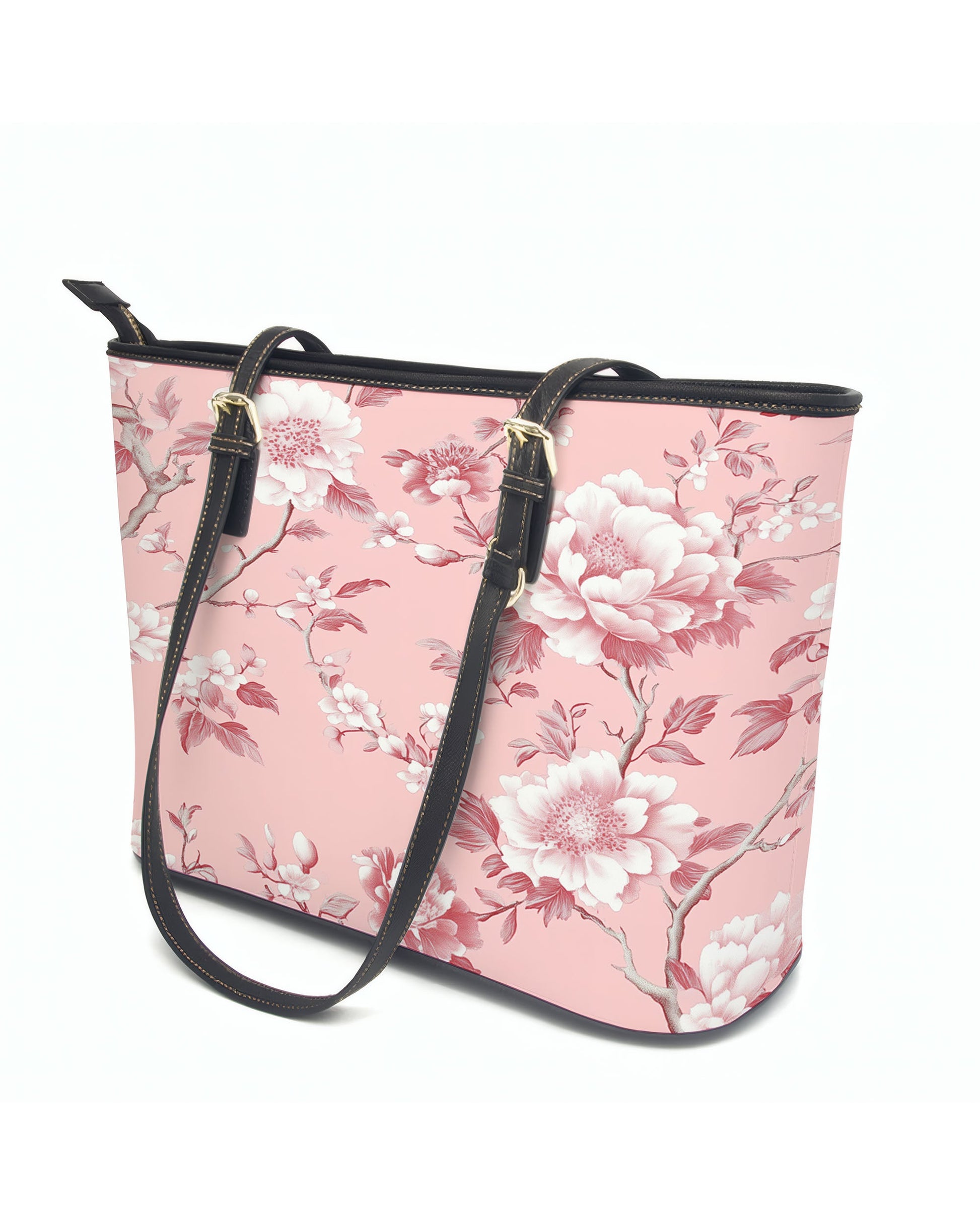 RE:LEATHER Leather Saddle Shoulder Bag with Top Handle Casual Tote Bag in Pink Flowers