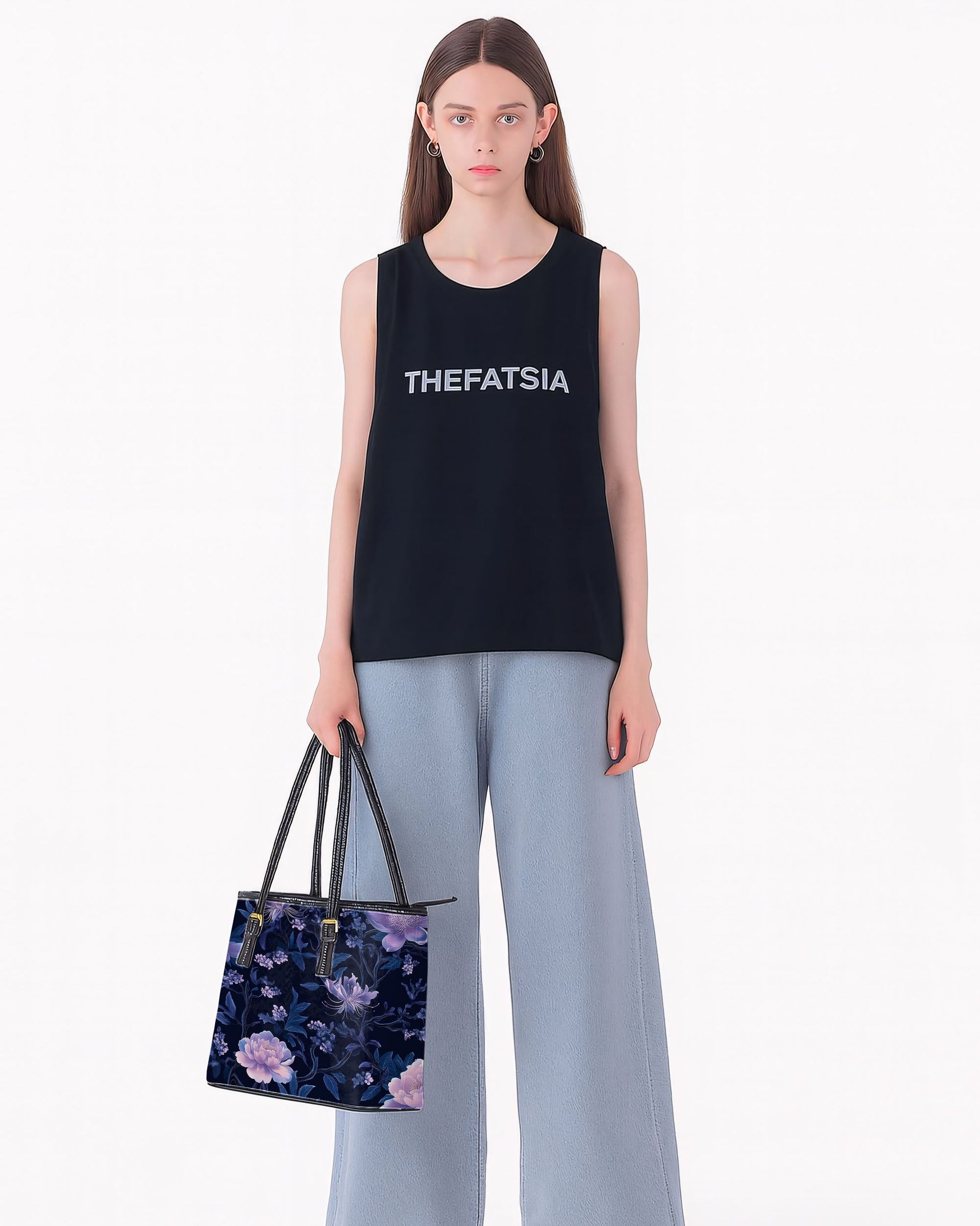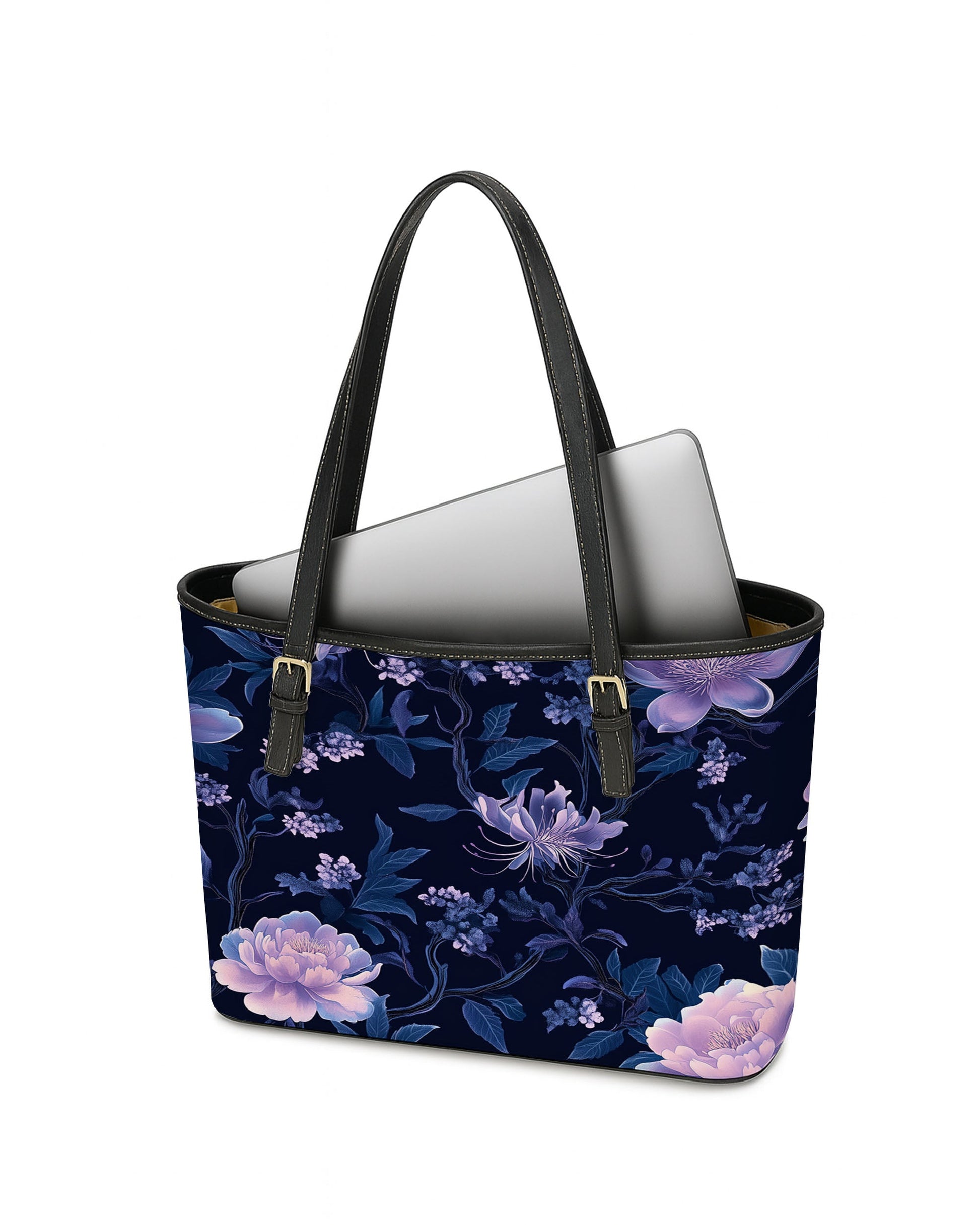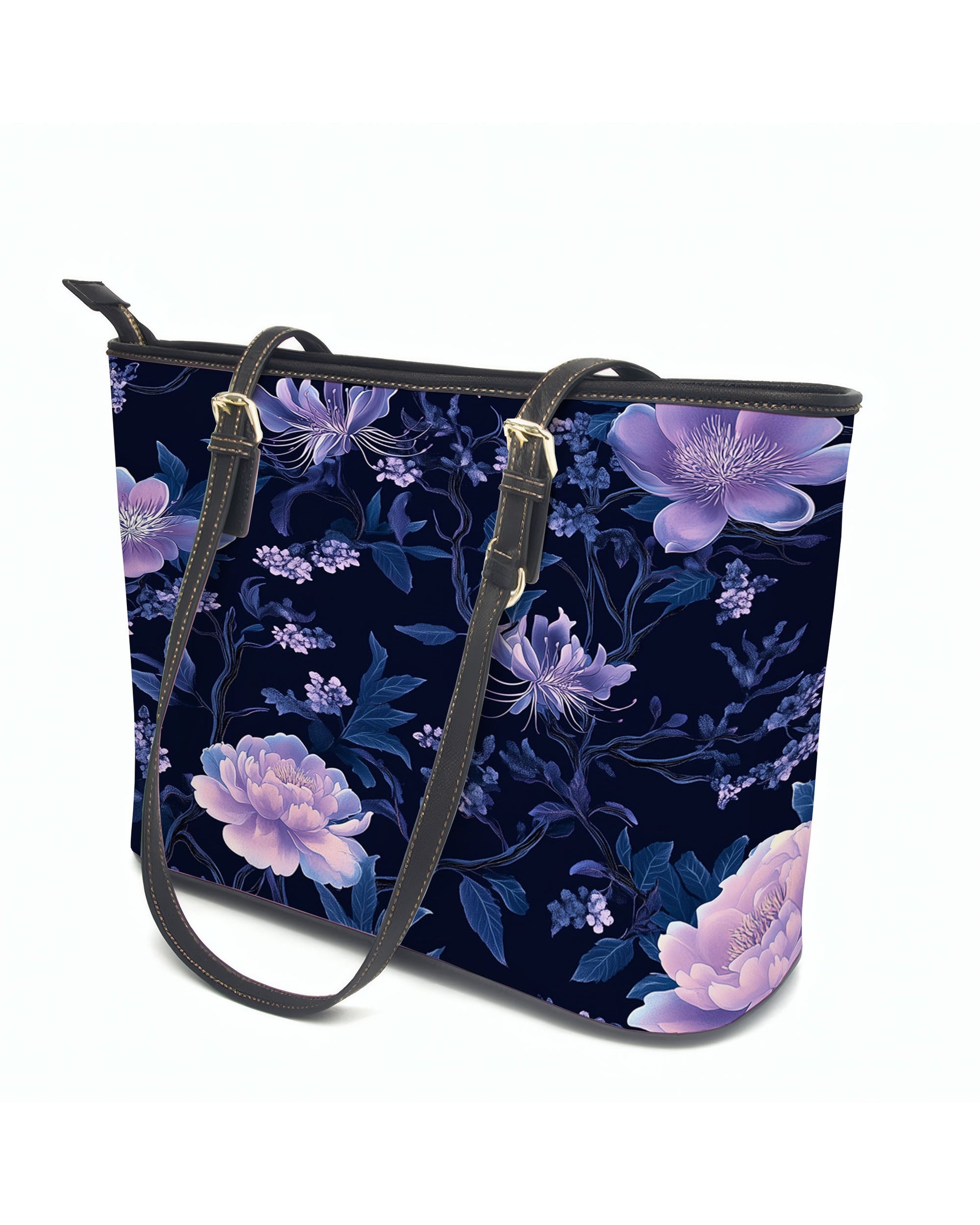 RE:LEATHER Leather Saddle Shoulder Bag with Top Handle Casual Tote Bag in Purple Blossom in The Dark