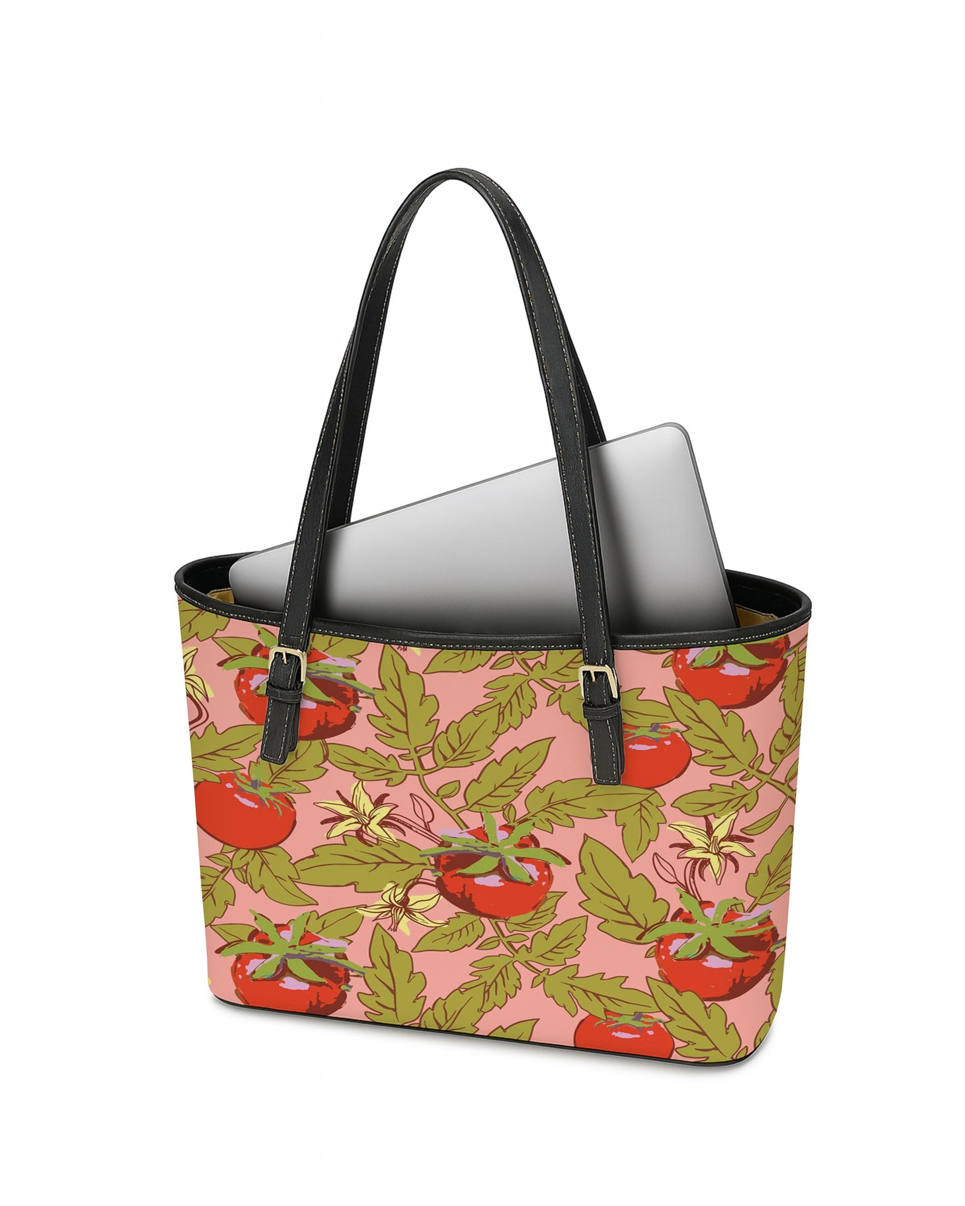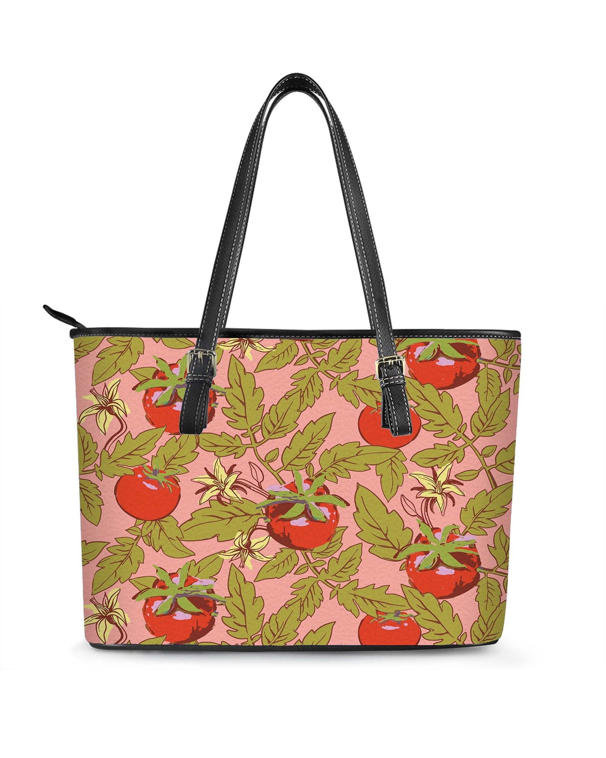 RE:LEATHER Leather Saddle Shoulder Bag with Top Handle Casual Tote Bag in Tomato Vintage on Pink