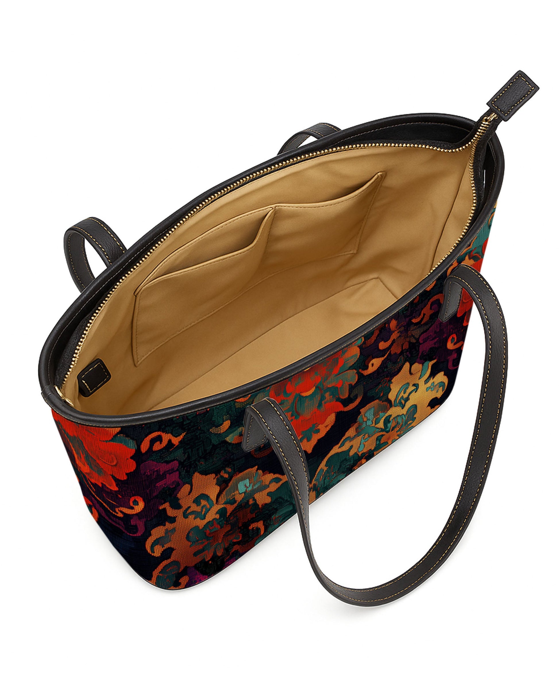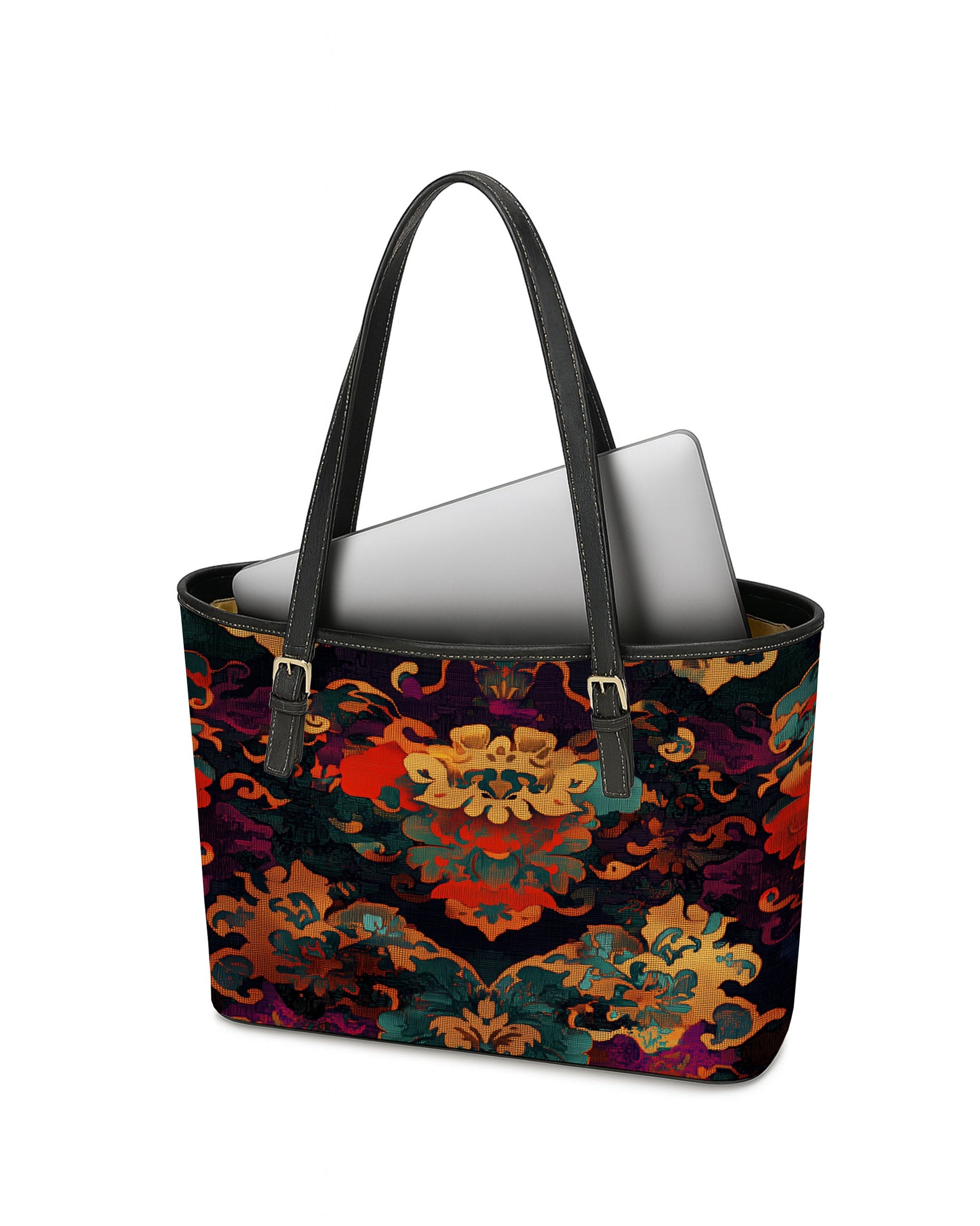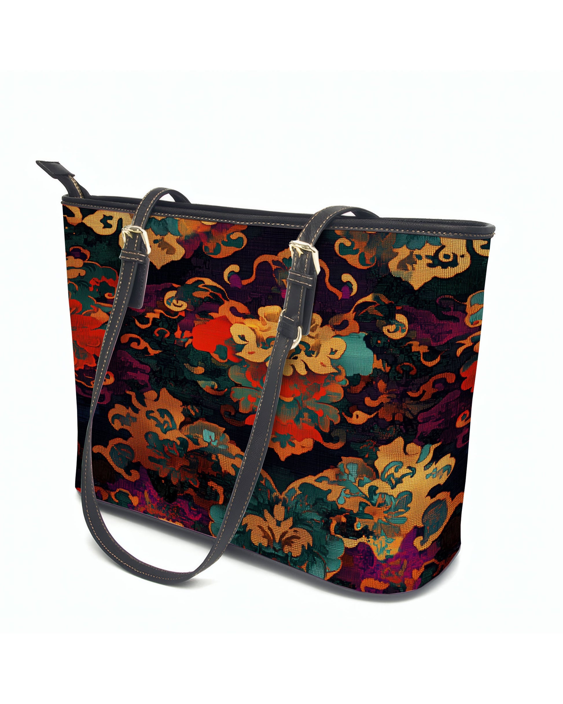 RE:LEATHER Leather Saddle Shoulder Bag with Top Handle Casual Tote Bag in Vintage Baroque Tapestry