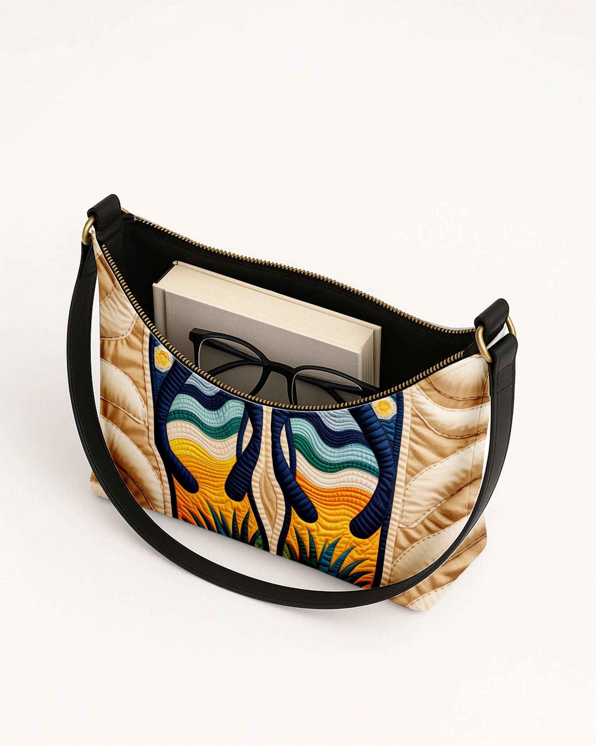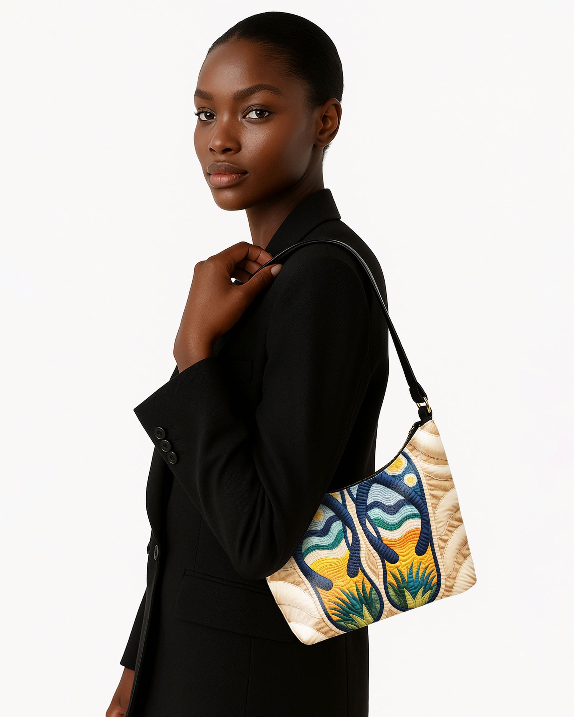 RE:LEATHER Leather Baguette Bag Underarm Shoulder Bag in Night Flip Flops Slippes Sandal on Beach