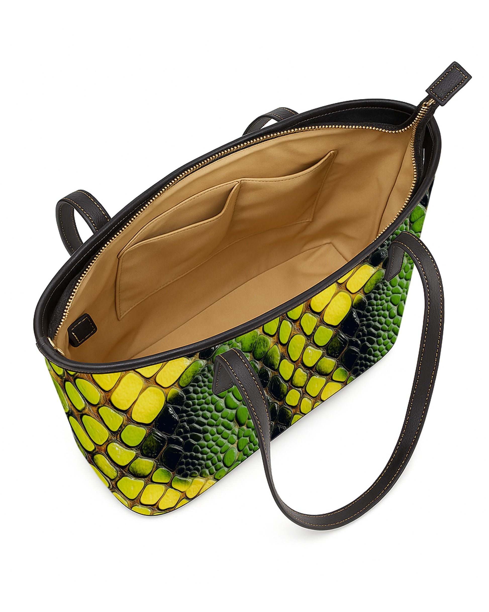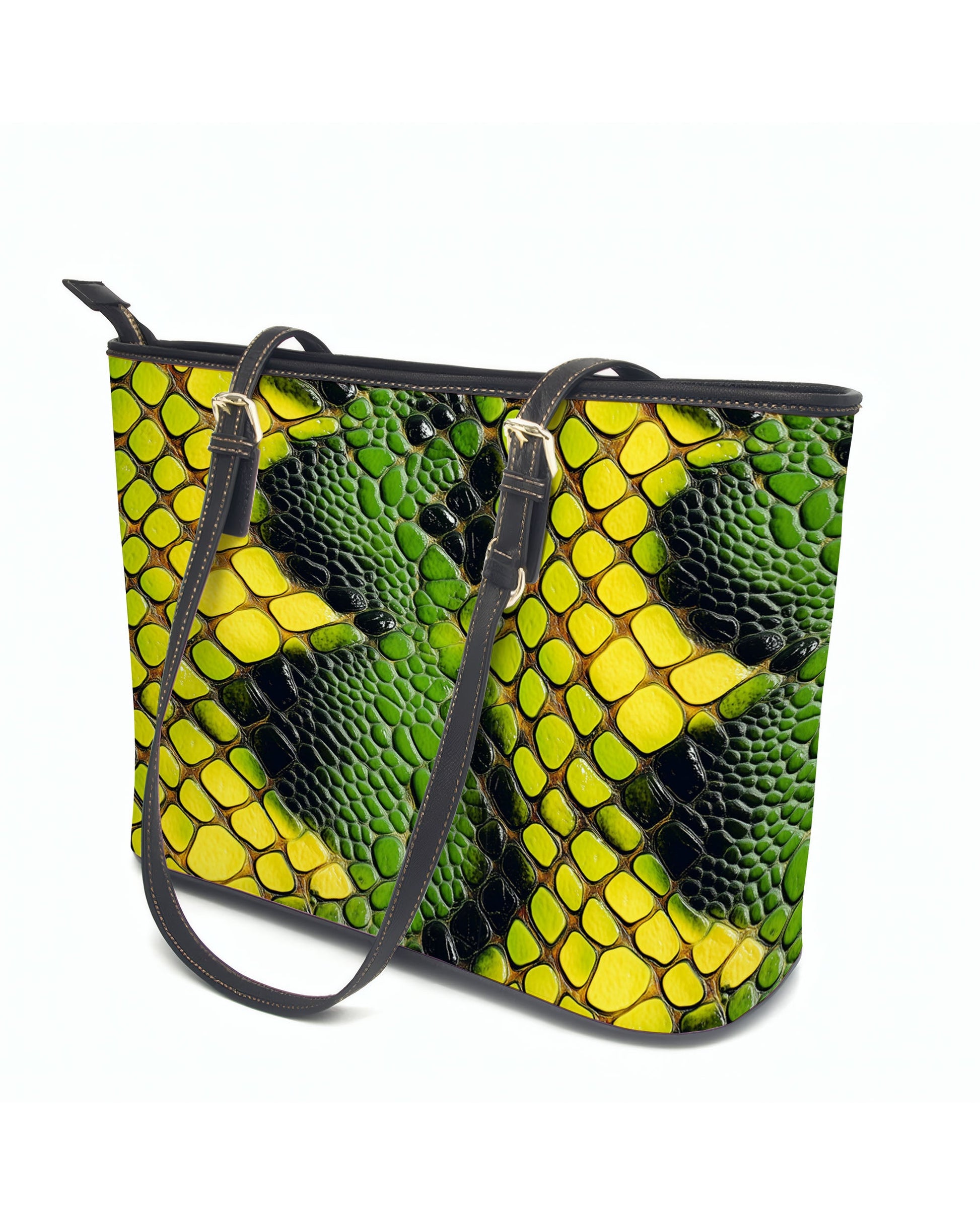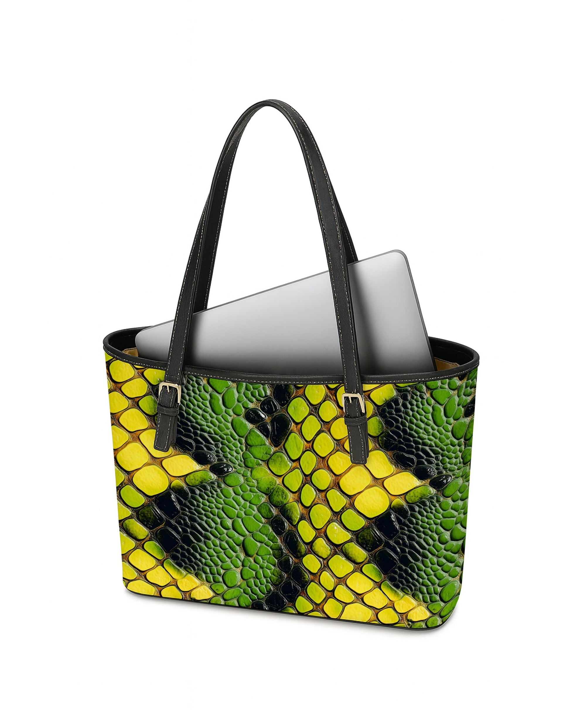 RE:LEATHER Leather Saddle Shoulder Bag with Top Handle Casual Tote Bag in Black and Yellow Green Snake Skin