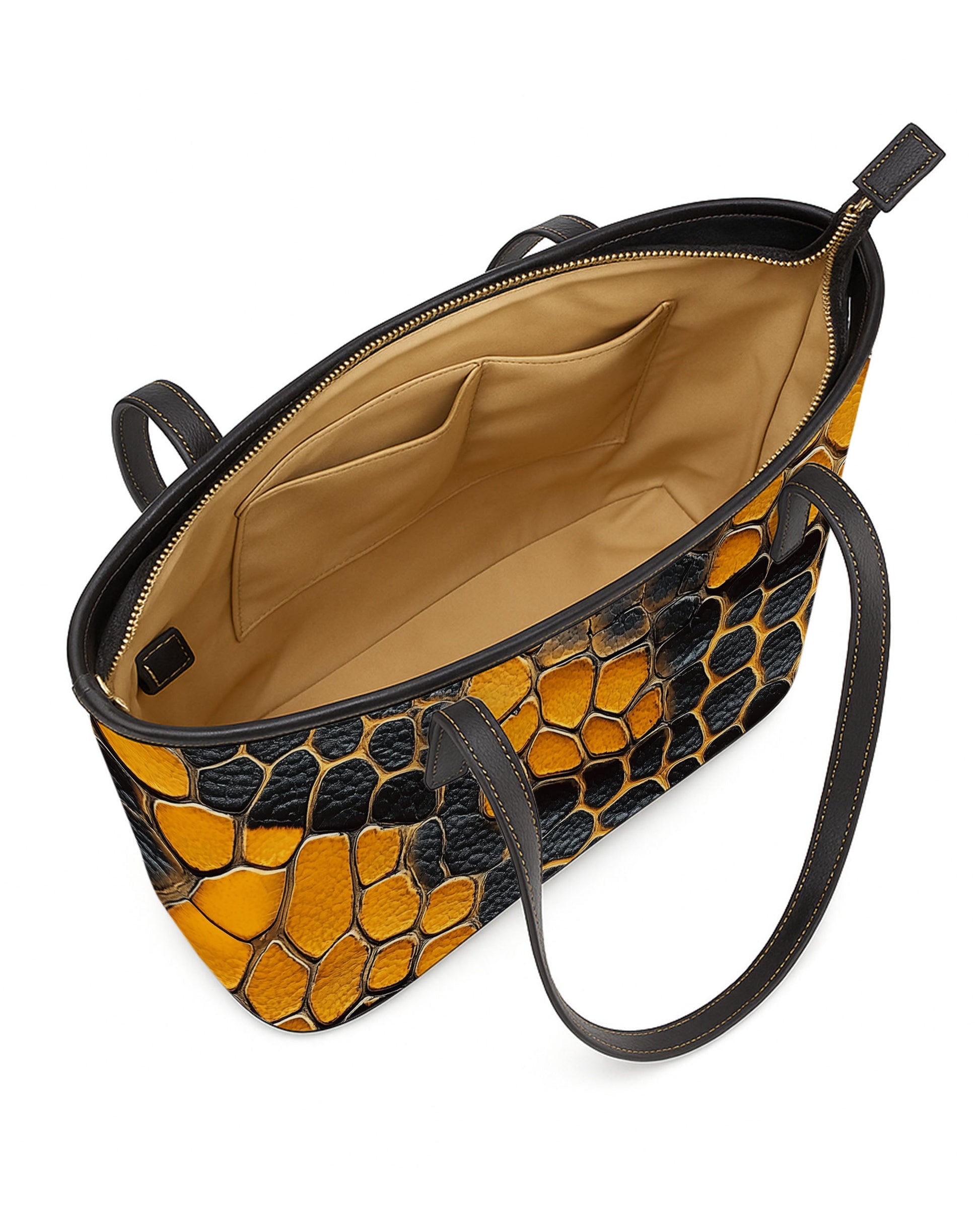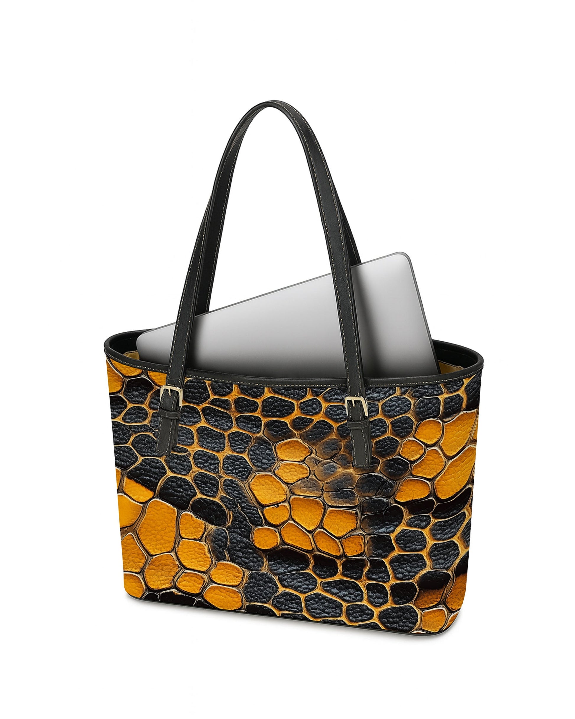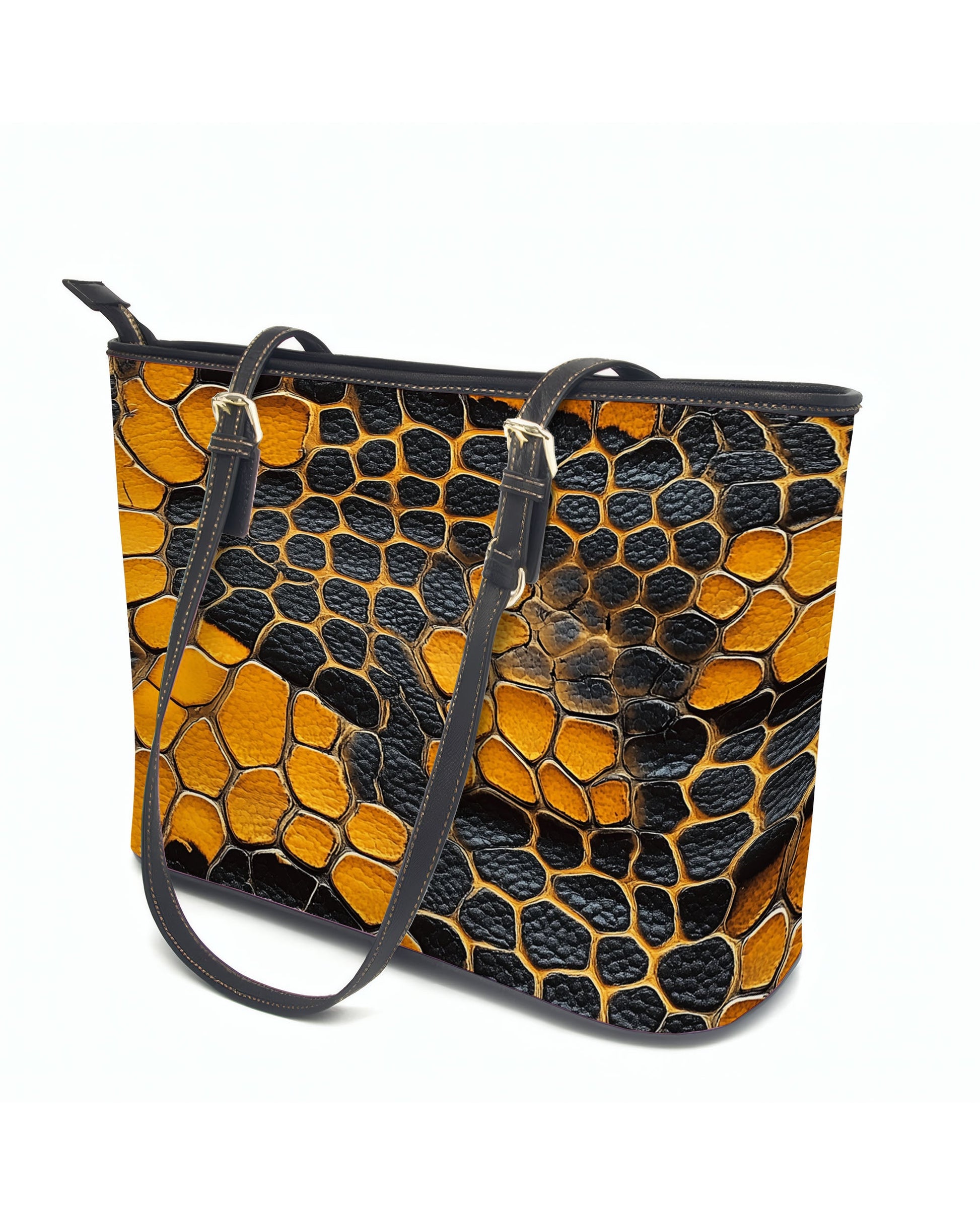 RE:LEATHER Leather Saddle Shoulder Bag with Top Handle Casual Tote Bag in Zoomed in Orange Snake Skin