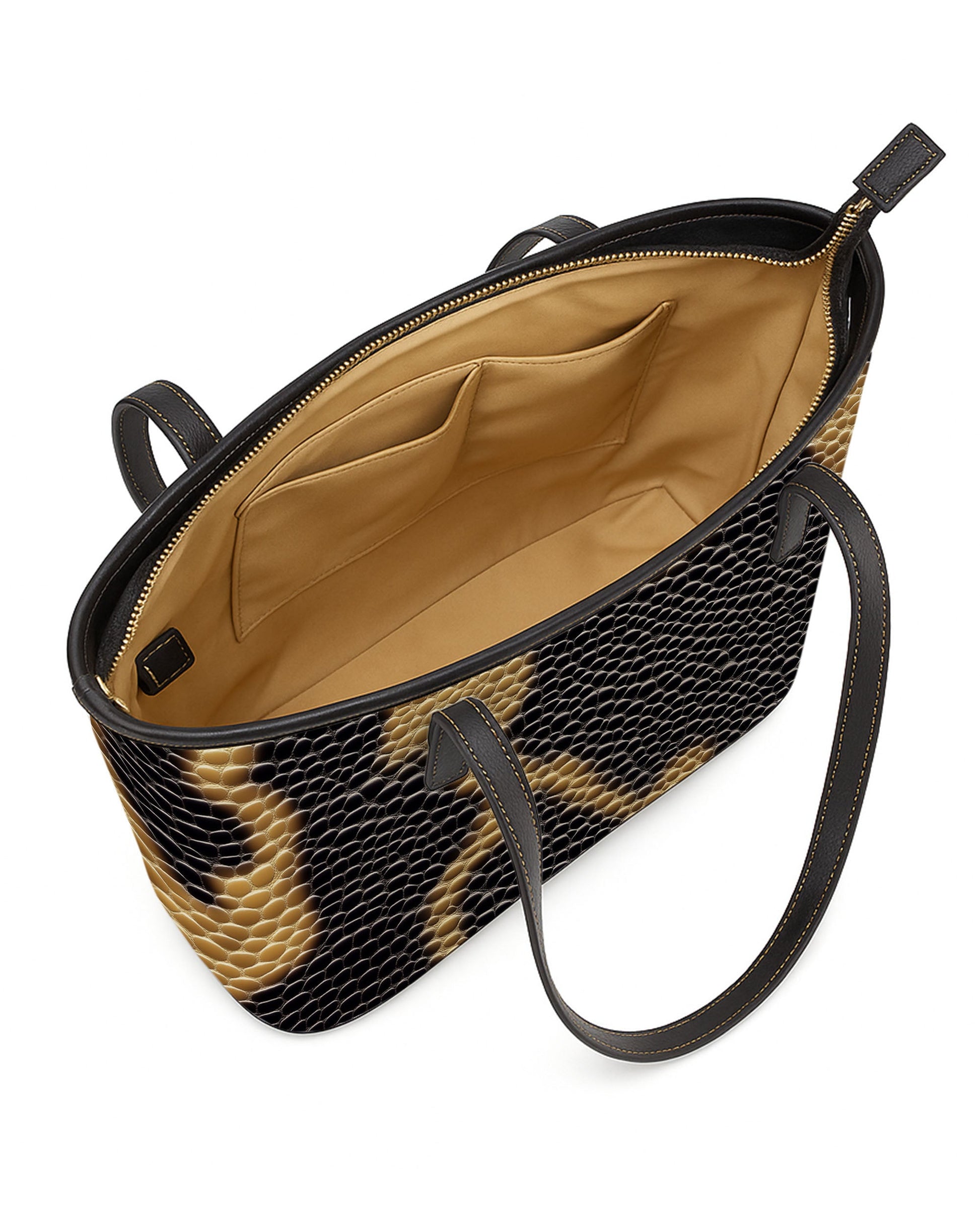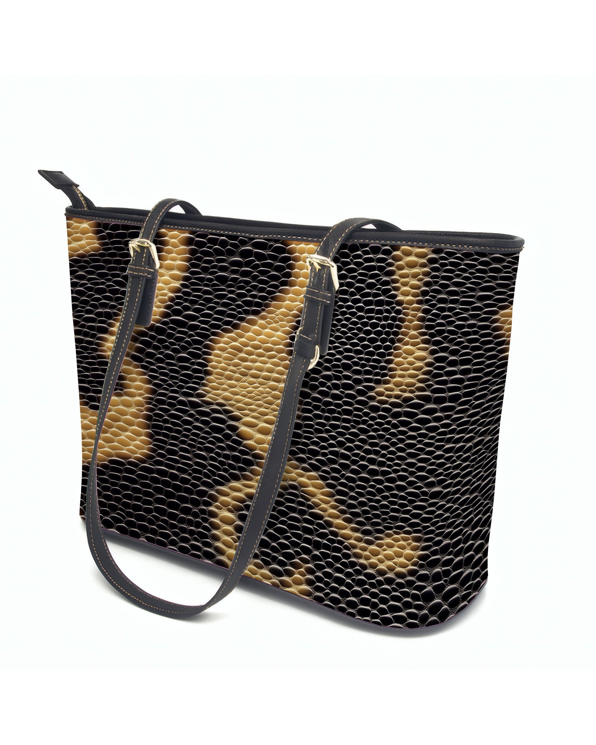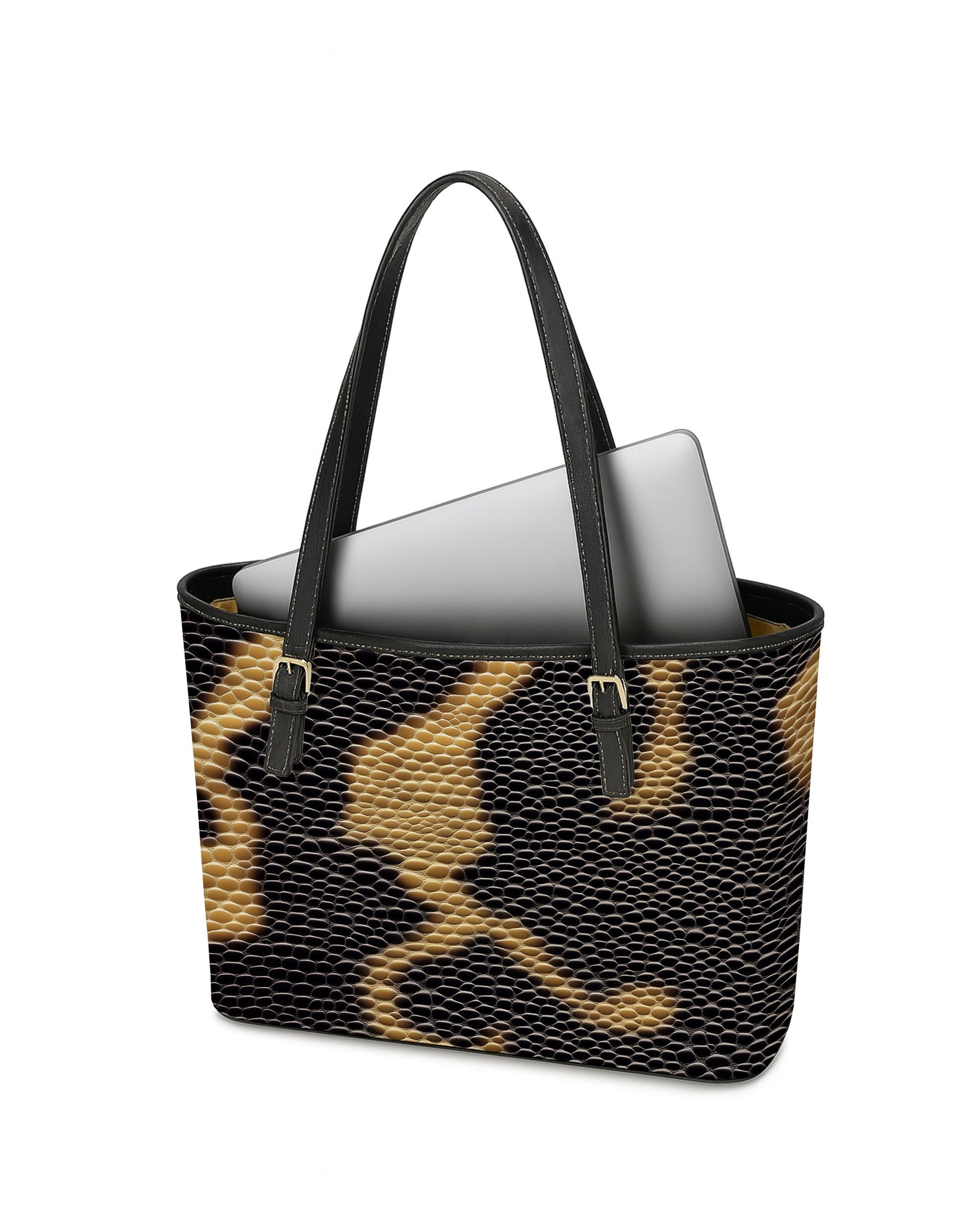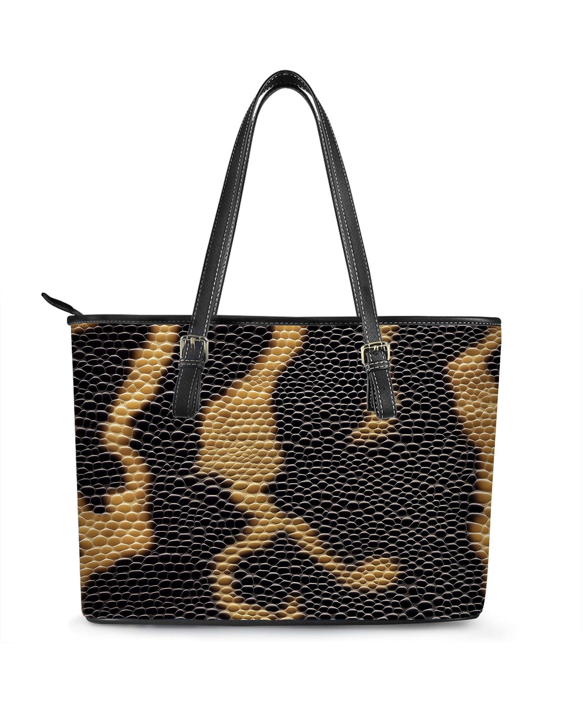 RE:LEATHER Leather Saddle Shoulder Bag with Top Handle Casual Tote Bag in Gold Snake Skin