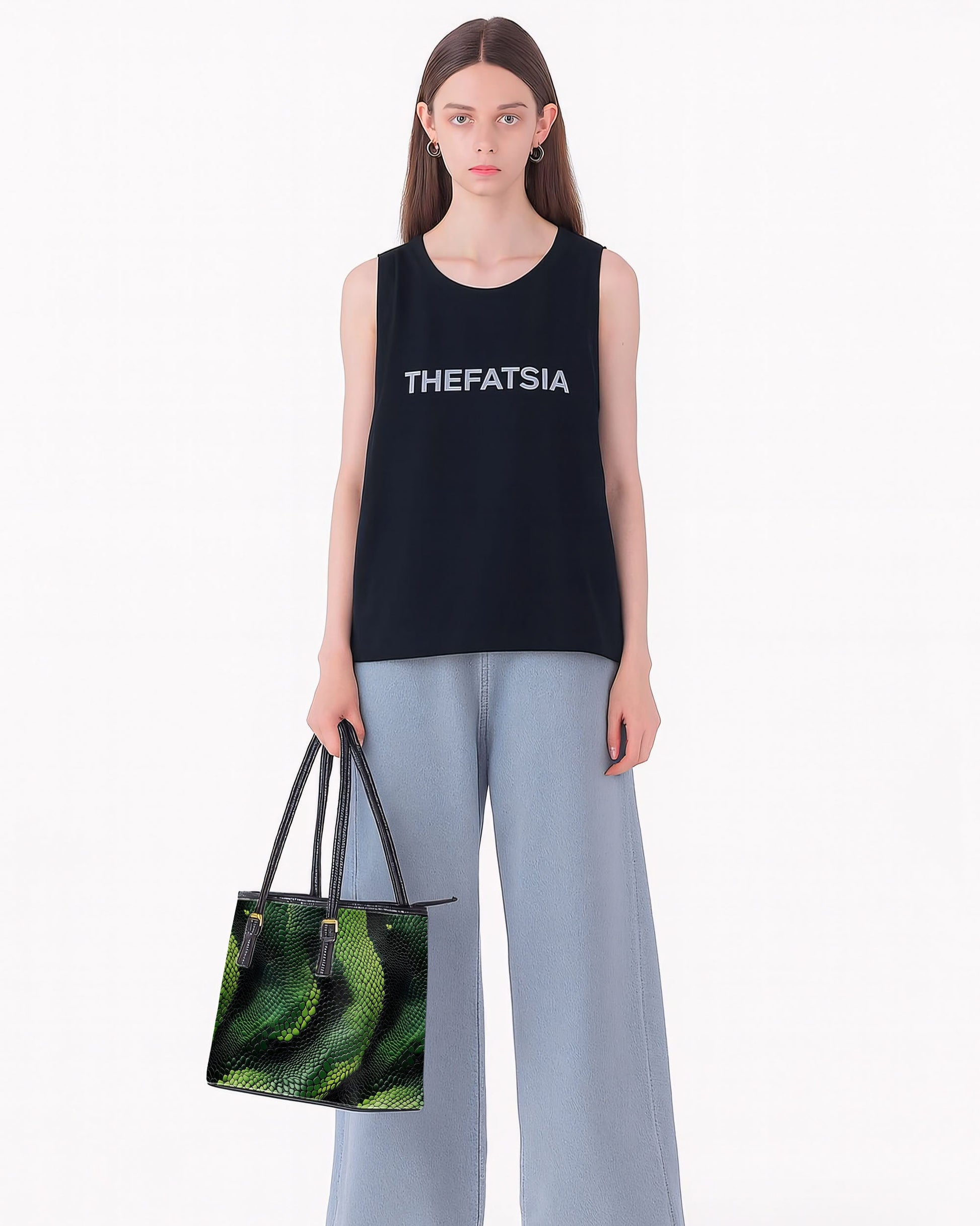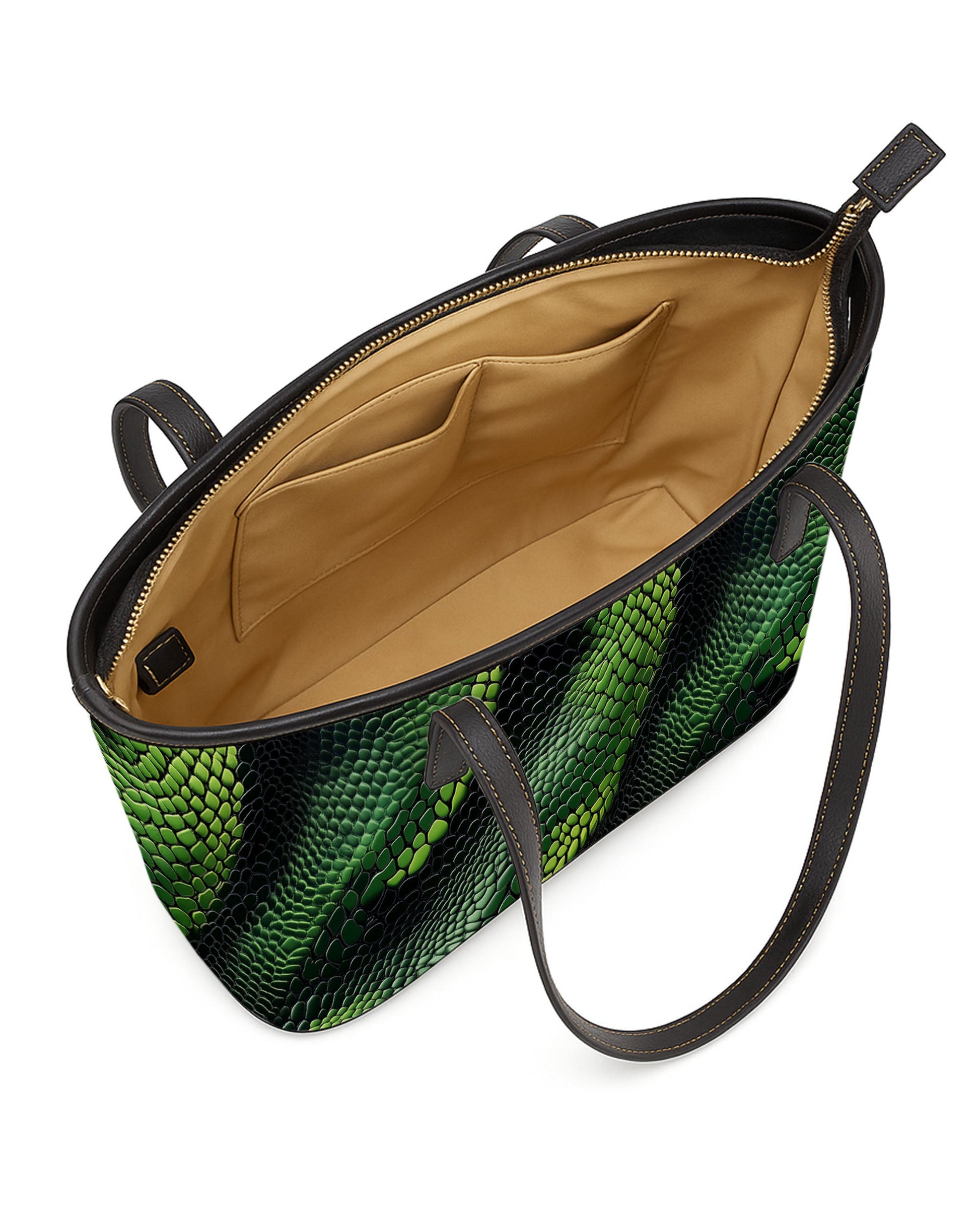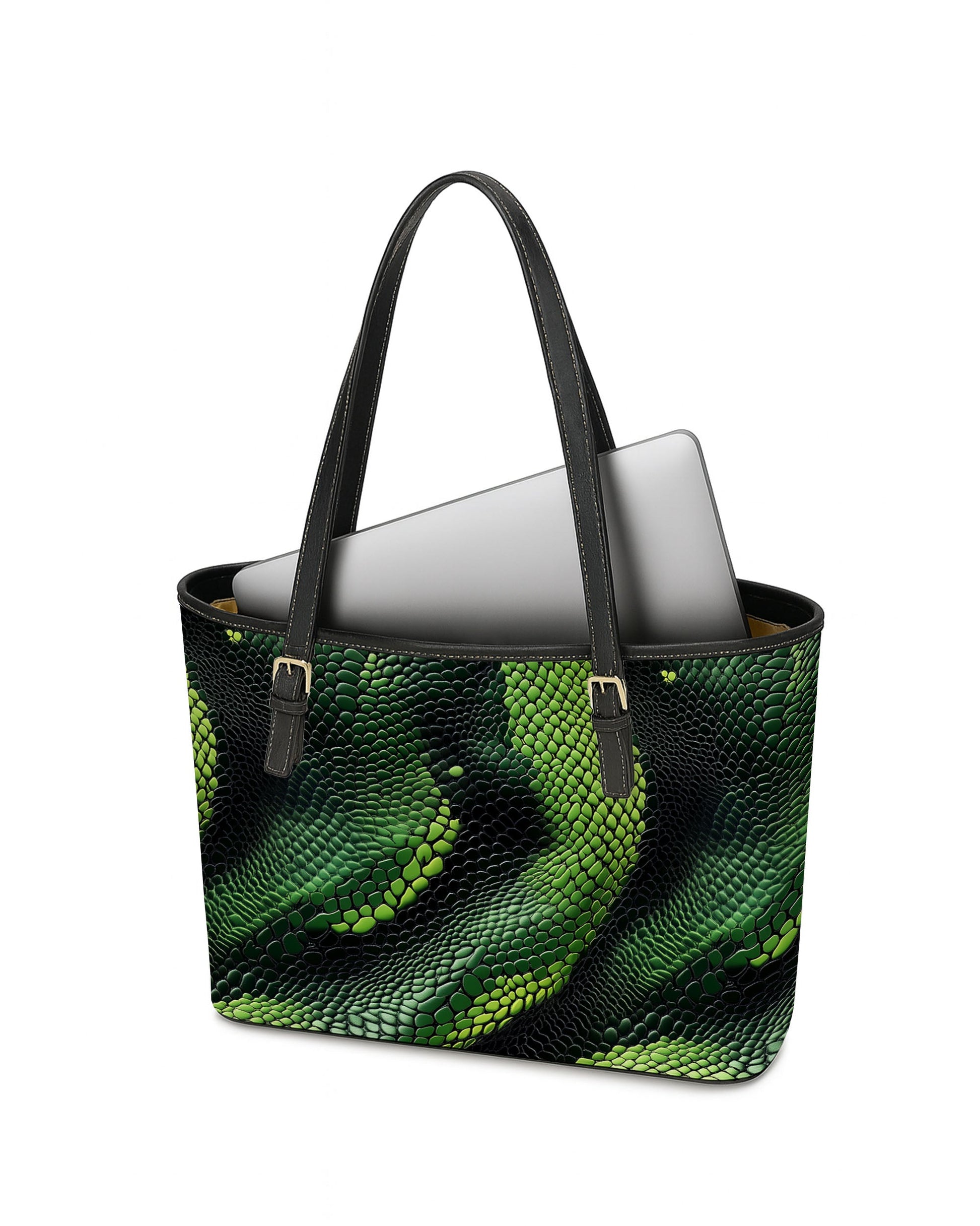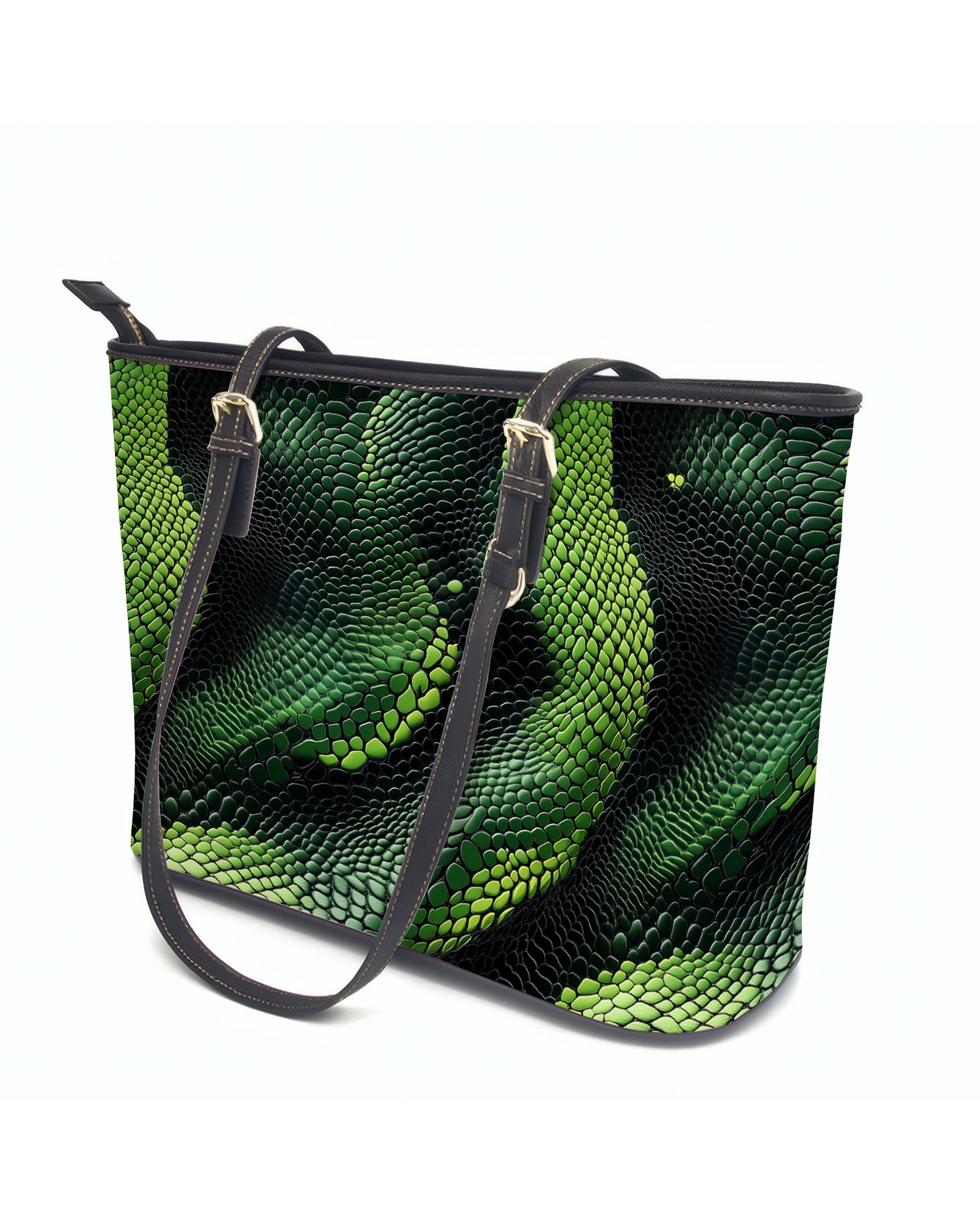 RE:LEATHER Leather Saddle Shoulder Bag with Top Handle Casual Tote Bag in Green and Black Snake Skin