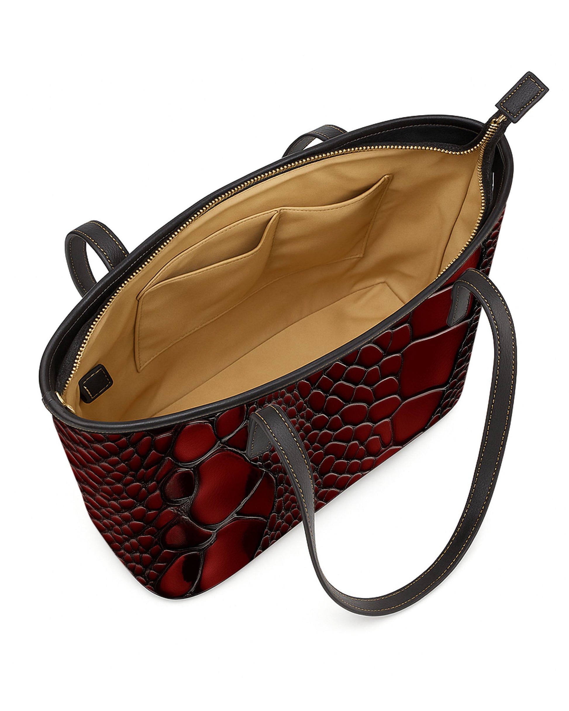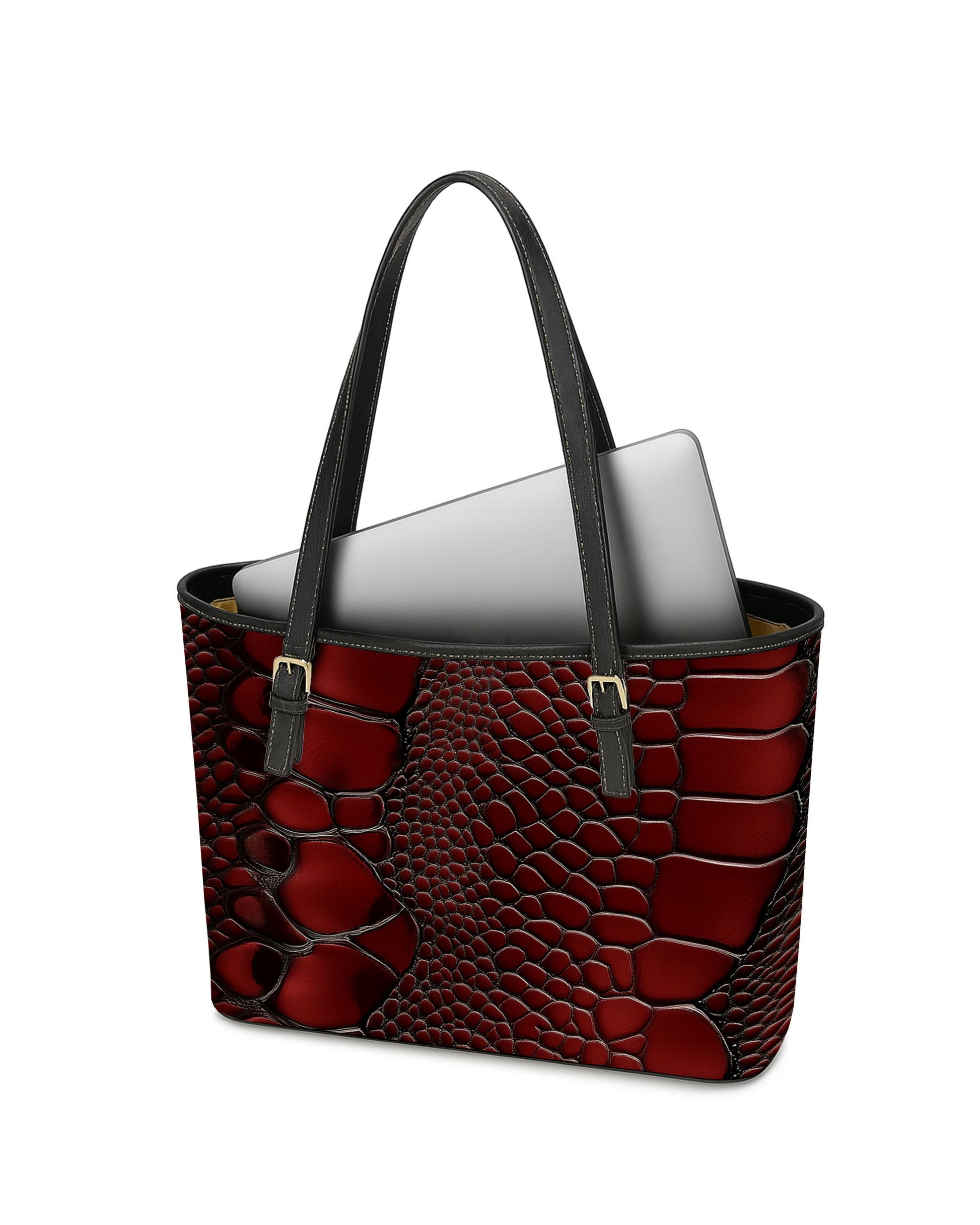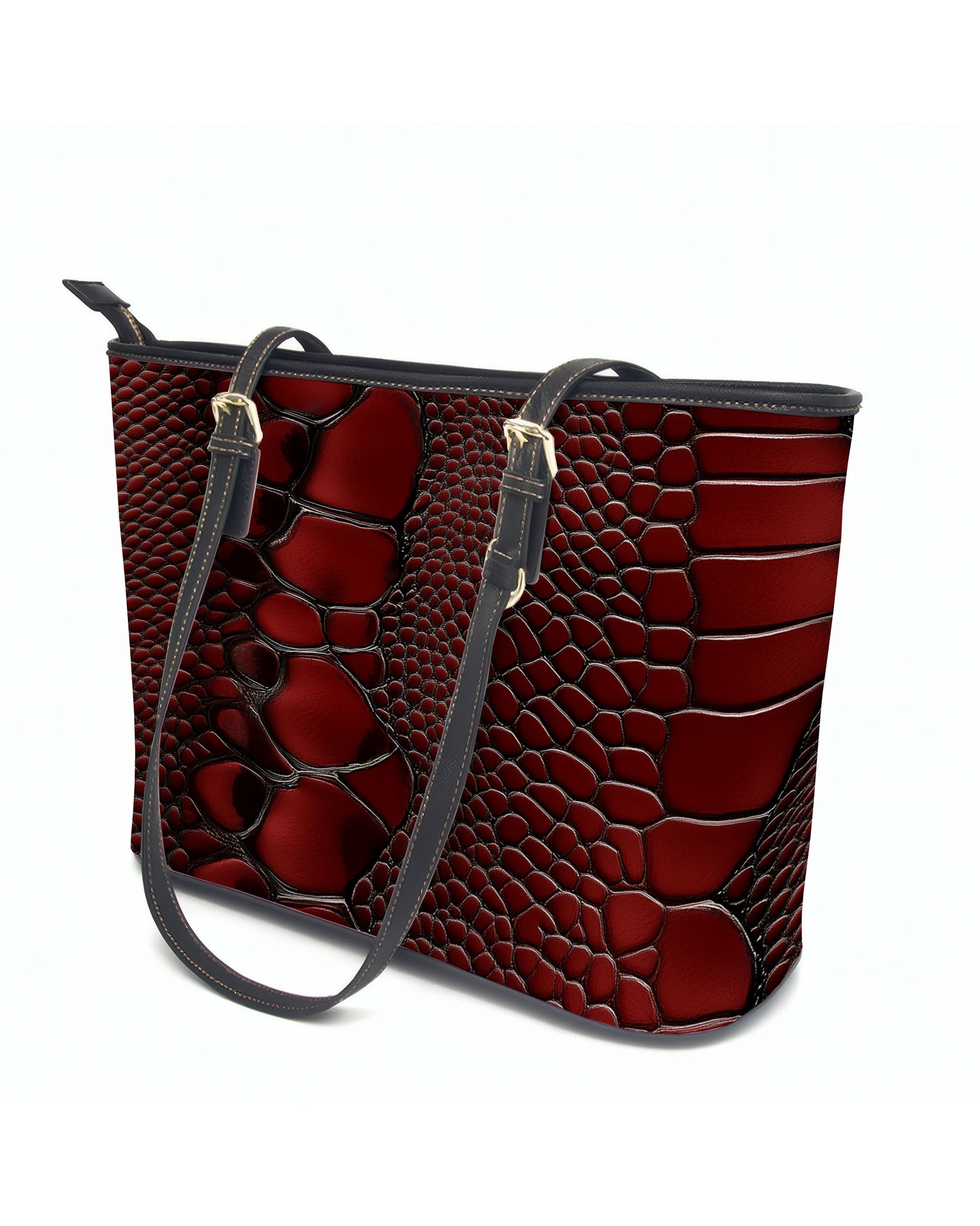 RE:LEATHER Leather Saddle Shoulder Bag with Top Handle Casual Tote Bag in Red Snake Skin