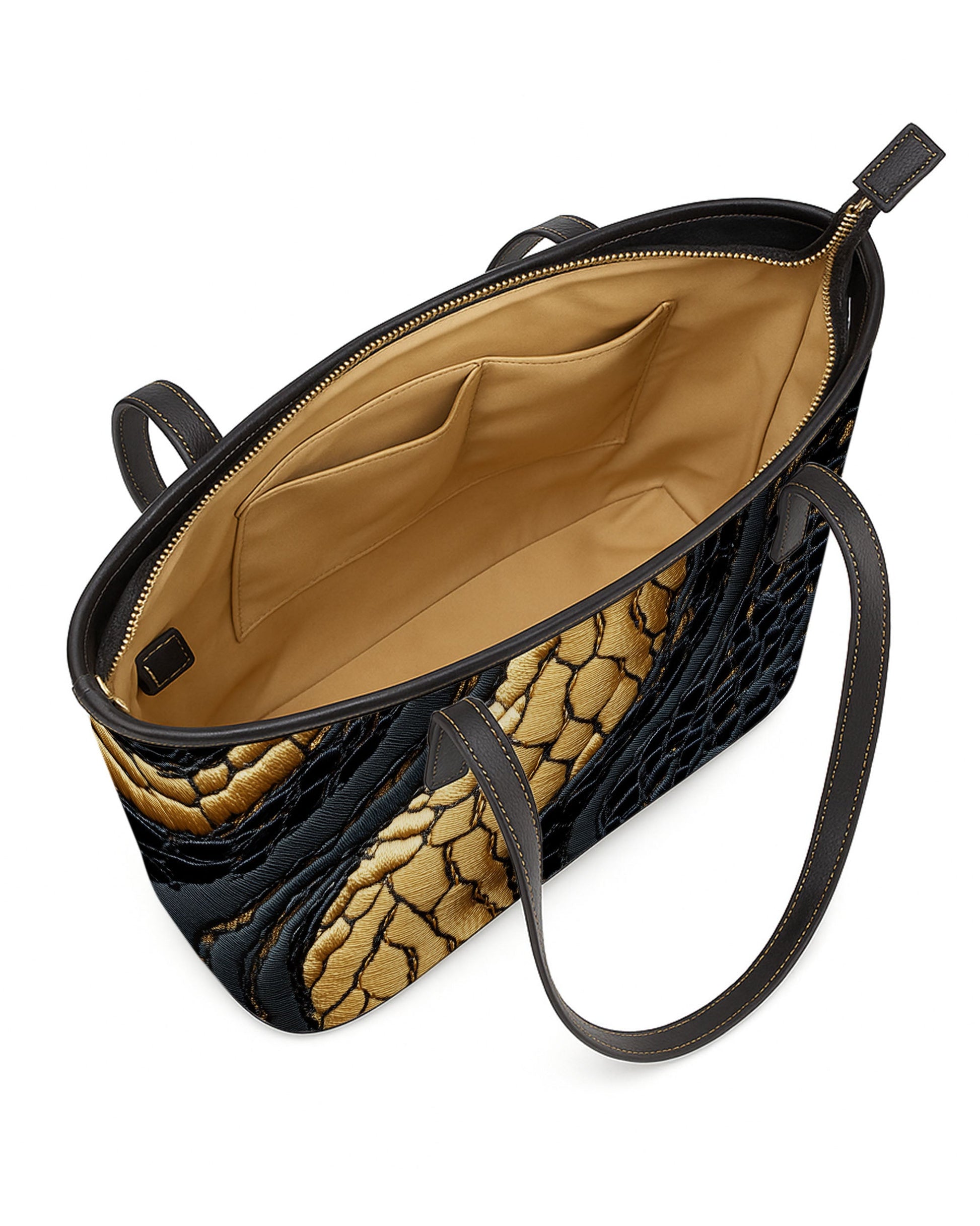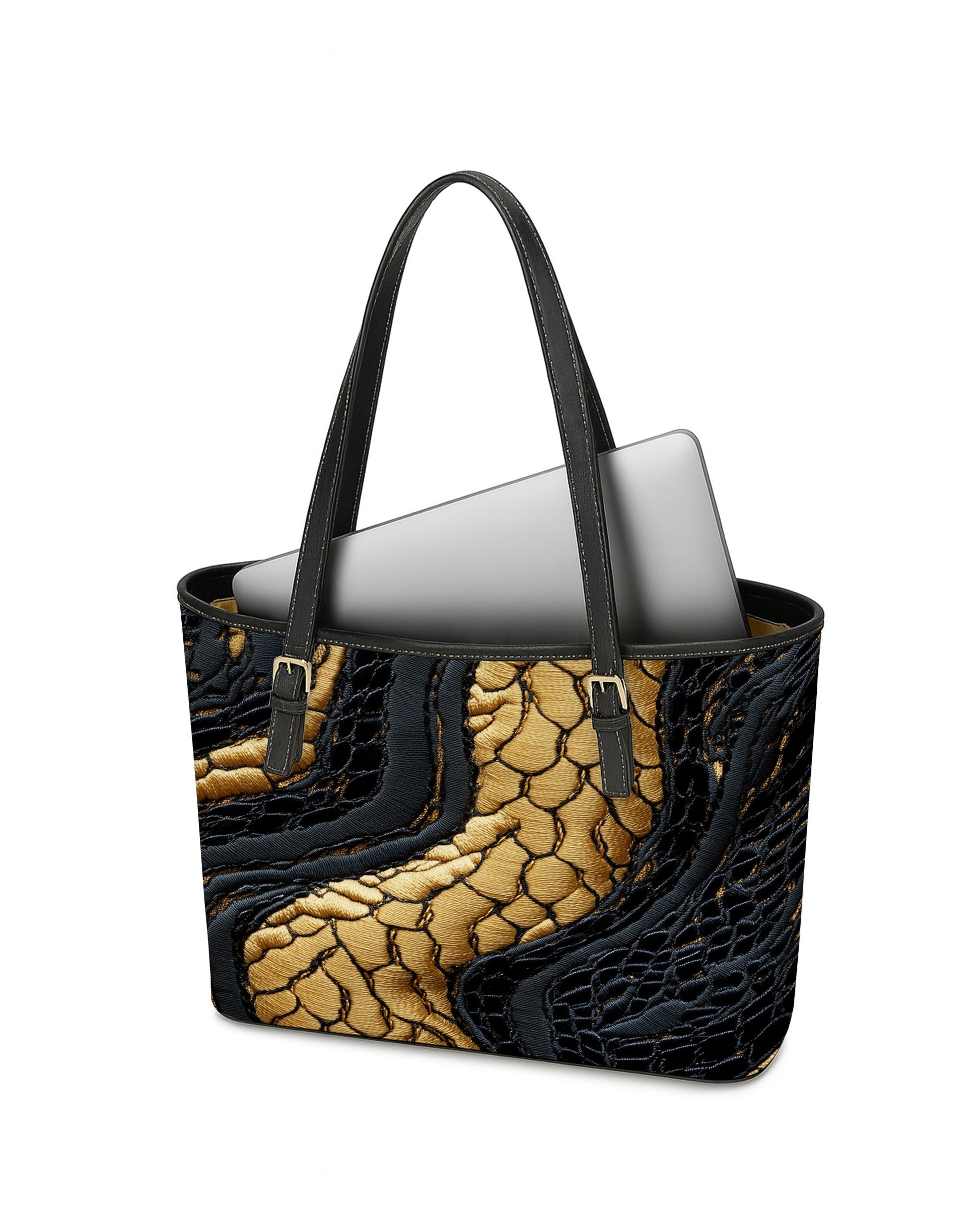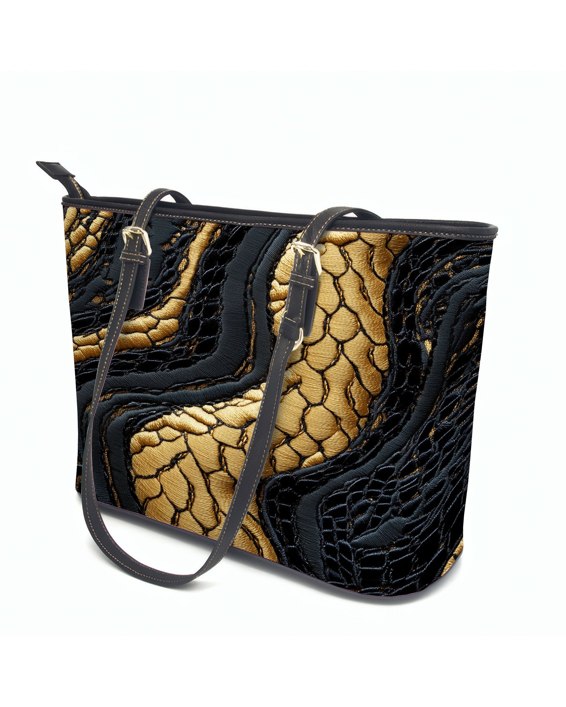 RE:LEATHER Leather Saddle Shoulder Bag with Top Handle Casual Tote Bag in Yellow and Black Snake Skin