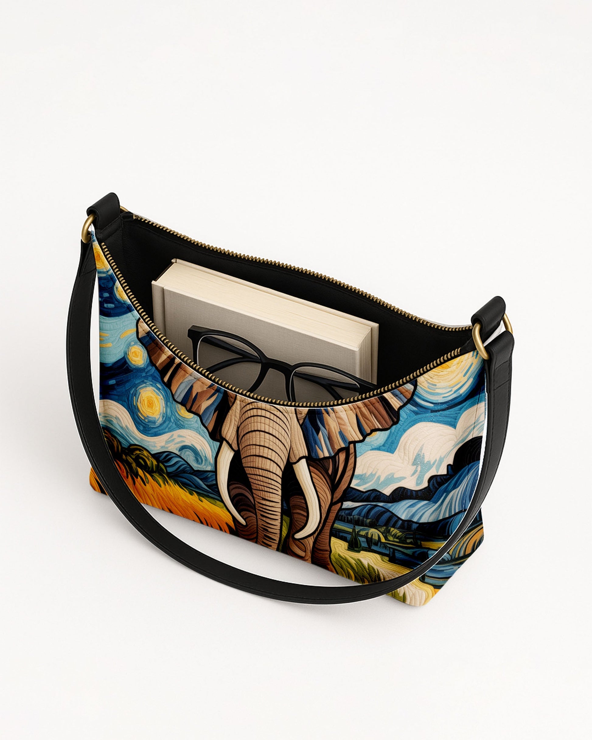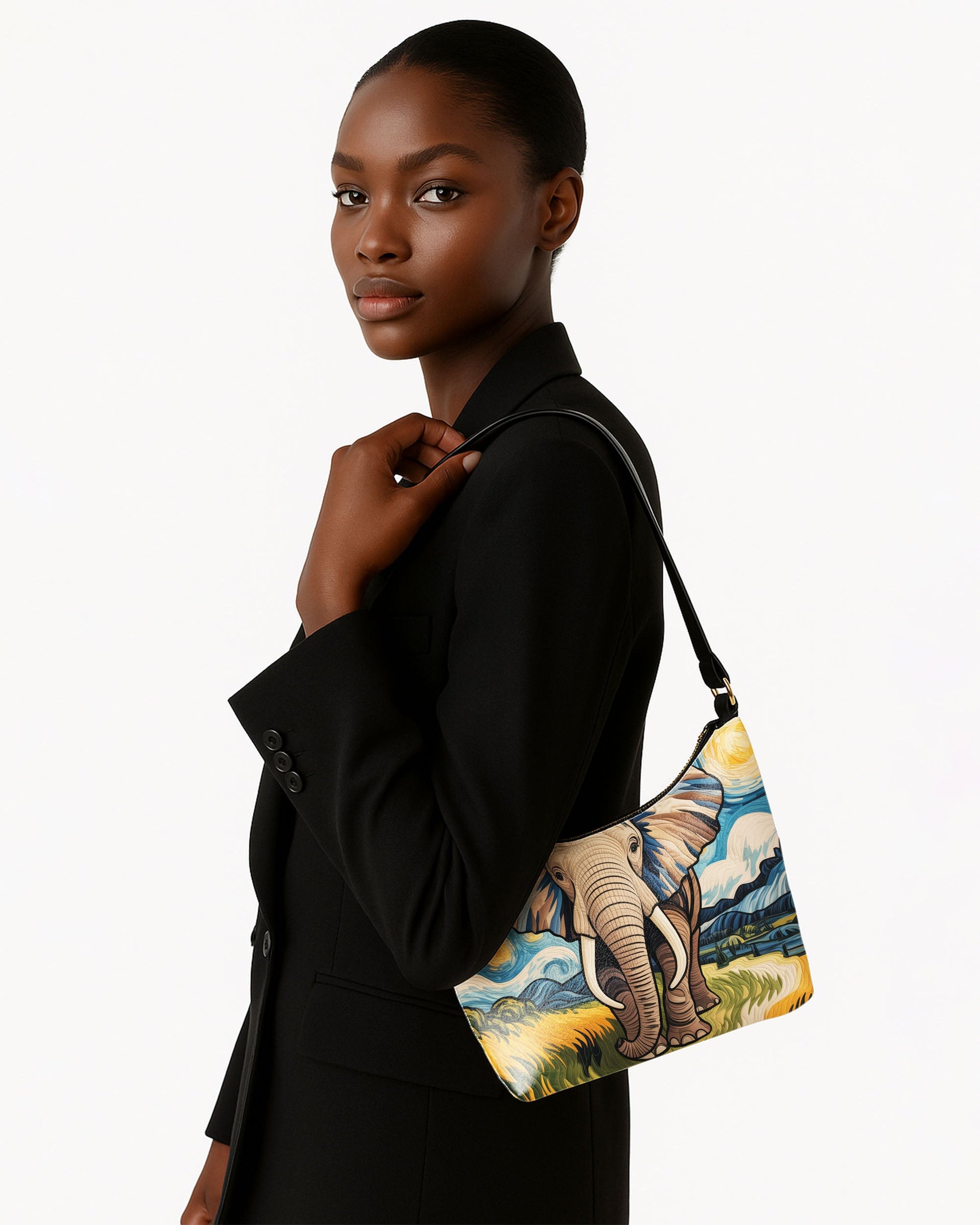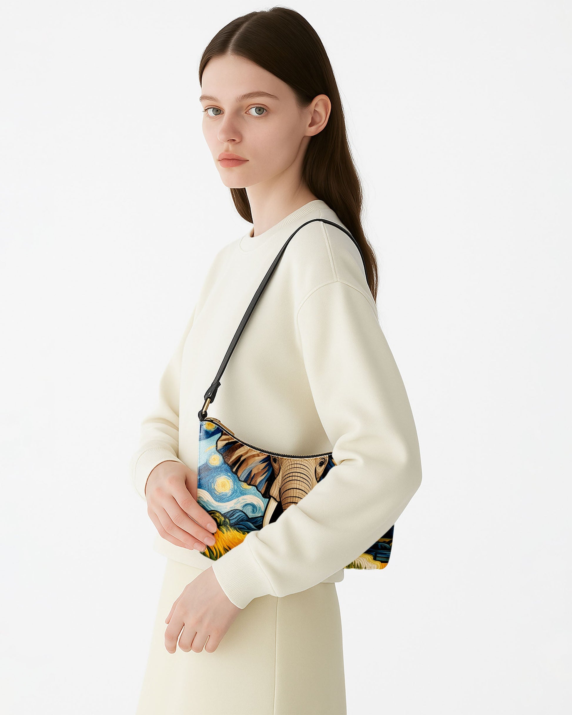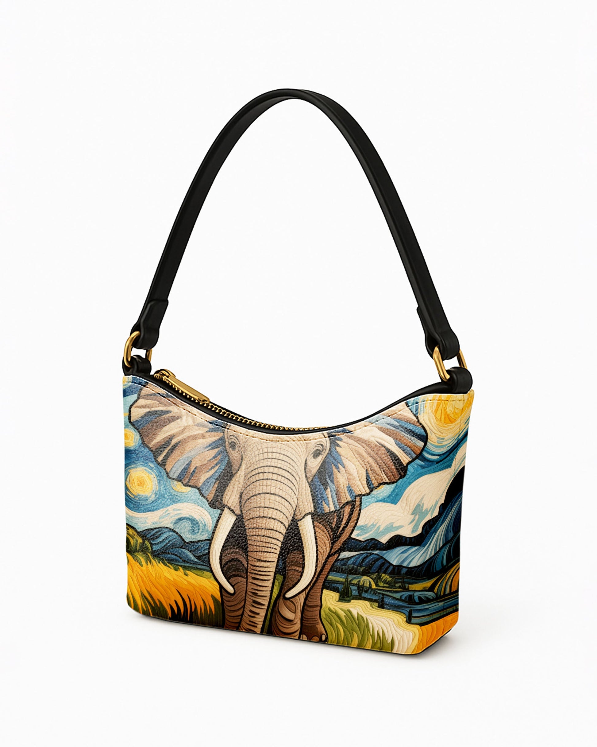 RE:LEATHER Leather Baguette Bag Underarm Shoulder Bag in Starry Night with Elephant 02