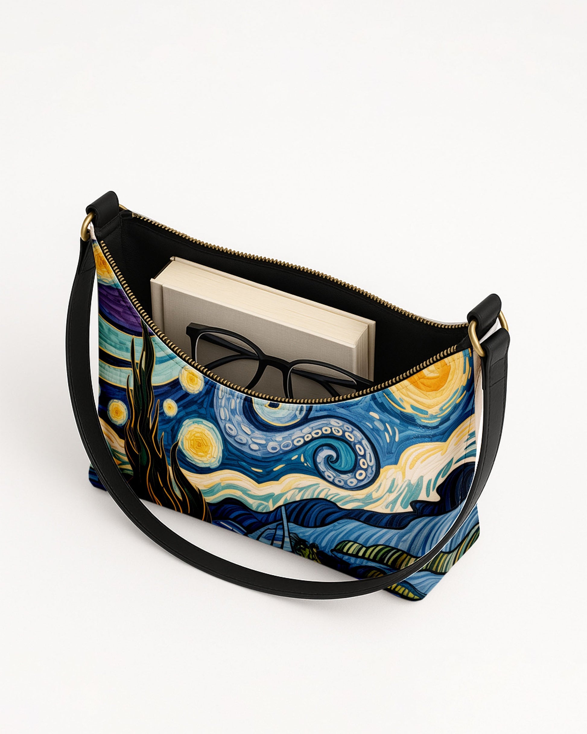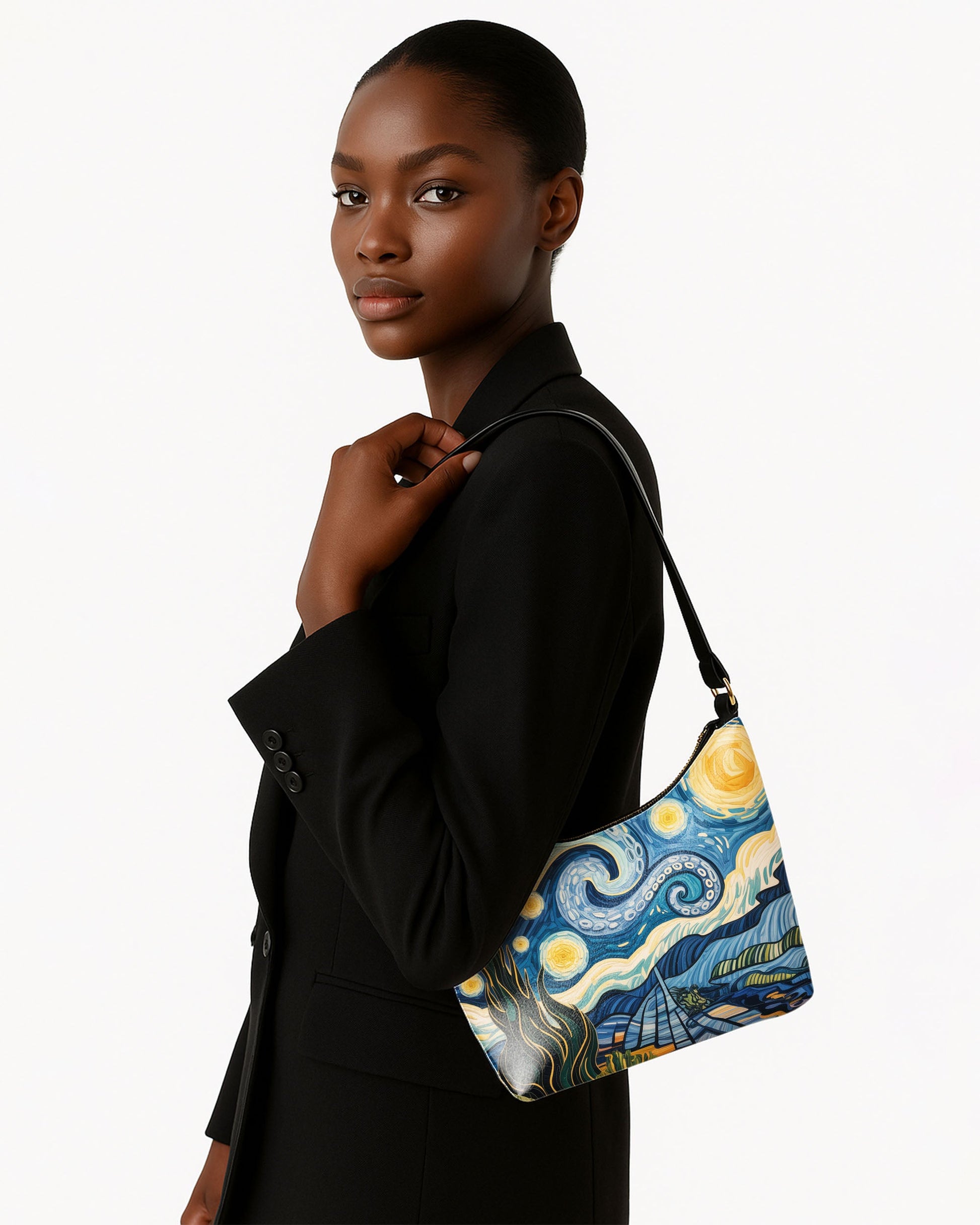 RE:LEATHER Leather Baguette Bag Underarm Shoulder Bag in Starry Night Octopus Tentacle 02