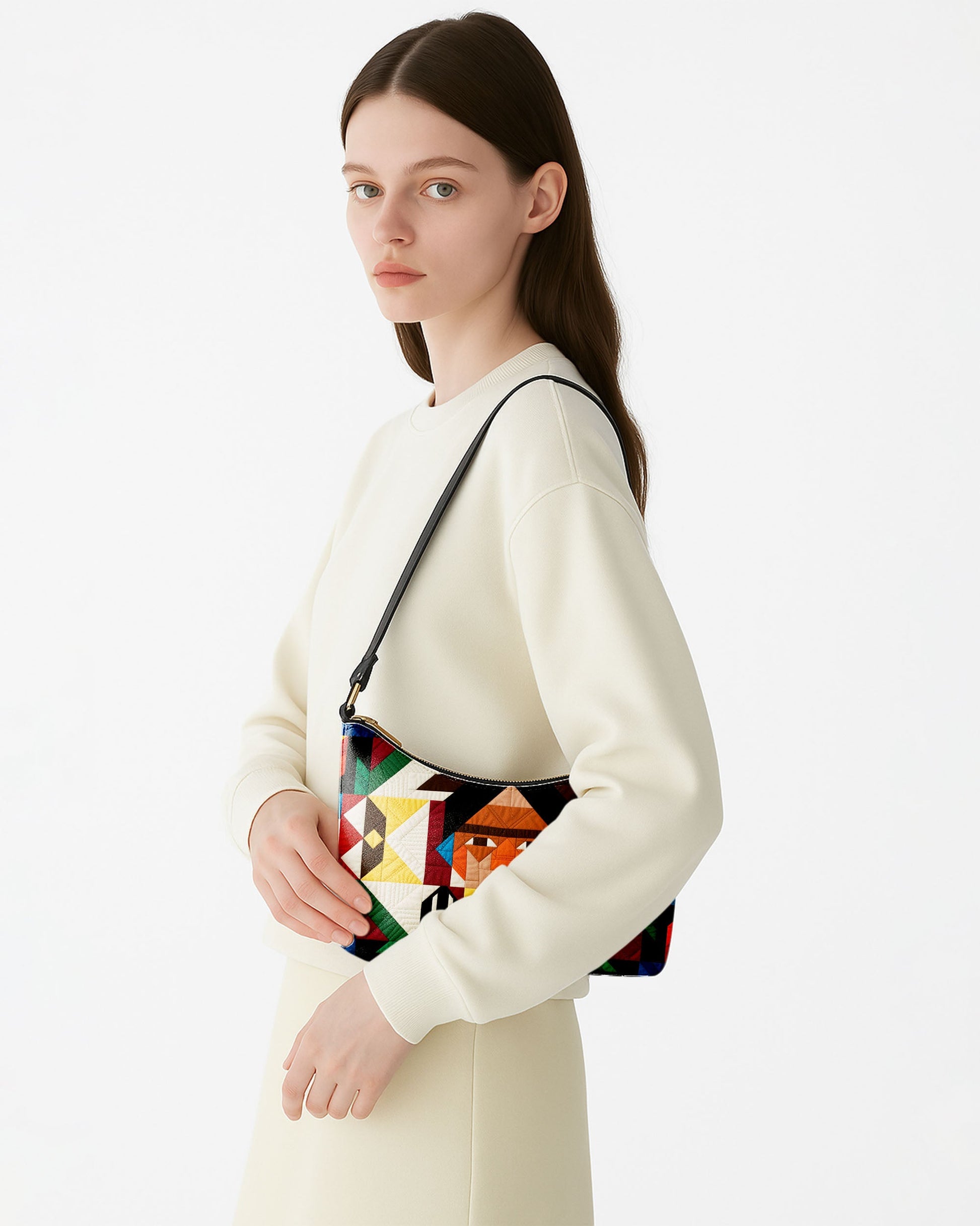RE:LEATHER Leather Baguette Bag Underarm Shoulder Bag in Native American Colorful 03