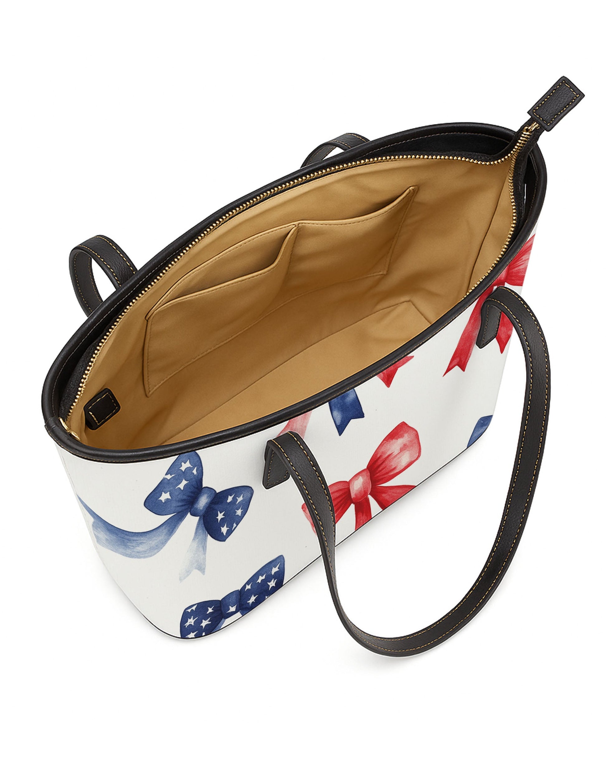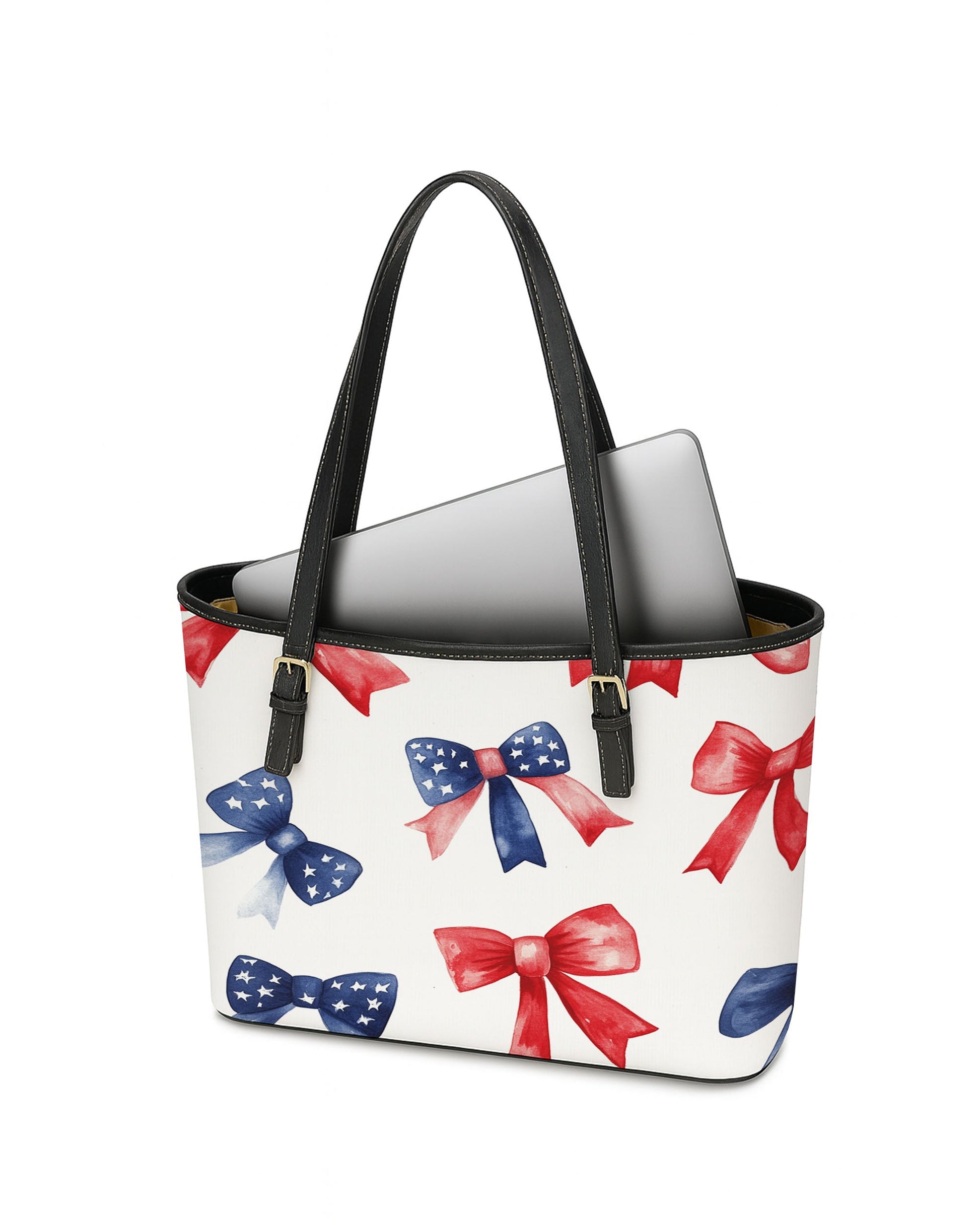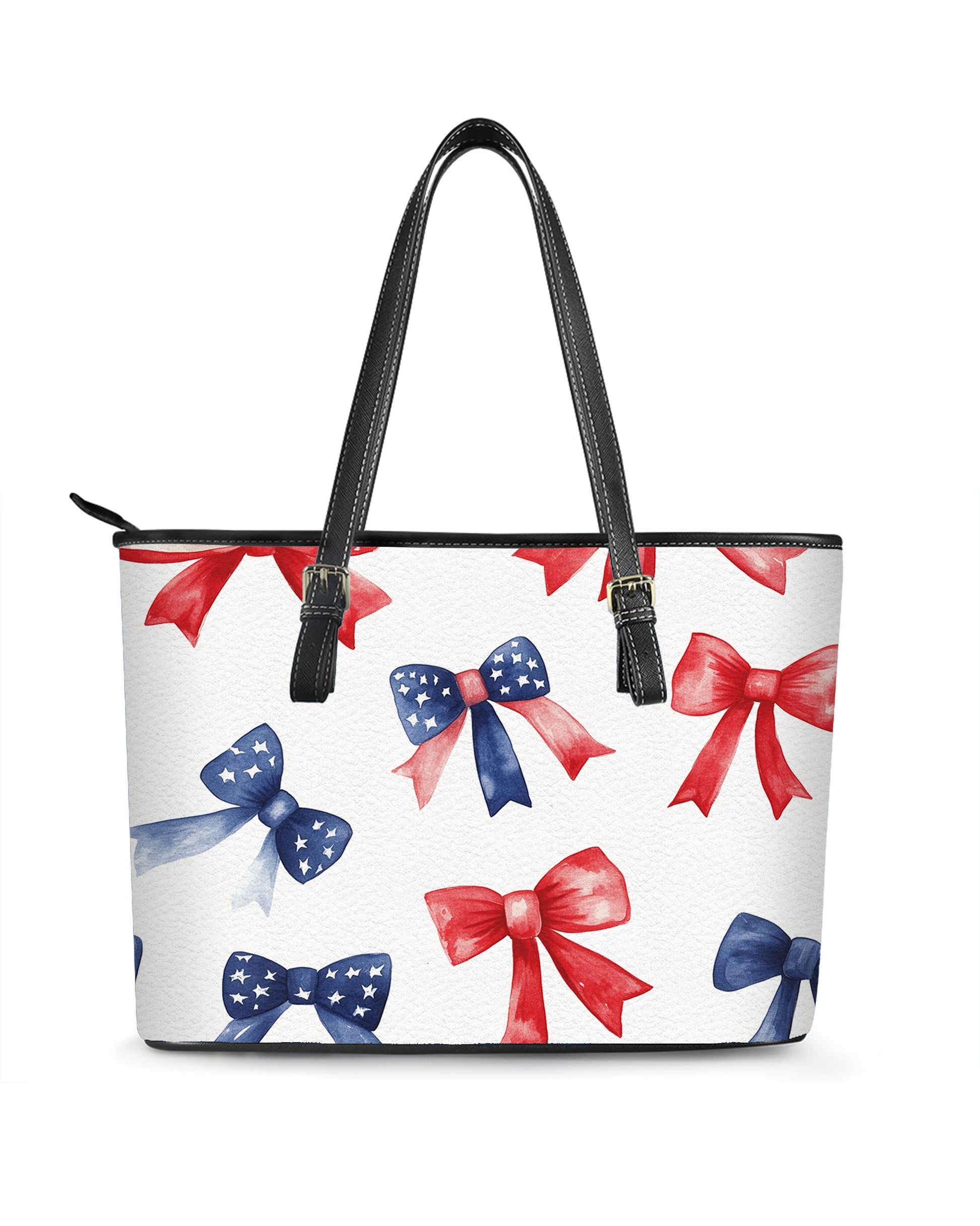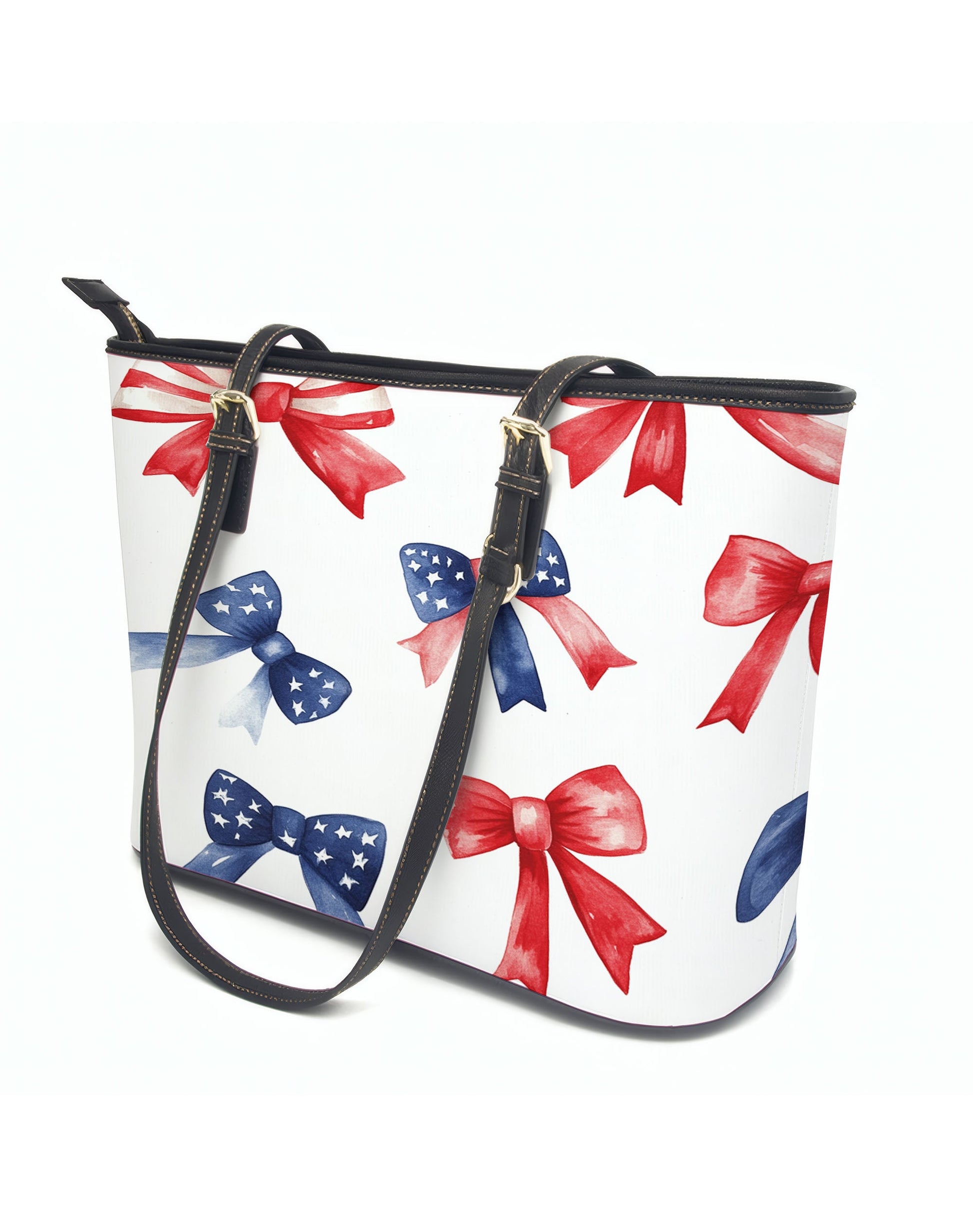 RE:LEATHER Leather Saddle Shoulder Bag with Top Handle Casual Tote Bag in Watercolor USA America Bow Ribborn