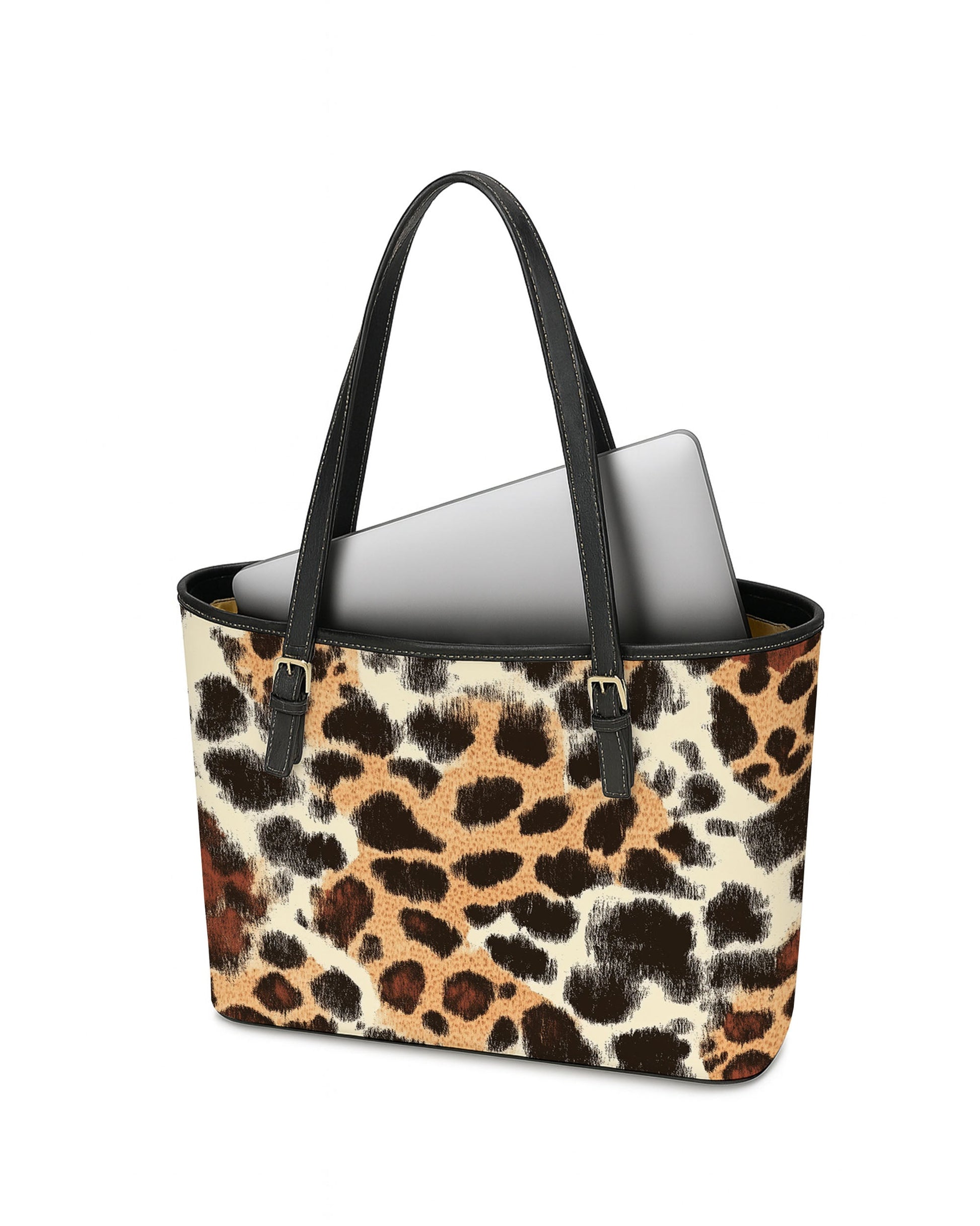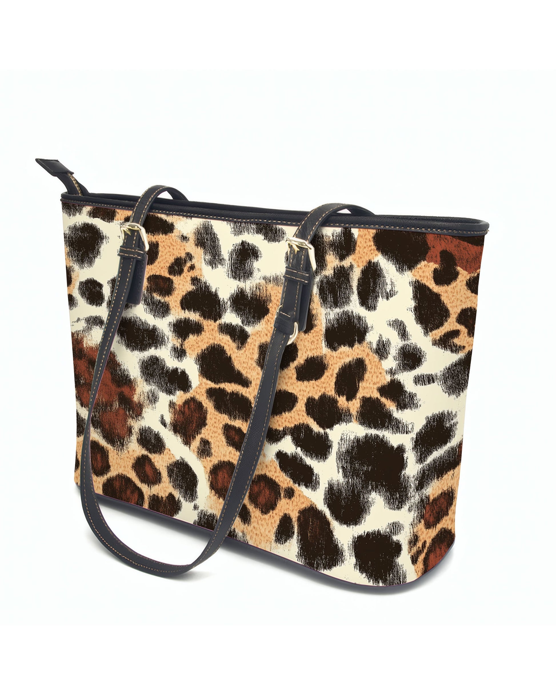 RE:LEATHER Leather Saddle Shoulder Bag with Top Handle Casual Tote Bag in Brown Wild Animal Skin