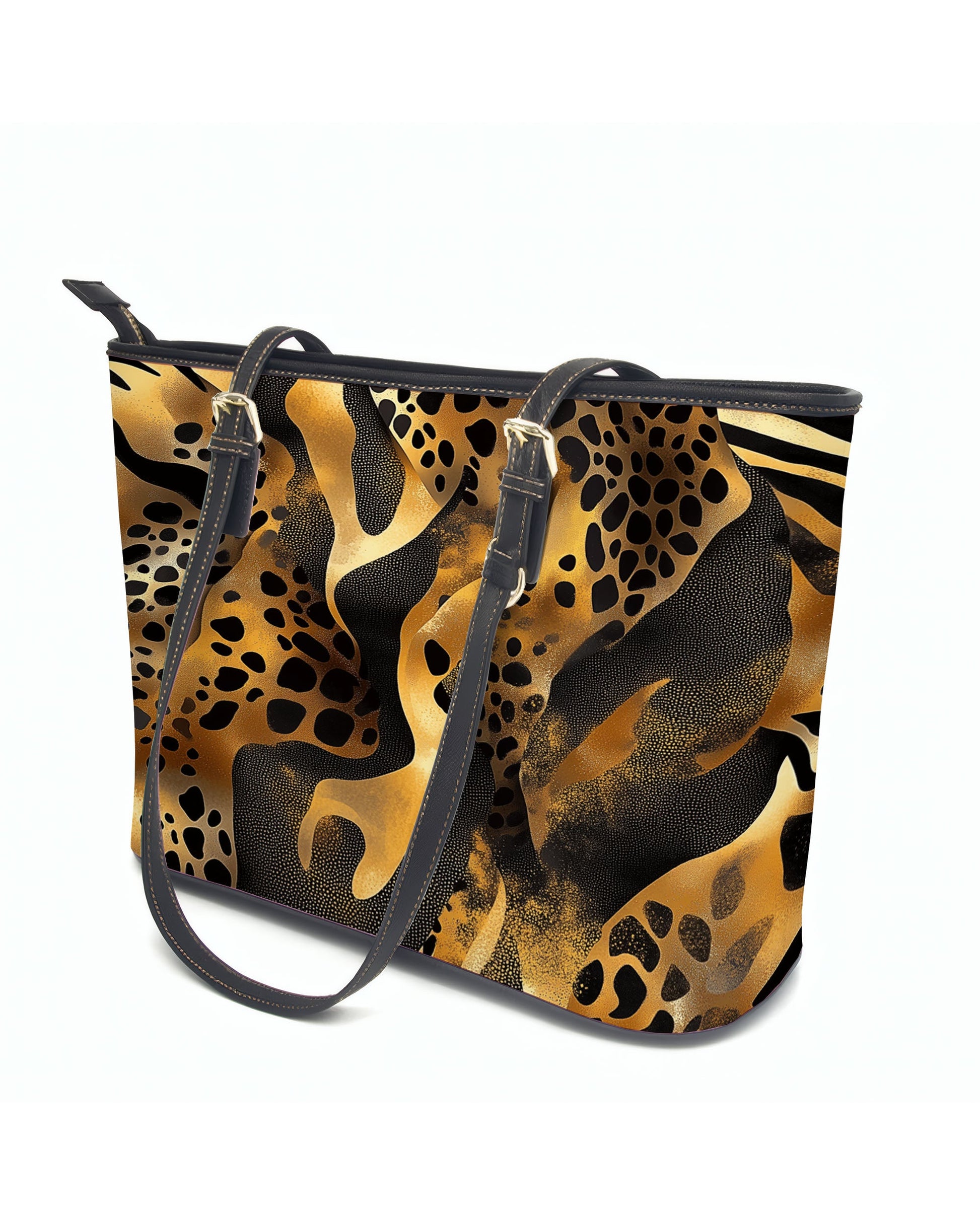 RE:LEATHER Leather Saddle Shoulder Bag with Top Handle Casual Tote Bag in Luxury Wild Animal Skin