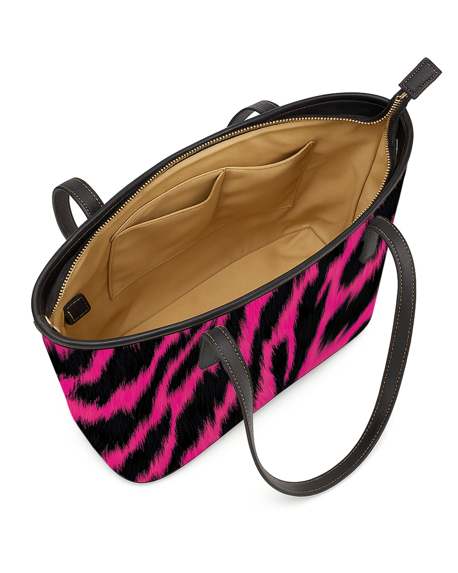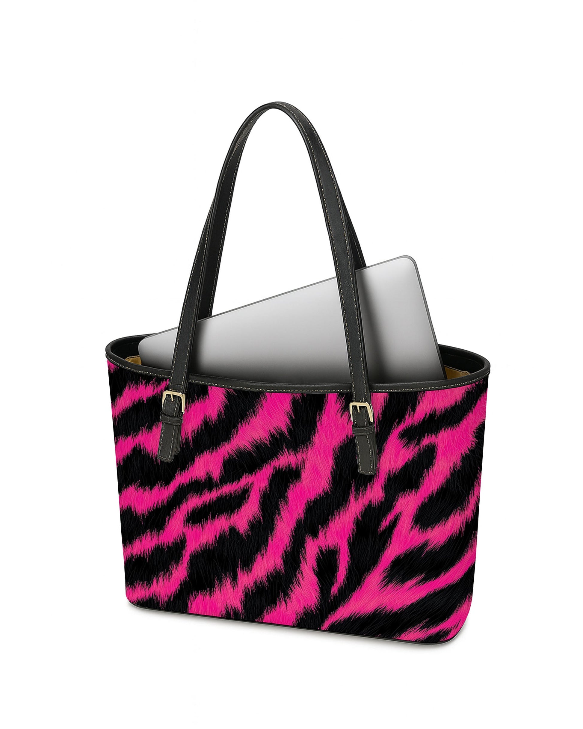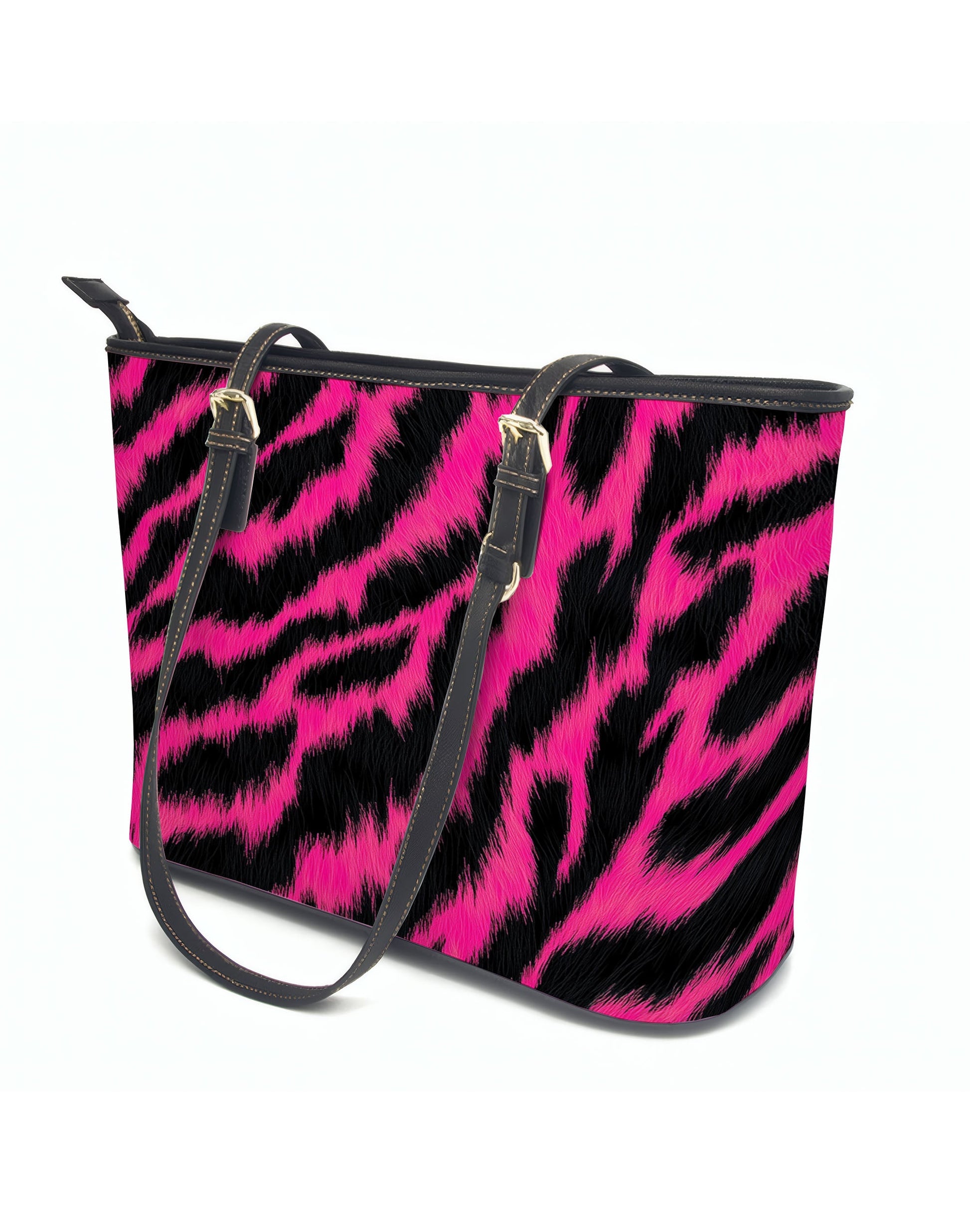 RE:LEATHER Leather Saddle Shoulder Bag with Top Handle Casual Tote Bag in Pink Zebra Stripes