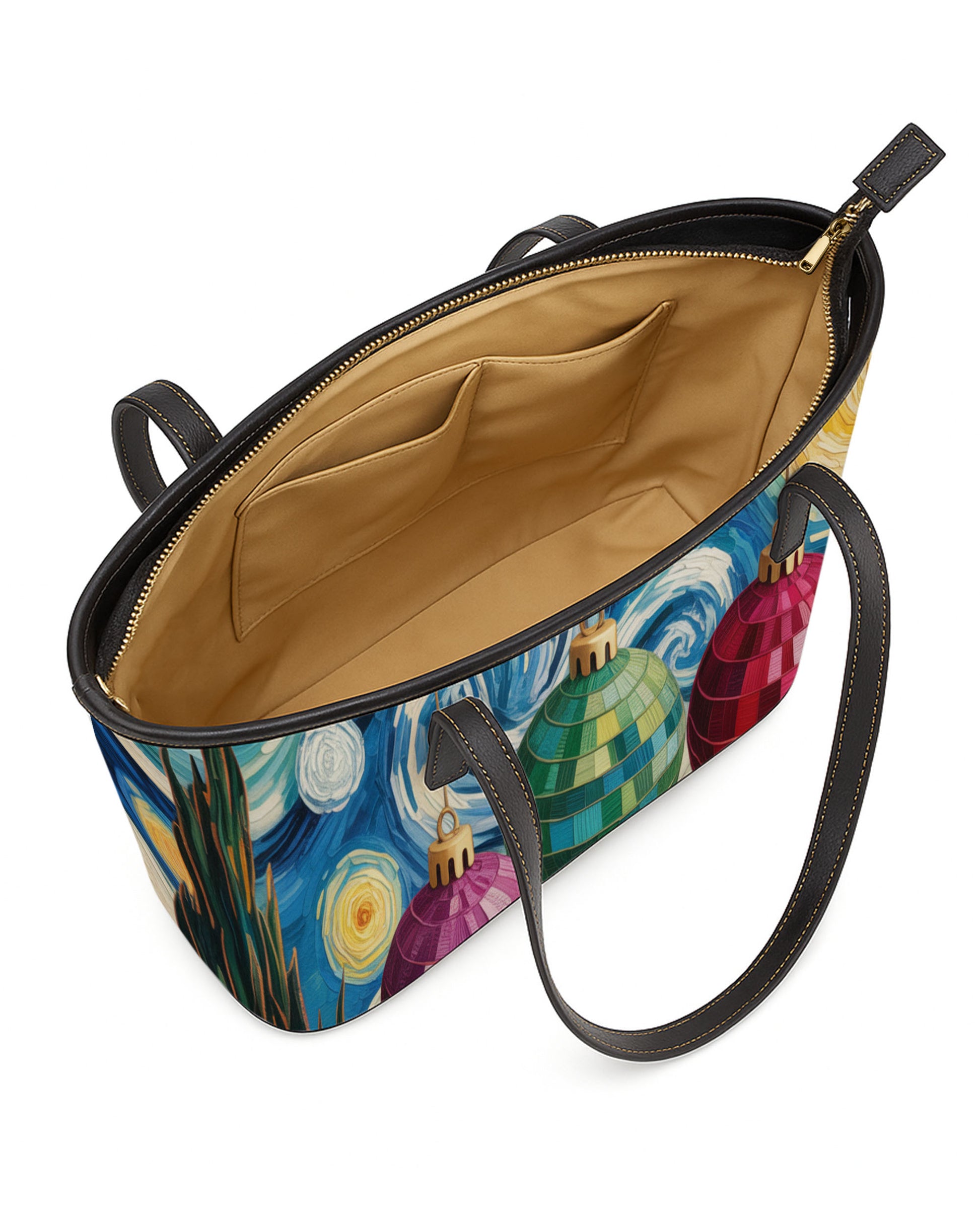 The bag is designed for daily convenience. A spacious, beige-lined interior features slip pockets and ample storage, ideal for organizing your essentials neatly. Secured by a smooth zipper closure, and complemented by adjustable black leather handles, it combines personalized flair with functional design—perfect for everyday outings, shopping trips, or work essentials.