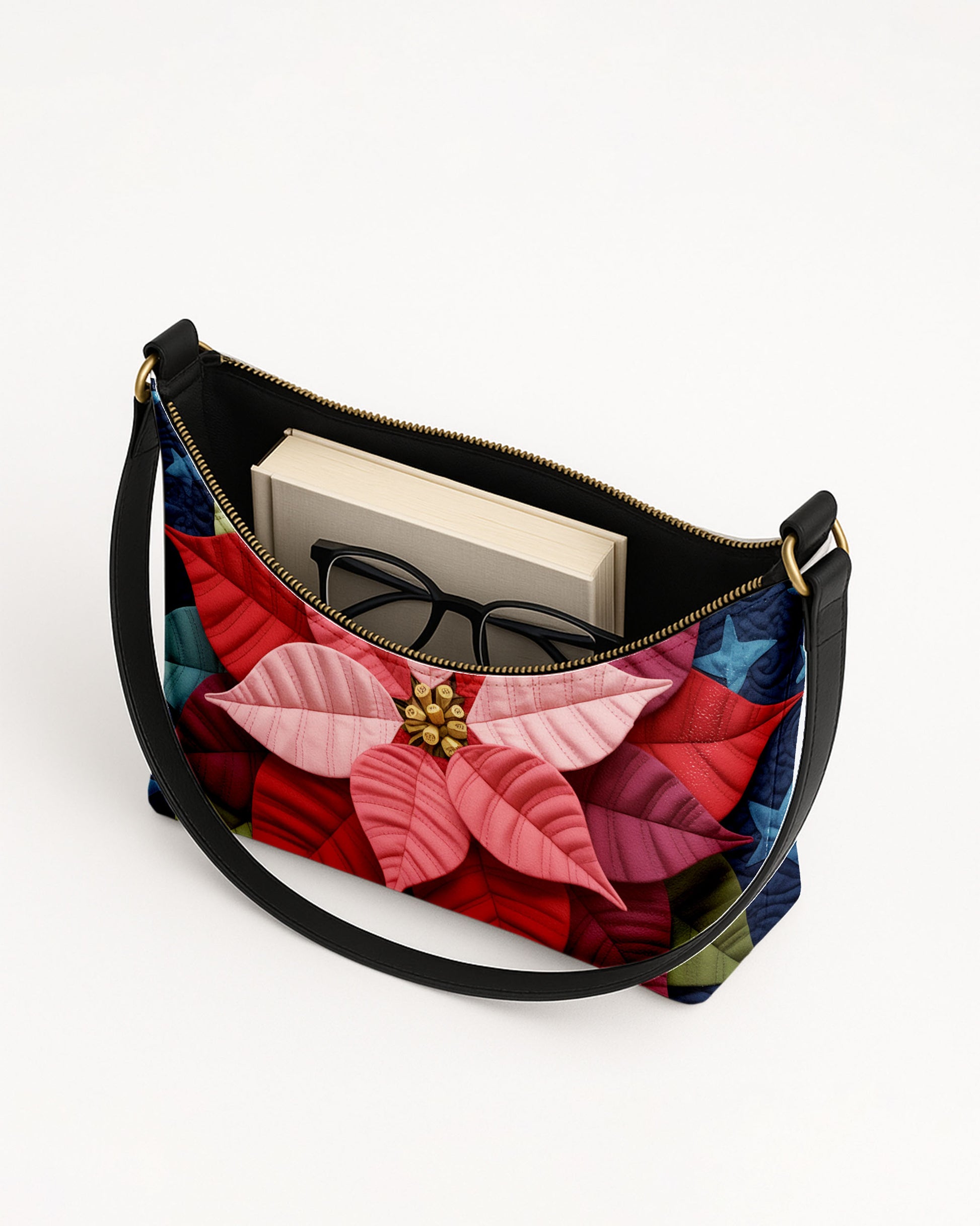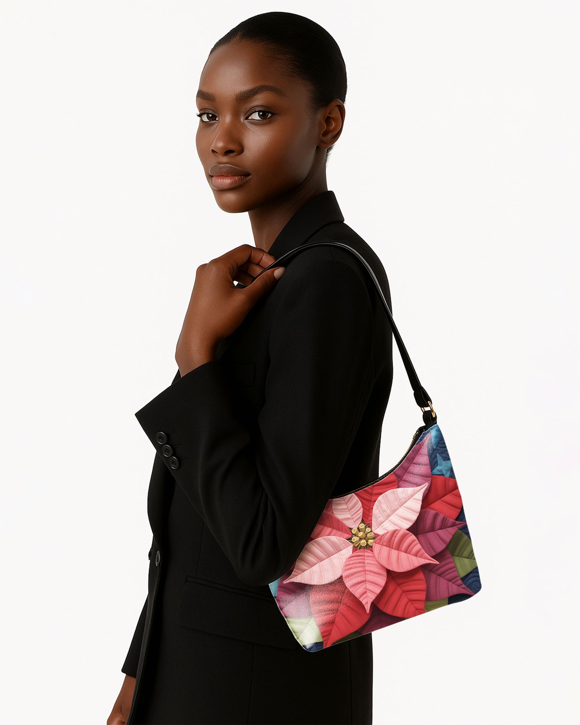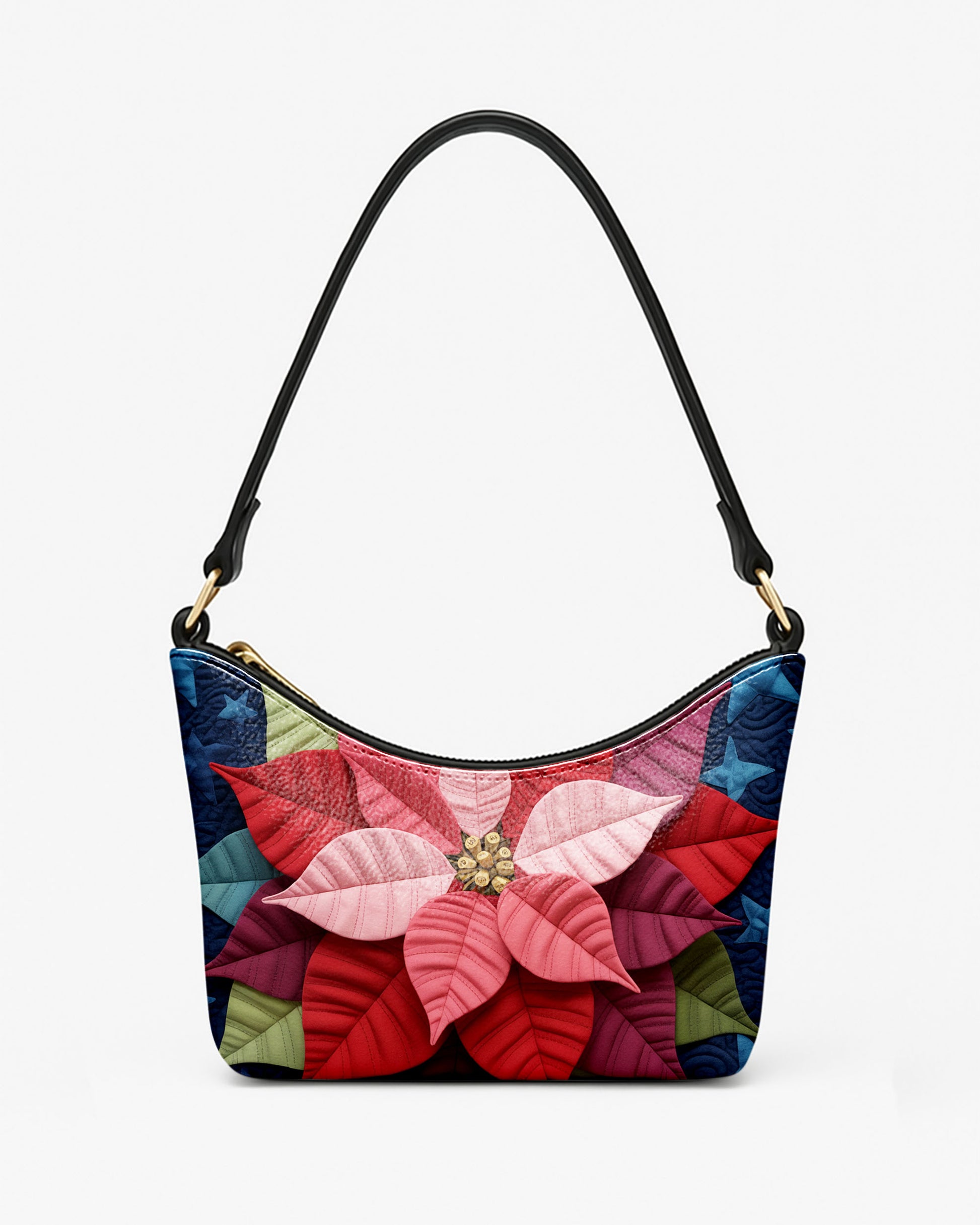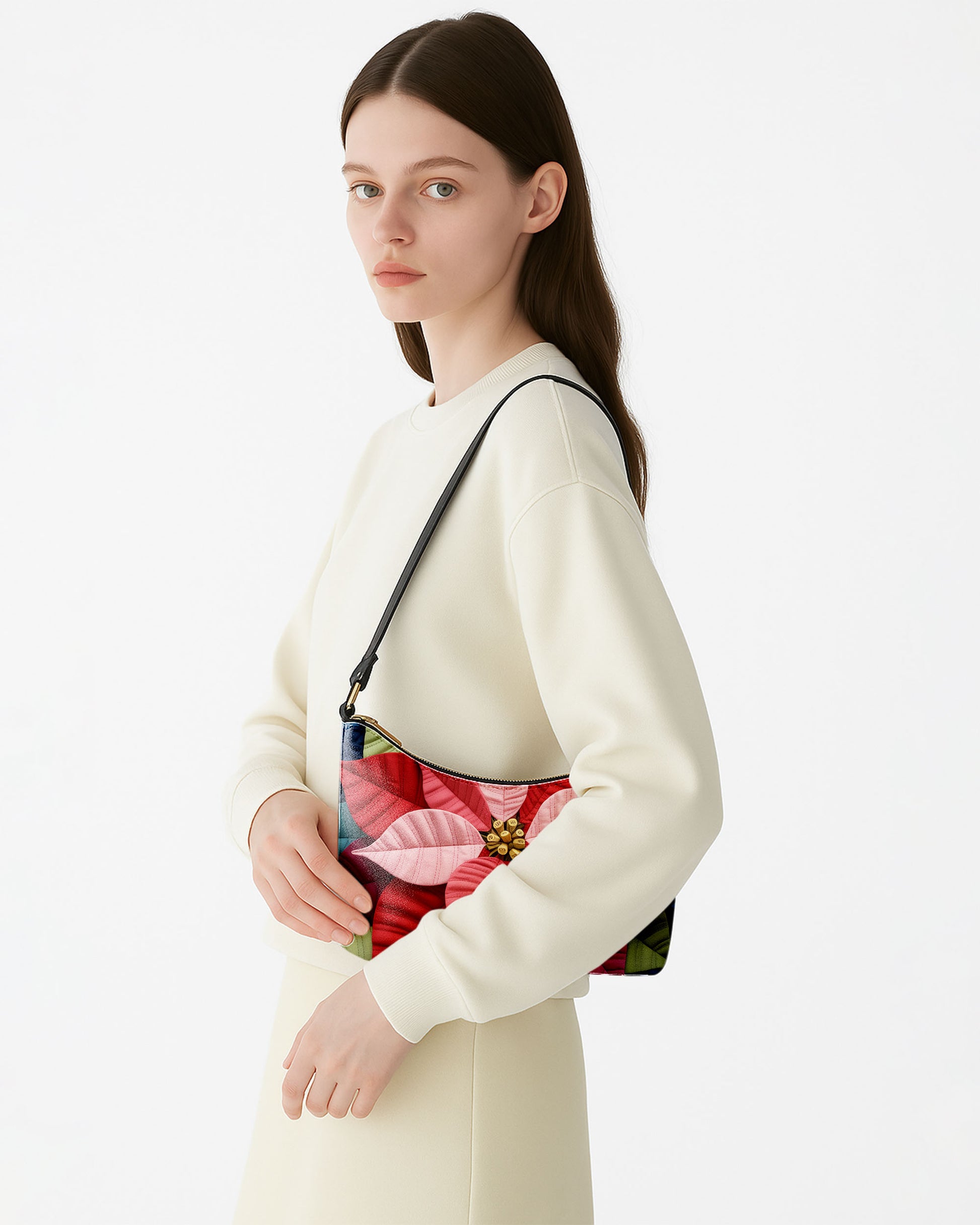 Poinsettia Flower Leather Baguette Bag Underarm Shoulder Bag FSBU0119