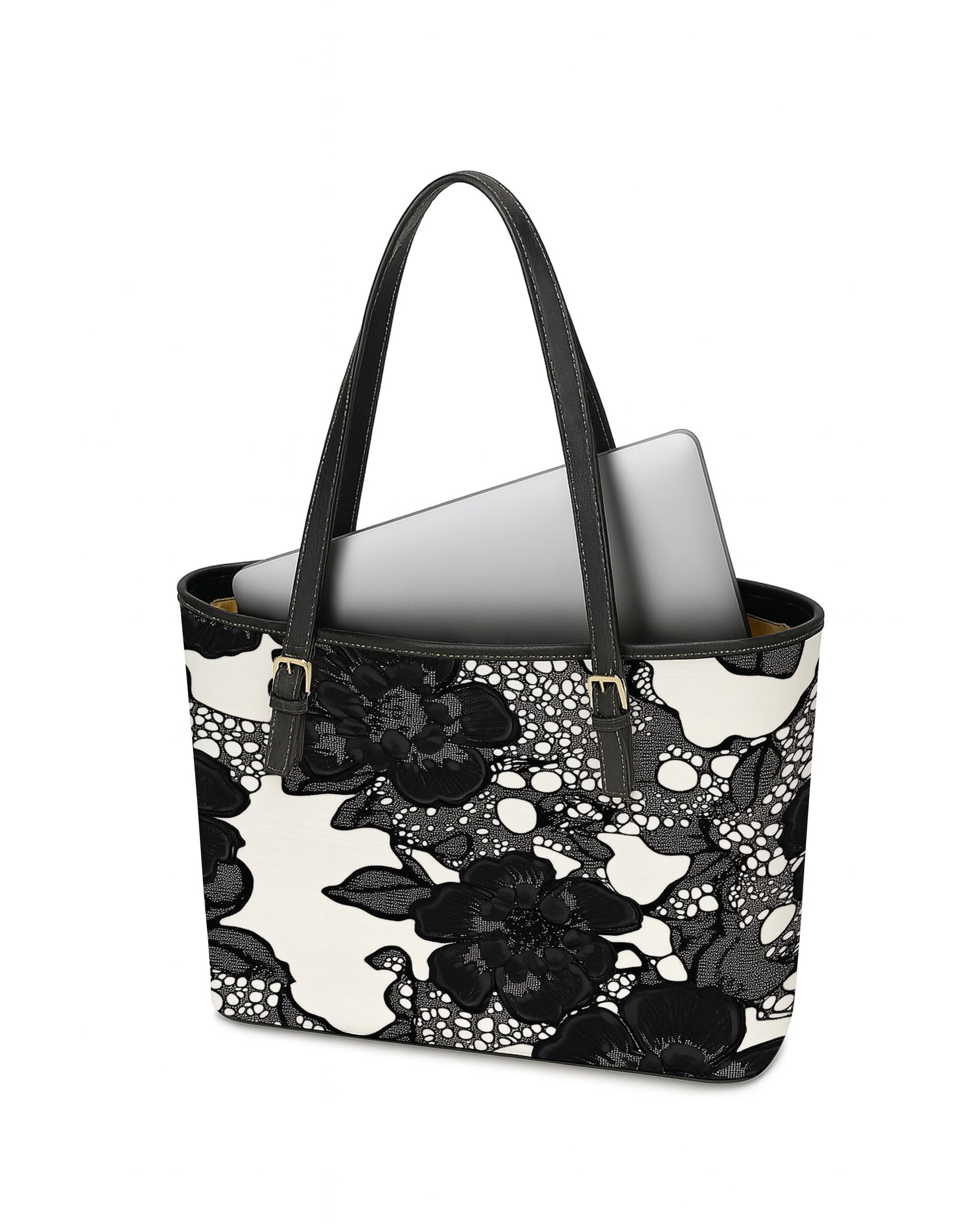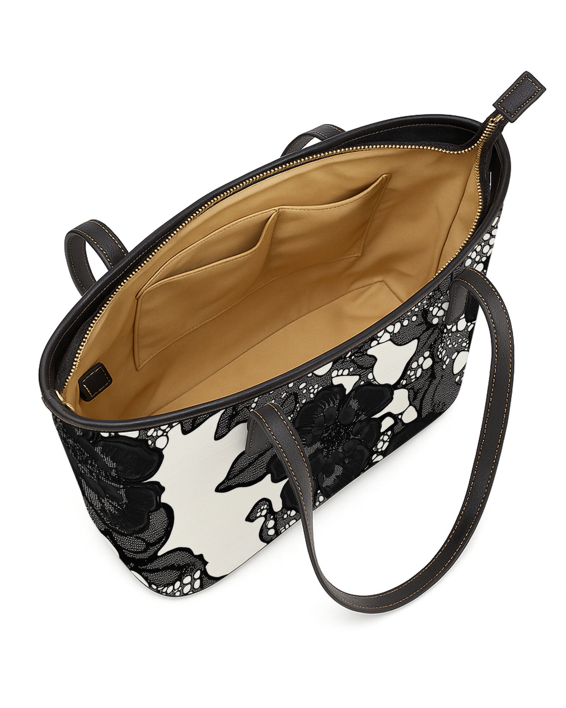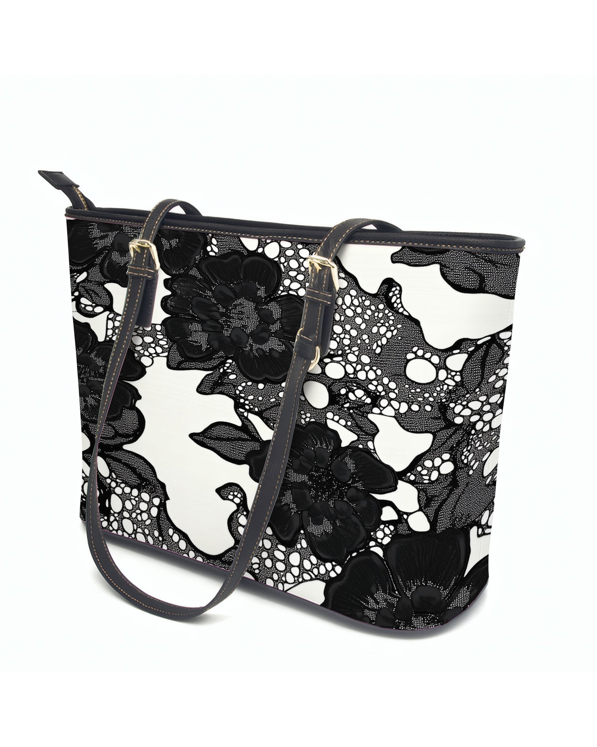 The bag is designed for daily convenience. A spacious, beige-lined interior features slip pockets and ample storage, ideal for organizing your essentials neatly. Secured by a smooth zipper closure, and complemented by adjustable black leather handles, it combines personalized flair with functional design—perfect for everyday outings, shopping trips, or work essentials.