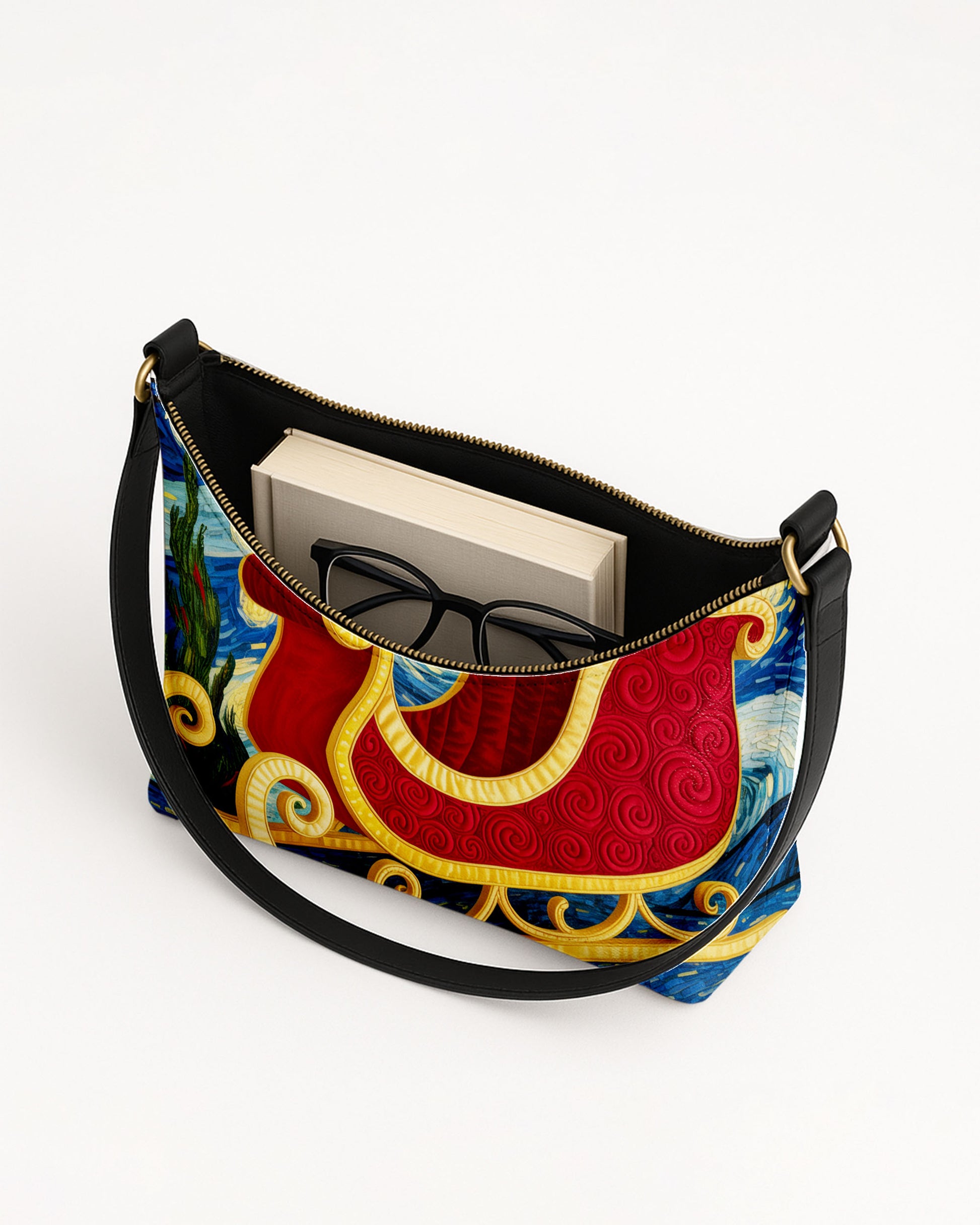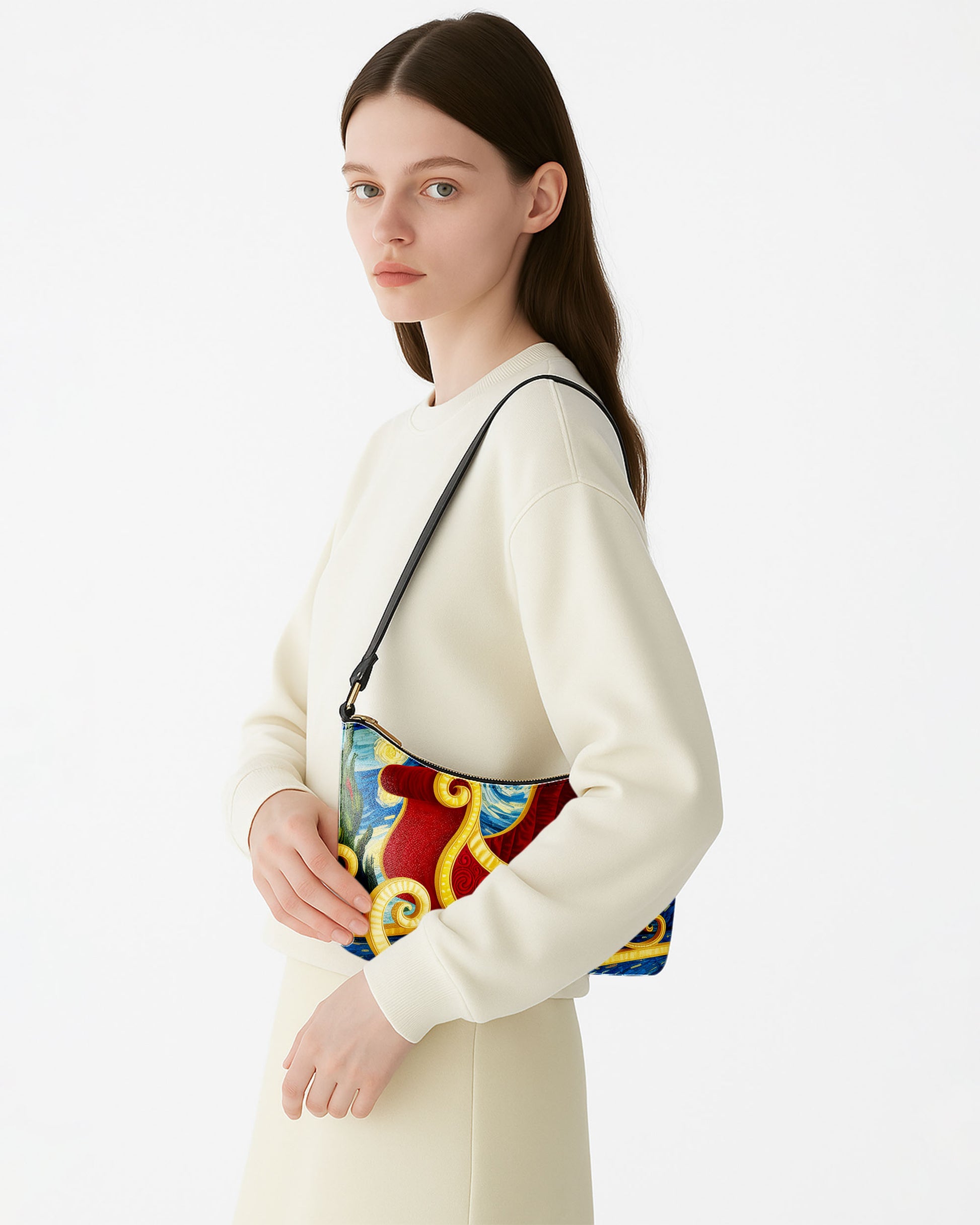 DETAILS This art-inspired shoulder bag offers a spacious, beige-lined interior secured with a smooth zipper closure. Finished with a sleek black leather strap, it’s the perfect blend of creativity and everyday practicality.